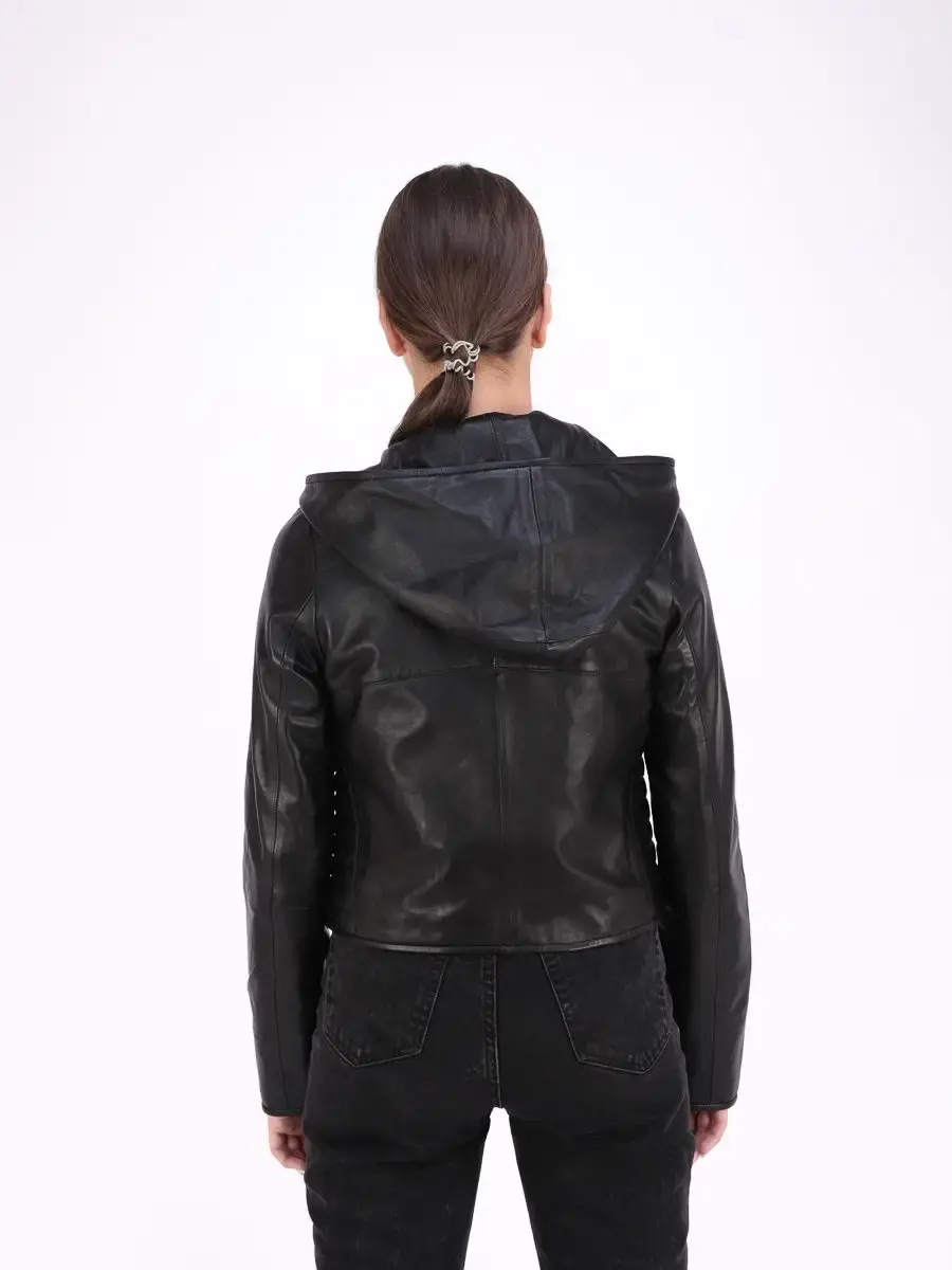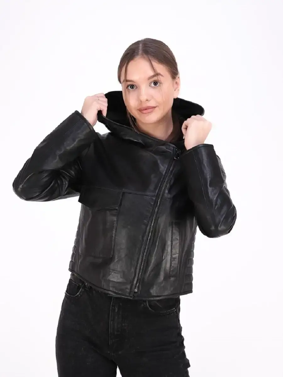 Женская куртка из 100% натуральной кожи. Куртка выполнена из гладкой кожи, выделка плонже. Капюшон не съемный. MONDIAL Производство Турция.