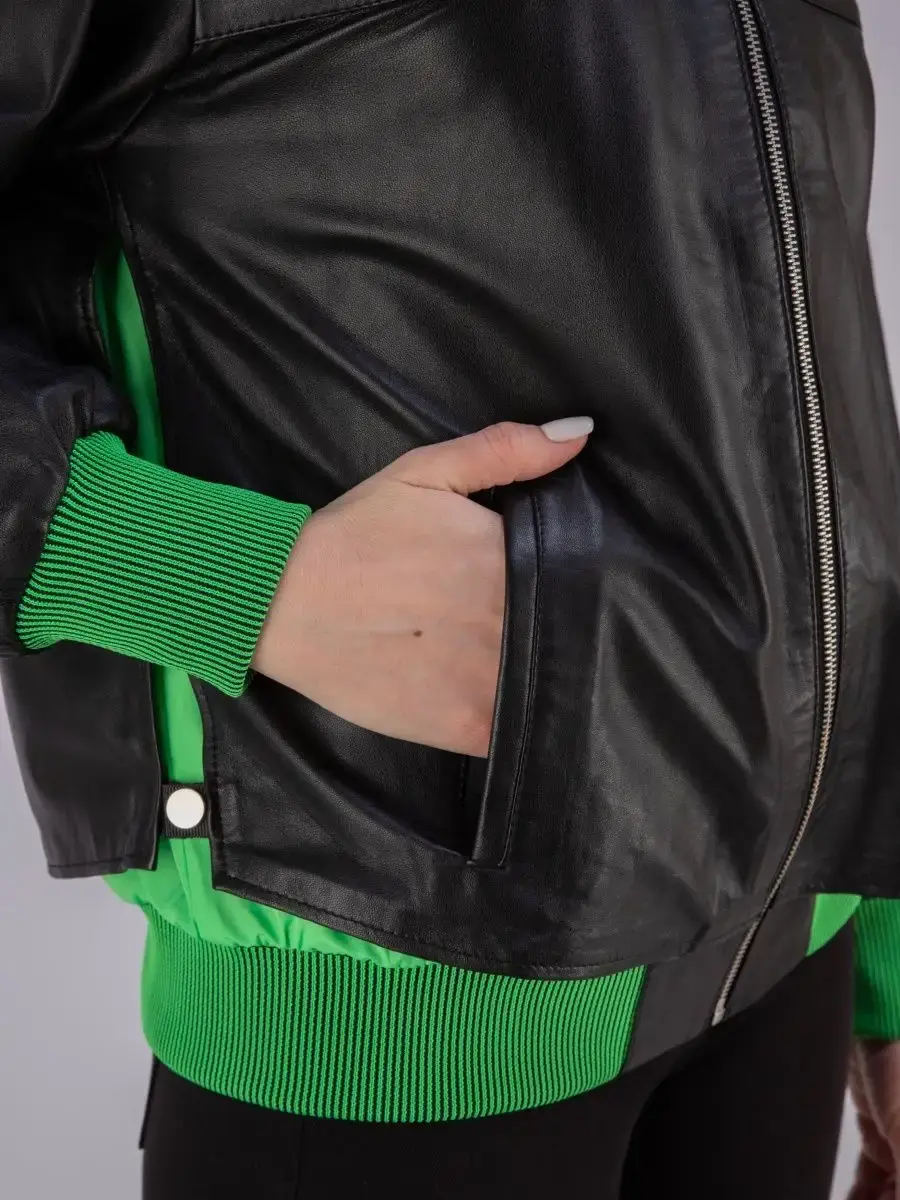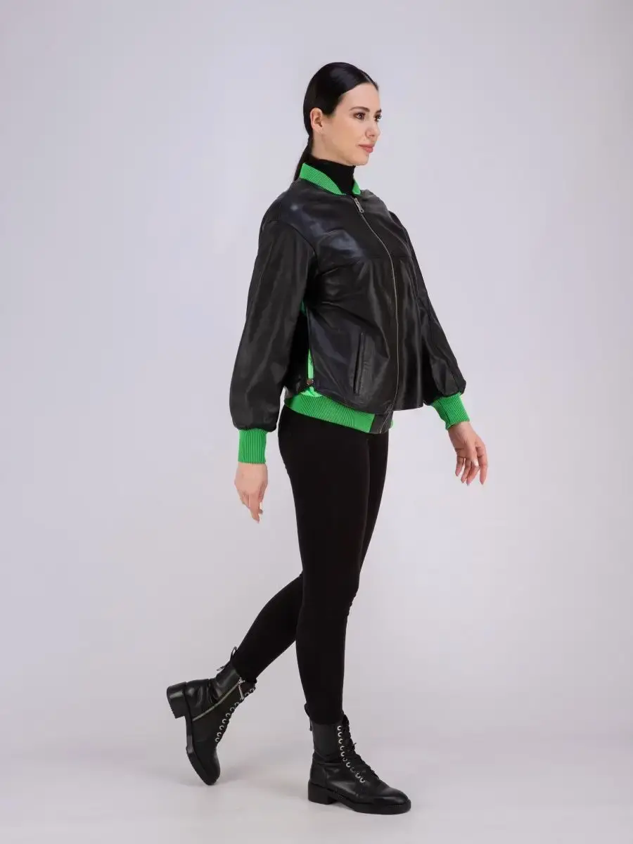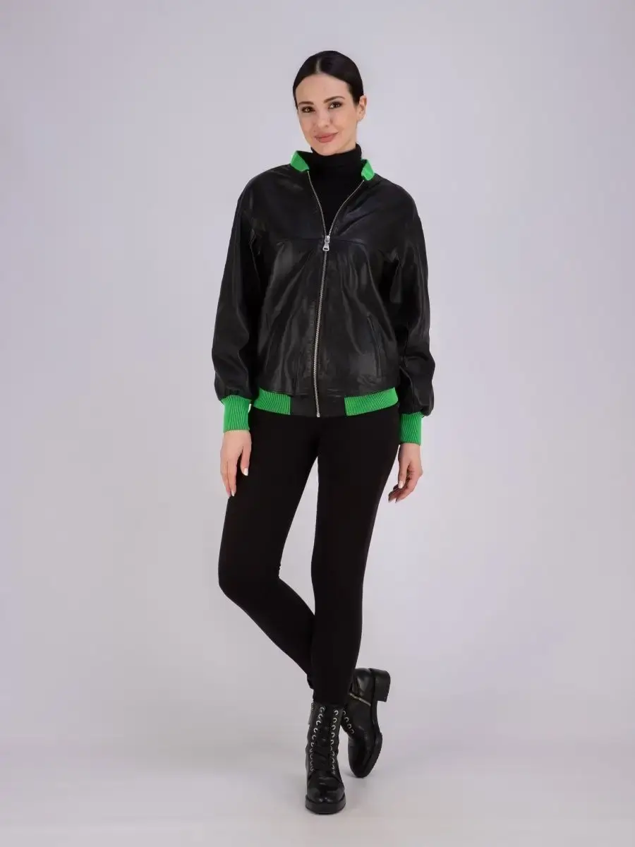 Модная кожаная куртка женская, бомбер из натуральной кожи прекрасно подходить для холодных дней весной, осенью и летом. Стильная куртка женская из натуральной кожи, куртка демисезонная женская выполнена из прочной и в то же время из мягкой и гладкой натуральной кожи ягненка. Женская куртка кожаная из натуральной кожи с застежкой на молнии с трикотажными вставками и манжетом зеленного цвета замечательный выбор, если вы намерены не только чувствовать себя комфортно, но и хотите выглядеть стильно и модно. Женская куртка бомбер с прорезными карманами отличный вариант на каждый день и сочетается с различными вещами. Кожаная куртка женская больших размеров, куртка кожаная женская с разрезом бо бокам на кнопке подчеркнет Вашу индивидуальность, как и в повседневном гардеробе так и в вечернем. Куртка женская кожаная оверсайз больших размеров свободного кроя. Вы можете купить куртки женские, куртки автоледи, короткие куртки, куртка женская весна в подарок со скидкой на странице бренда MONDIAL! Коллекция обновляется каждый сезон. Длина по спинке 65см. Производство Турция
