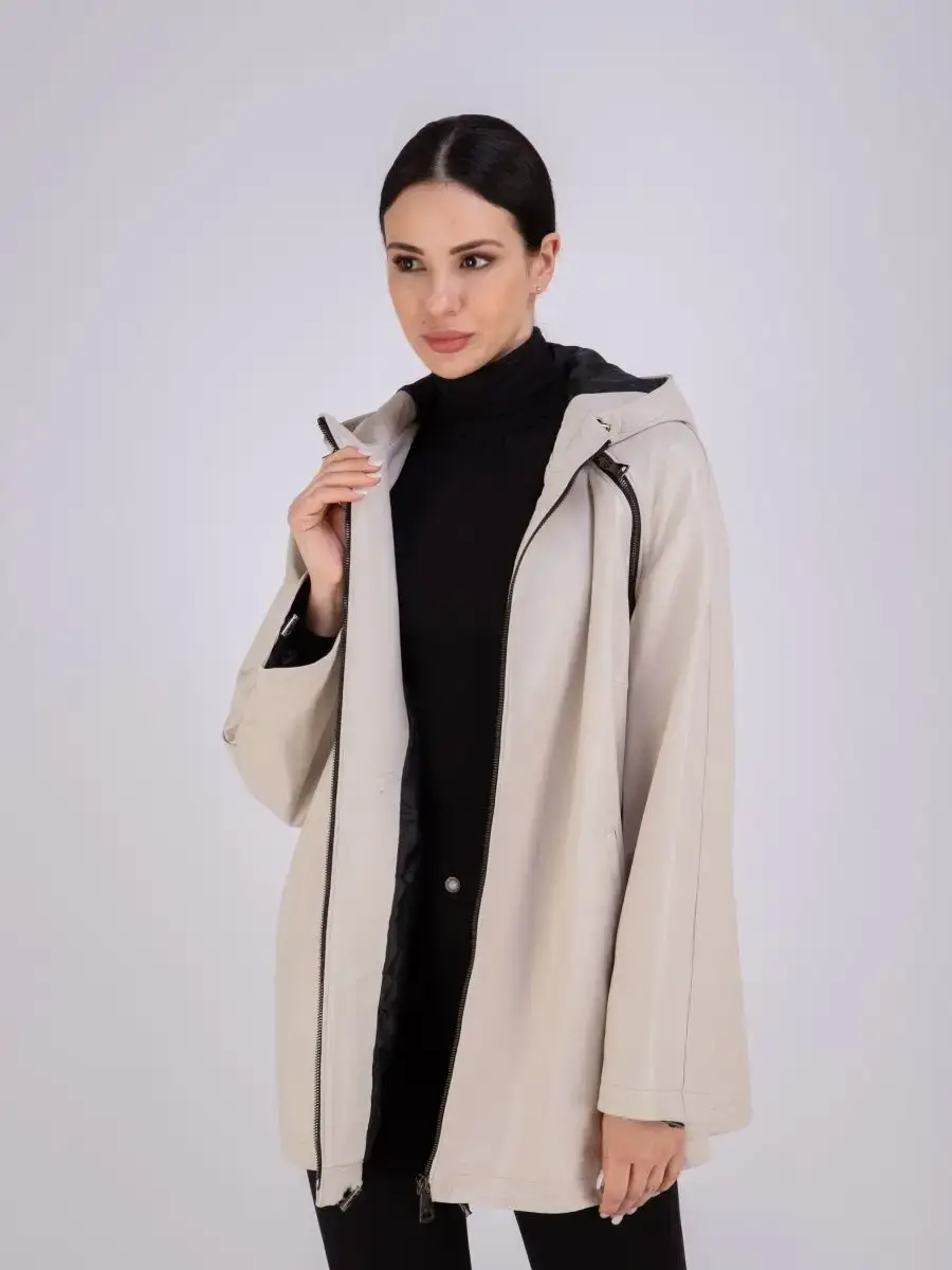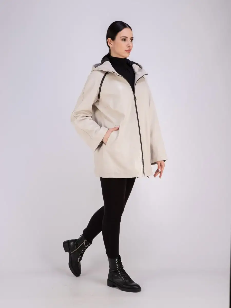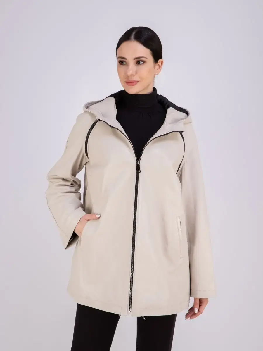 Кожаная куртка женская из натуральной кожи с капюшоном идеальное решение для создания универсального гардероба. Стильная куртка женская из натуральной кожи демисезонная выполнена из прочной и в то же время из мягкой и гладкой натуральной кожи ягненка. Женская куртка кожаная с застежкой на молнии и с прорезными карманами замечательный выбор, если вы намерены не только чувствовать себя комфортно, но и хотите выглядеть стильно и модно. Кожаная куртка женская больших размеров, куртка женская демисезонная с капюшоном на кулисках прекрасно подходить для холодных дней весной, осенью и летом. Куртка демисезонная женская, куртка женская оверсайз отличный вариант на каждый день и сочетается с различными вещами. Кожаная куртка женская весна прекрасно впишется практически в любой стиль - повседневный, городской, офисный и вечерний. Свободный крой кожаной куртки оверсайз позволяет носить девушкам и женщинам с любым типом фигуры. Вы можете купить куртки женские, куртки автоледи, короткие куртки, куртка кожаная женская в подарок со скидкой на странице бренда MONDIAL! Коллекция обновляется каждый сезон. Длина по спинке 75см. Производство Турция