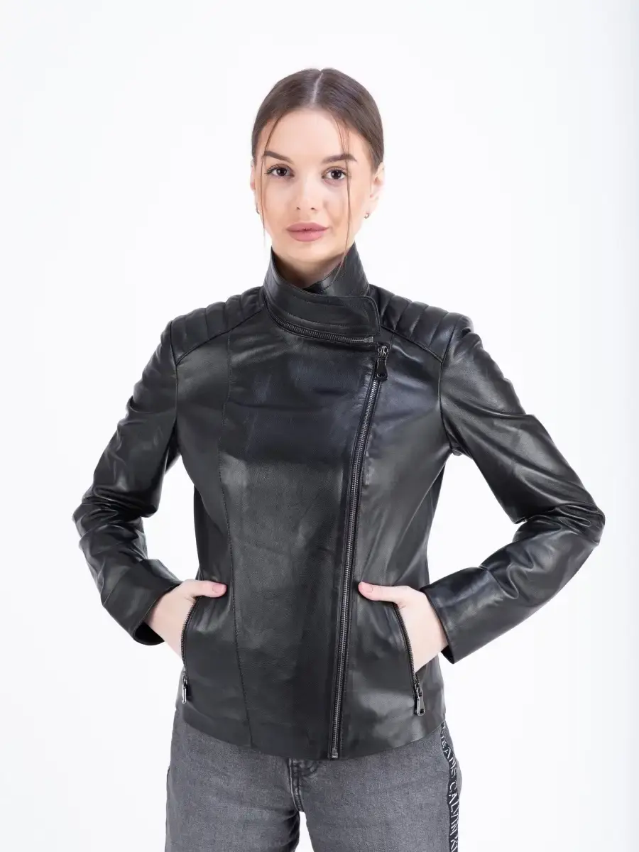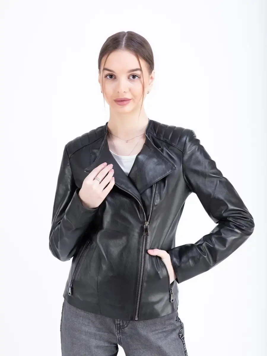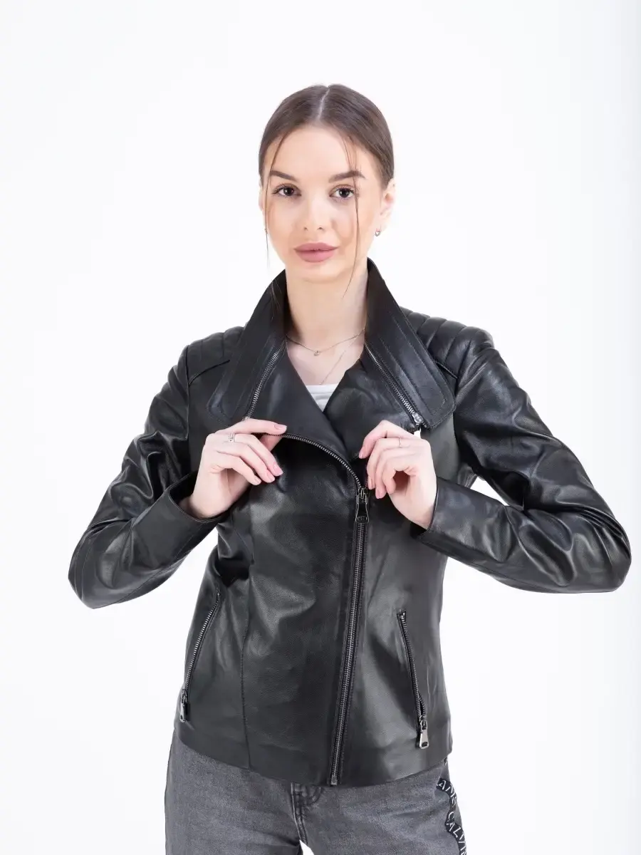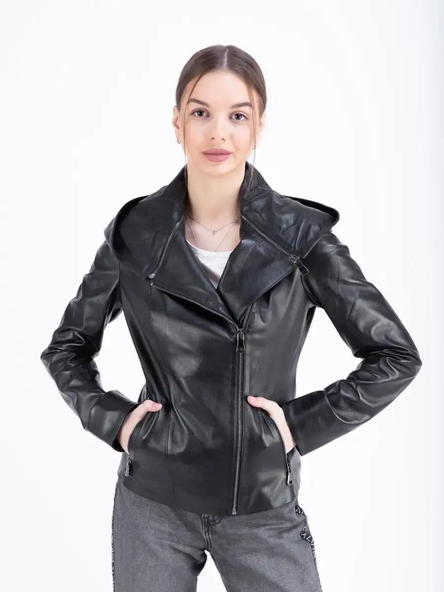 Куртка женская из натуральной кожи трансформер, короткая идеальное решение для создания модного гардероба. Стильная кожаная куртка для весны, осени и лето. Куртка женская весна - осень выполнена из прочной и в тоже время из мягкой, гладкой натуральной кожи. Куртка весенняя женская , куртка демисезонная женская приталенного кроя с прорезными карманами на молнии подойдет под любой образ, отлично смотреться как на невысоких, так и на девушках с высоким ростом. Капюшон, воротник - стойка съёмный. Можно носить в трех вариантах: с капюшоном, стойка воротник, воротник шанель. Кожаная куртка женская, куртка кожаная женская станет изюминкой вашего гардероба, подчеркнет Вашу индивидуальность, как и в повседневном гардеробе так и в вечернем! Такую модель можно носить с брюками в деловом стиле, джинсами и юбками, шикарно смотрится и с повседневными нарядами, и с вечерними платьями. Женская куртка короткая удобно носить в машине, куртка женская кожаная прекрасно впишется практически в любой стиль - повседневный, городской, офисный и вечерний. Вы можете купить куртки женские, косуха женская кожаная, куртка женская демисезонная косуха женская укороченная, кожаная куртка женская, косуха для девочки, куртка кожаная женская в подарок со скидкой на странице бренда MONDIAL! Длина по спинке 55см. Производство Турция
