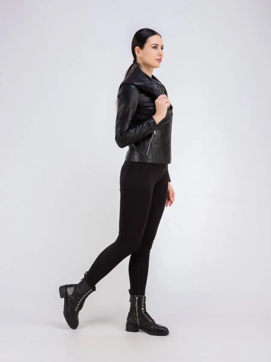 Куртка женская из натуральной кожи трансформер, короткая идеальное решение для создания модного гардероба. Стильная кожаная куртка для весны, осени и лето. Куртка женская весна - осень выполнена из прочной и в тоже время из мягкой, гладкой натуральной кожи. Куртка весенняя женская , куртка демисезонная женская приталенного кроя с прорезными карманами на молнии подойдет под любой образ, отлично смотреться как на невысоких, так и на девушках с высоким ростом. Капюшон, воротник - стойка съёмный. Можно носить в трех вариантах: с капюшоном, стойка воротник, воротник шанель. Кожаная куртка женская, куртка кожаная женская станет изюминкой вашего гардероба, подчеркнет Вашу индивидуальность, как и в повседневном гардеробе так и в вечернем! Такую модель можно носить с брюками в деловом стиле, джинсами и юбками, шикарно смотрится и с повседневными нарядами, и с вечерними платьями. Женская куртка короткая удобно носить в машине, куртка женская кожаная прекрасно впишется практически в любой стиль - повседневный, городской, офисный и вечерний. Вы можете купить куртки женские, косуха женская кожаная, куртка женская демисезонная косуха женская укороченная, кожаная куртка женская, косуха для девочки, куртка кожаная женская в подарок со скидкой на странице бренда MONDIAL! Длина по спинке 55см. Производство Турция
