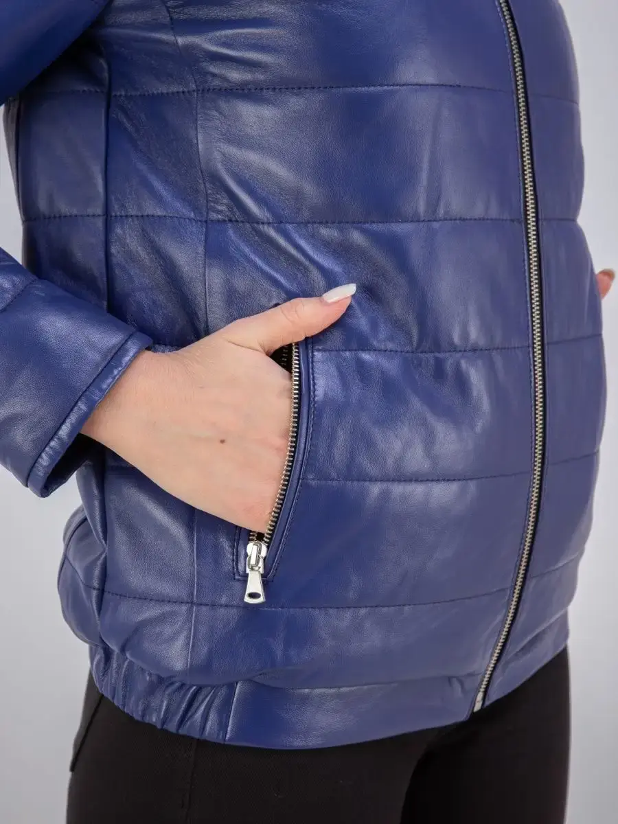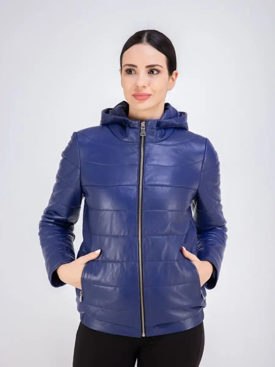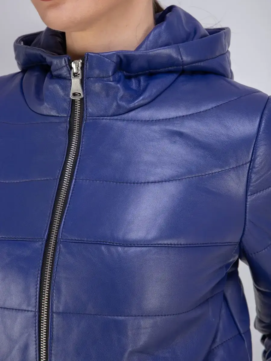 кожаная куртка женская стеганая с капюшоном