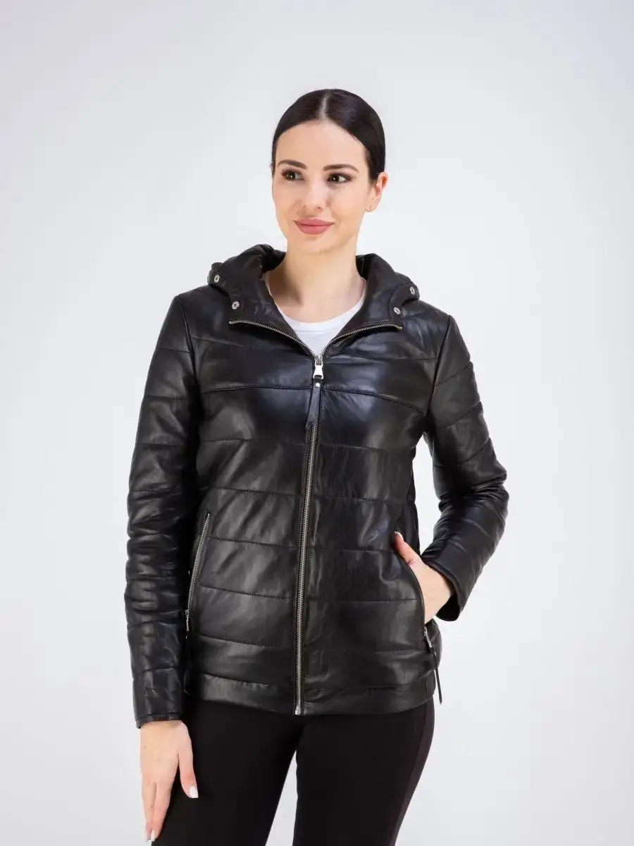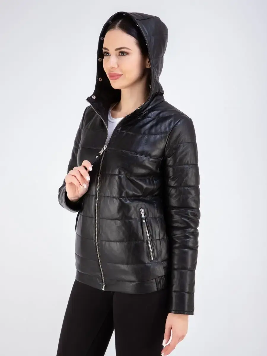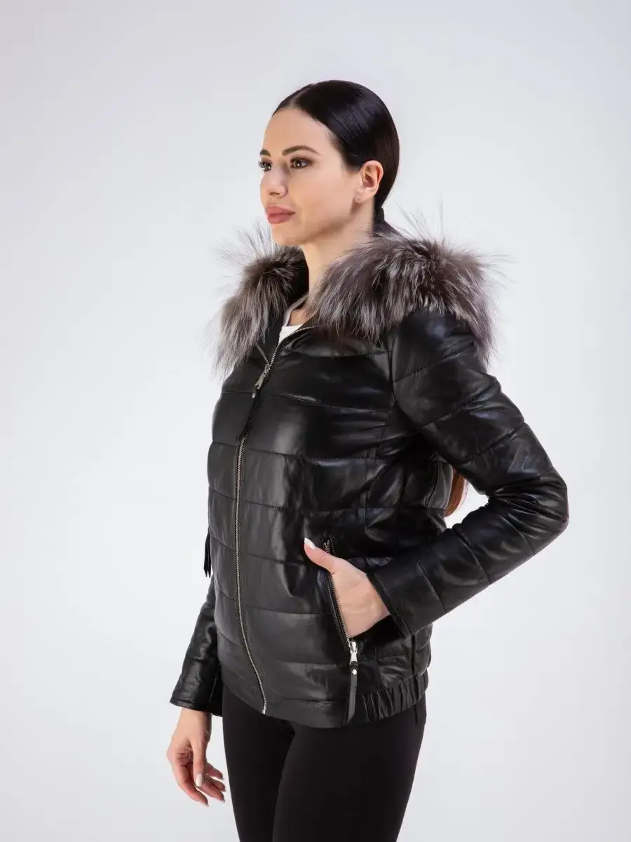 Куртка женская из натуральной кожи с мехом на капюшоне. Кожаная куртка с капюшоном с опушкой из меха лисы. Куртка демисезонная женская капюшон не отстегивается, меховая опушка на капюшоне съемная на кнопках. Классическая куртка женская весна - осень с капюшоном демисезонная с застежкой на молнии свободного кроя, подойдет под любой образ, отлично смотреться как на невысоких, так и на девушках с высоким ростом. Куртка женская демисезонная станет изюминкой вашего гардероба, подчеркнет Вашу индивидуальность, как и в повседневном гардеробе так и в вечернем! Такую модель можно носить с брюками в деловом стиле, джинсами и юбками. Кожаная куртка женская, куртка кожаная женская свободного кроя прекрасно впишется практически в любой стиль - повседневный, городской, офисный и вечерний. Водонепроницаемая утепленная куртка, куртка женская натуральная из гладкой кожи с утягивающей резинкой по бокам защитит от ветра и дождя весной, осенью, летом. Вы можете купить куртки женские, косуха женская кожаная, женская куртка, косуха женская укороченная, кожаная куртка женская, косуха для девочки, куртка кожаная женская в подарок со скидкой на странице бренда MONDIAL! Длина по спинке 60см. Производство Турция