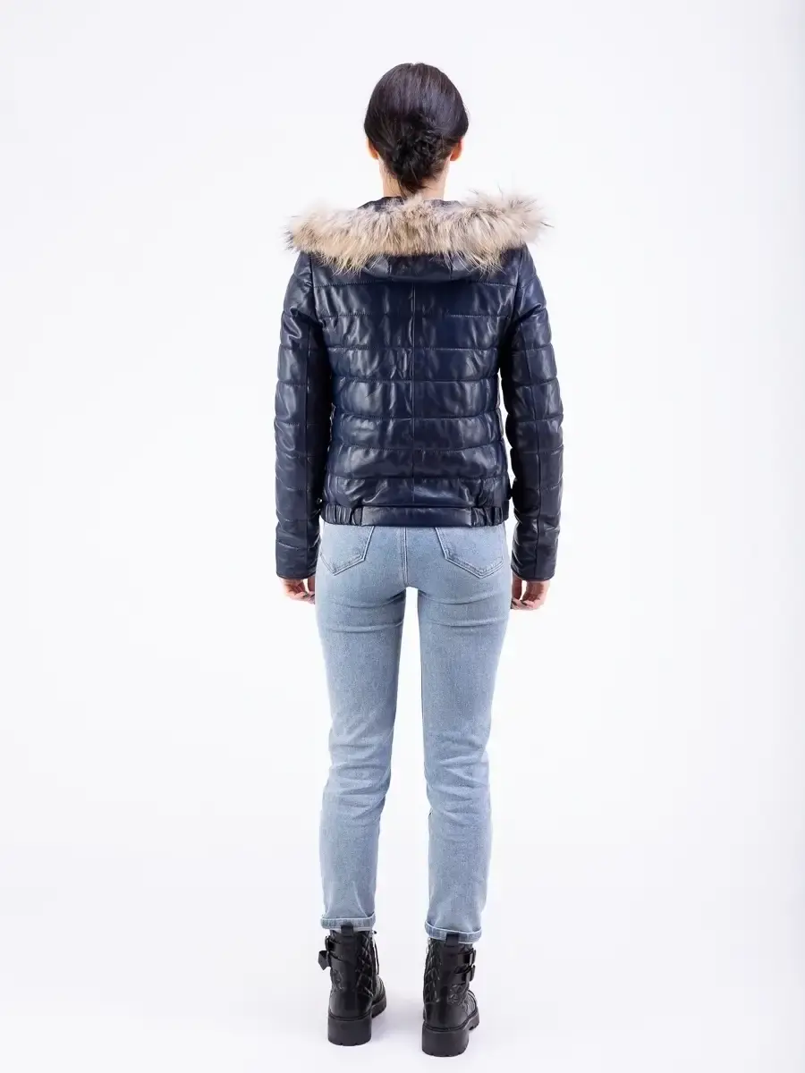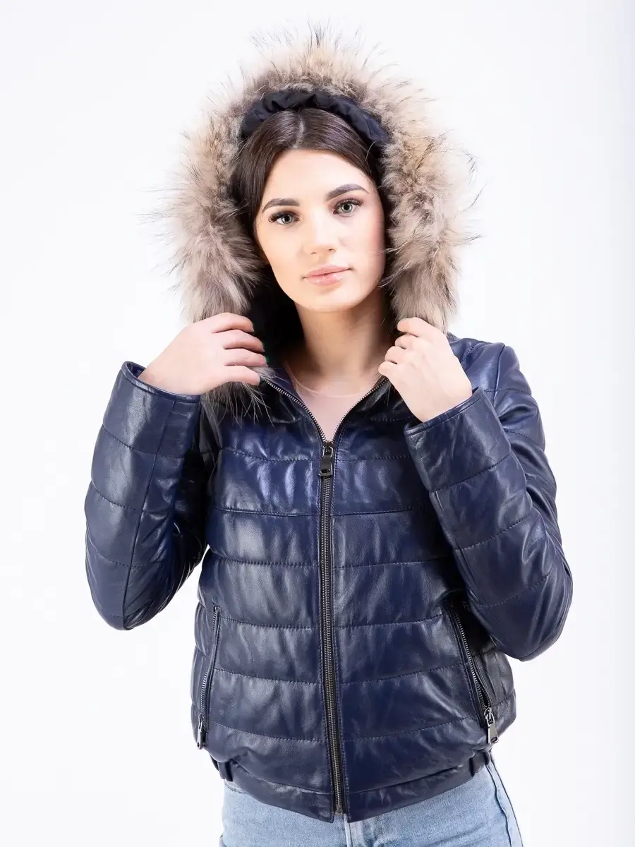 кожаная куртка женская стеганая с капюшоном