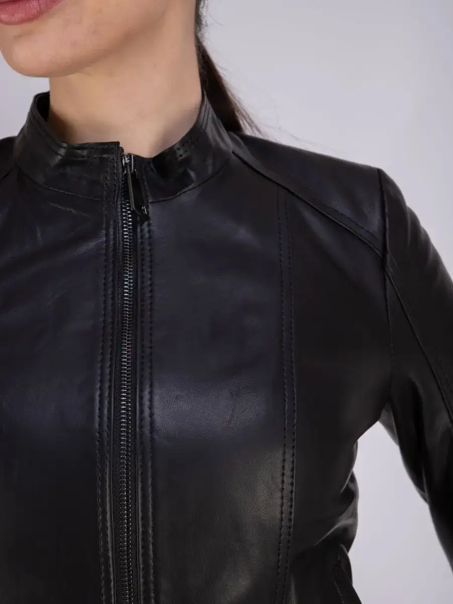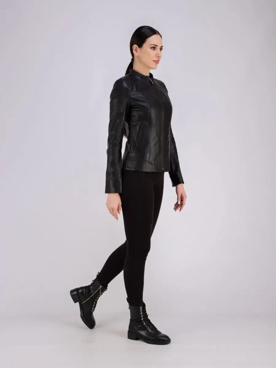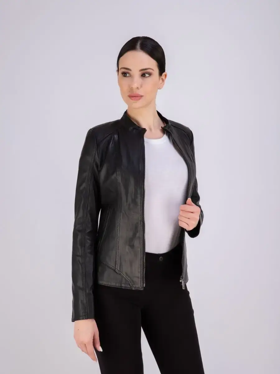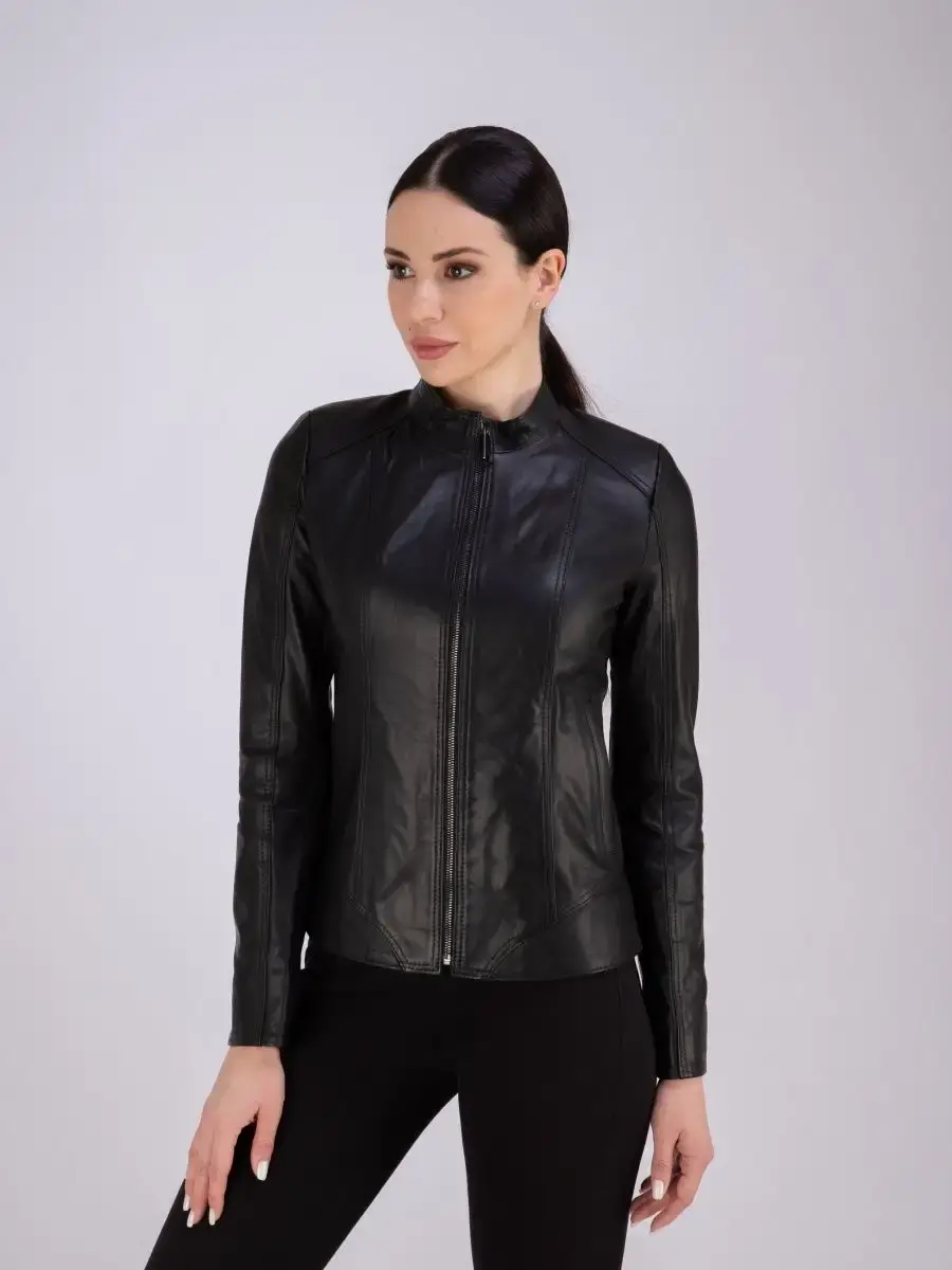 Куртка женская из натуральной кожи. Женская кожаная куртка выполнена из гладкой и мягкой кожи. Куртка кожаная женская - воротник стойка, застежка на молнии, прорезные карманы. Кожаная куртка женская натуральная универсальная, классическая модель идеально впишется в Ваш гардероб. Сочетание дизайна с долговечностью, драгоценностью и мягкостью натуральной кожи делает женские кожаные куртки идеальным предметом женской одежды. Куртка демисезонная женская, куртка женская весна приталенного кроя подчеркнет Вашу индивидуальность, куртка женская короткая станет изюминкой вашего гардероба. Такую модель можно носить с брюками в деловом стиле, джинсами и юбками. Вы можете купить куртки женские, куртки автоледи, короткие куртки, куртка женская демисезонная в подарок со скидкой на странице бренда MONDIAL! Коллекция обновляется каждый сезон. Длина по спинке 55см. Производство Турция