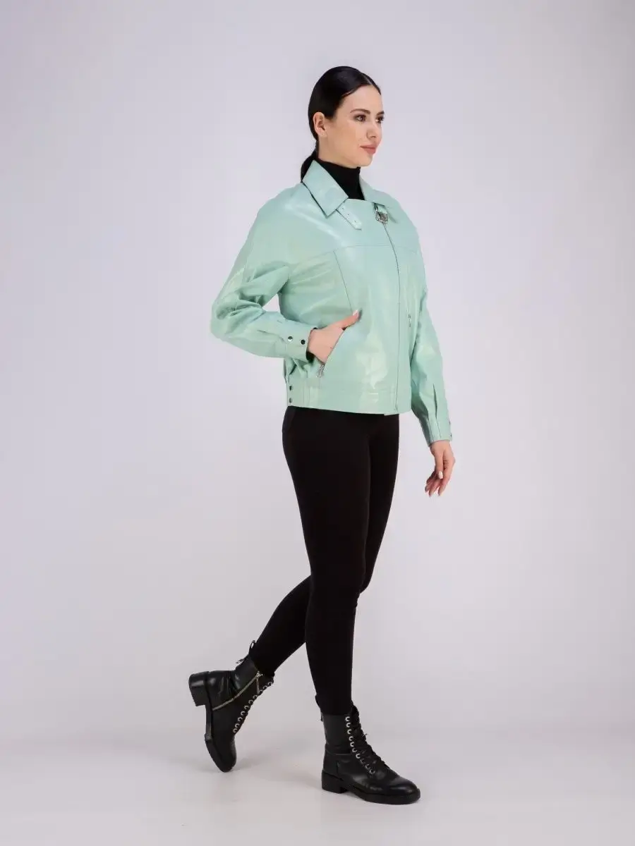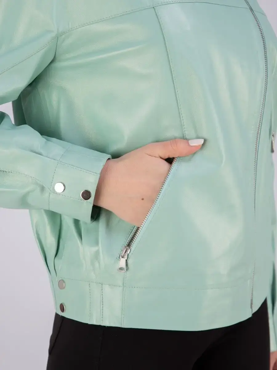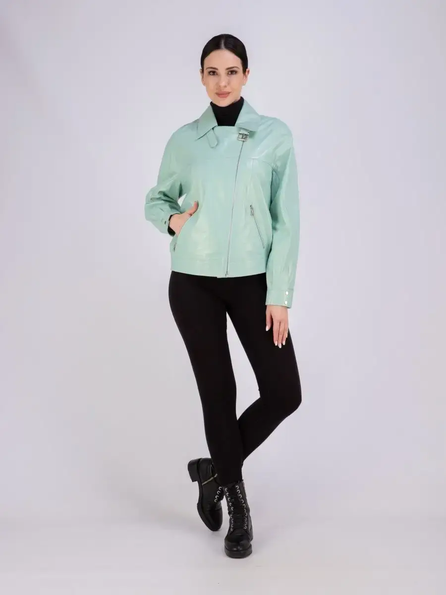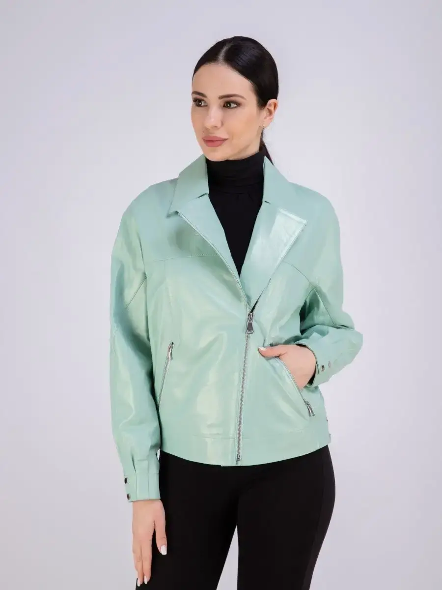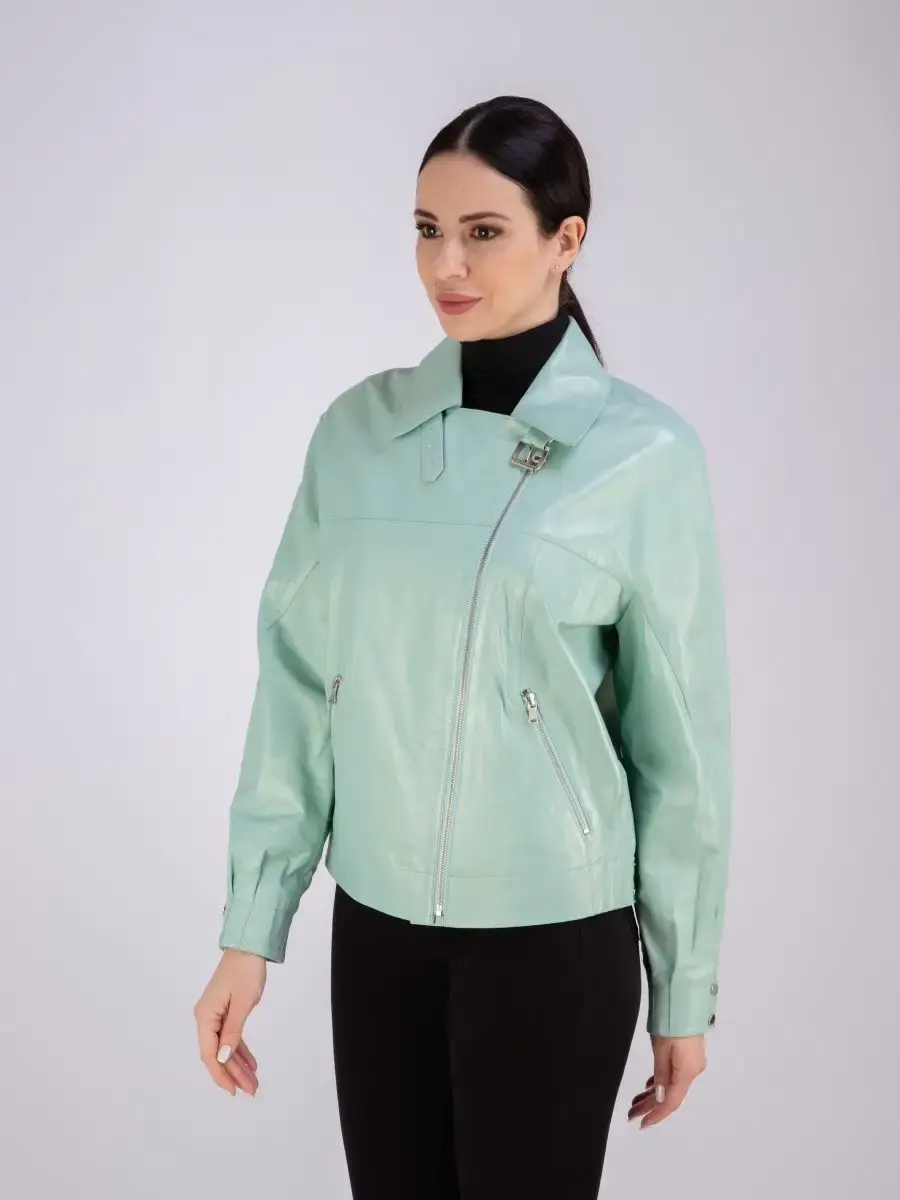 Кожаная куртка женская из натуральной кожи станет вашей любимой покупкой в новом сезоне. Стильная куртка женская кожаная демисезон свободного кроя в качестве застежки ассиметричная молния. Куртка женская короткая с модным манжетом на рукавах прекрасно подходить весной, осенью и летом. Женская куртка кожаная из гладкой знаменитой турецкой натуральной кожи и с прорезными карманами на молнии замечательный выбор, если вы намерены не только чувствовать себя комфортно, но и хотите выглядеть стильно и модно. Кожаная куртка женская из натуральной кожи с утягивающим разрезом на кнопках по бокам прекрасно впишется практически в любой стиль - повседневный, городской, офисный и вечерний. Свободный крой кожаной куртки больших размеров позволяет носить девушкам и женщинам с любым типом фигуры. Вы можете купить куртки женские, куртки автоледи, короткие куртки, кожаная куртка женская больших размеров в подарок со скидкой на странице бренда MONDIAL! Коллекция обновляется каждый сезон. Длина по спинке 60см. Производство Турция