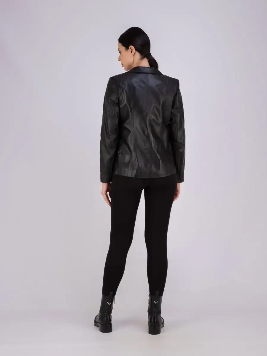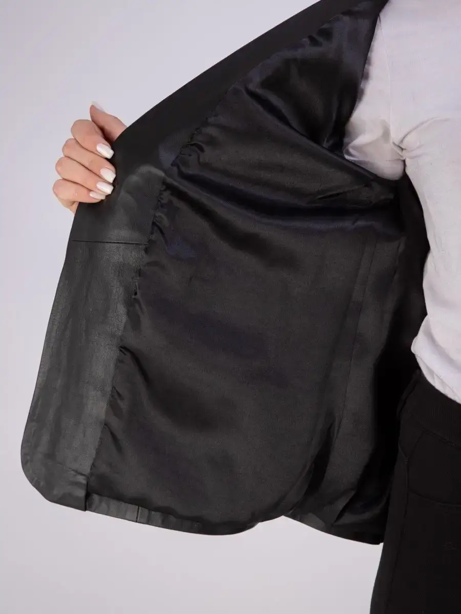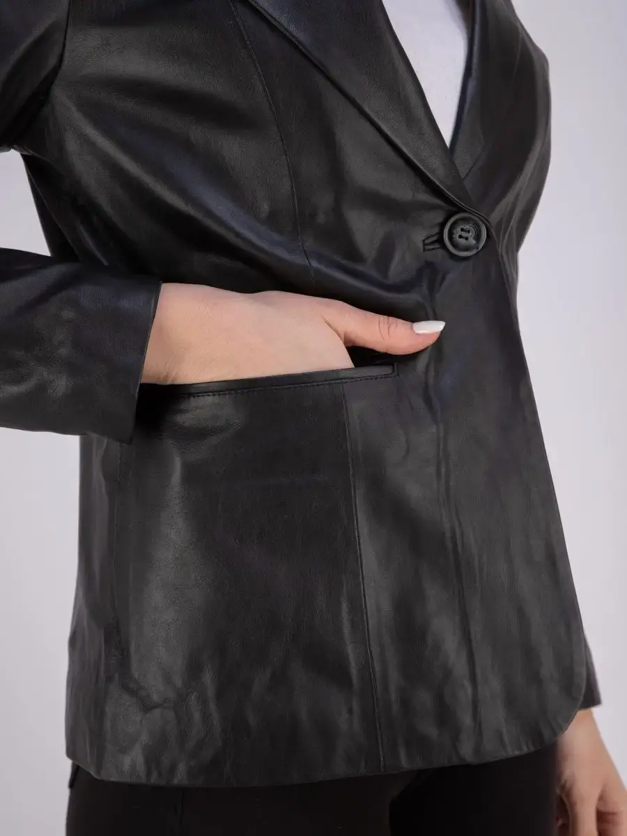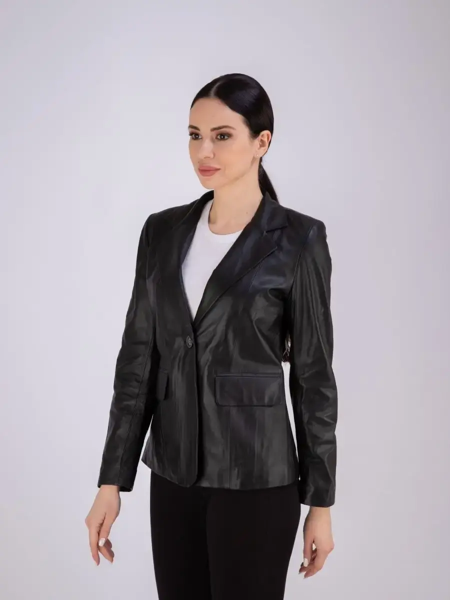 Кожаная куртка женская, кожаный пиджак женский из мягкой качественной натуральной кожи станет вашей любимой покупкой в новом сезоне. Стильный жакет прямого кроя с одной пуговицей в качестве застежки. Пиджак прямого кроя - большие размеры с классическими лацканами имеет удобный английский воротник и два передних кармана с клапанами. Женский блейзер, куртка женская из натуральной кожи застёгивается спереди на одну пуговицу. Прямой - свободный крой блейзера позволяет носить данную куртку девушкам и женщинам с любым типом фигуры, идеально подойдет для полных дам - оверсайз. Пиджак женский, женскую куртку можно носить весной, летом и осенью, идеальное решение для создания универсального гардероба. Куртка пиджак женская прекрасно впишется практически в любой стиль - повседневный, городской, офисный и вечерний. Такую модель можно носить с брюками в деловом стиле, джинсами и зауженной юбкой карандаш. Вы можете купить куртки женские, куртка женская демисезонная, пиджаки кожаные, куртка демисезонная женская куртка кожаная женская, куртка женская весна, короткие куртки в подарок для высоких, для невысоких, для женщин, для девочки со скидкой на странице бренда MONDIAL! Длина по спинке 75см. Производство Турция