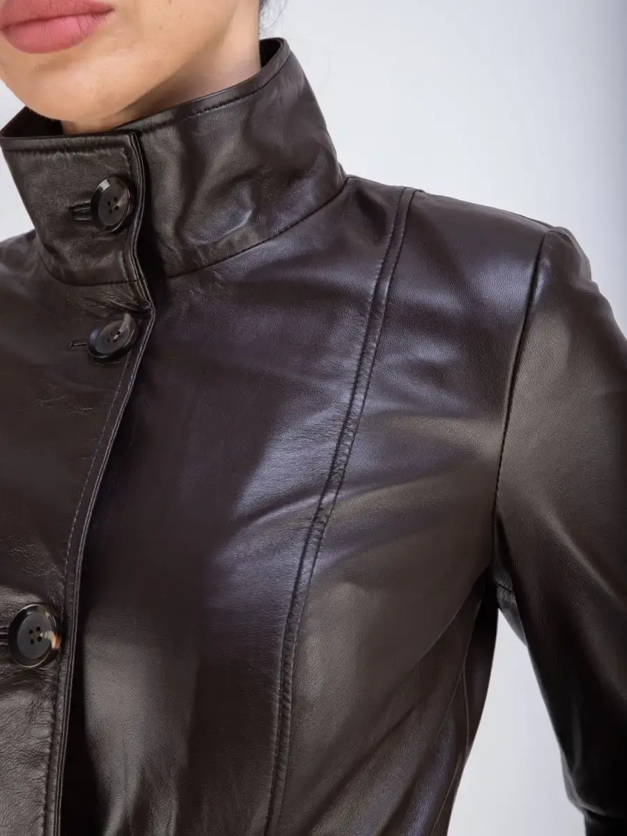 Куртка кожаная женская из натуральной кожи ягненка. Женская кожаная куртка выполнена из гладкой и мягкой кожи. Высокий воротник стойка, застежка на пуговицах. Куртка женская натуральная классическая идеально впишется в Ваш гардероб. Куртка маломерит на размер! MONDIAL Производство Турция Предлагаем широкий выбор моделей: кожаная куртка, из натуральной кожи, кожаная куртка женская, кожаная куртка косуха, куртка кожаная женская черная, кожаная куртка женская черная, кожаная куртка-рубашка, куртка рубашка, кожаный плащ, плащ женский, куртка, из натуральной кожи, косуха куртка женская, косуха женская, кожаная куртка косуха, куртка демисезонная, для высоких, для невысоких, большие размеры, оверсайз, женская куртка