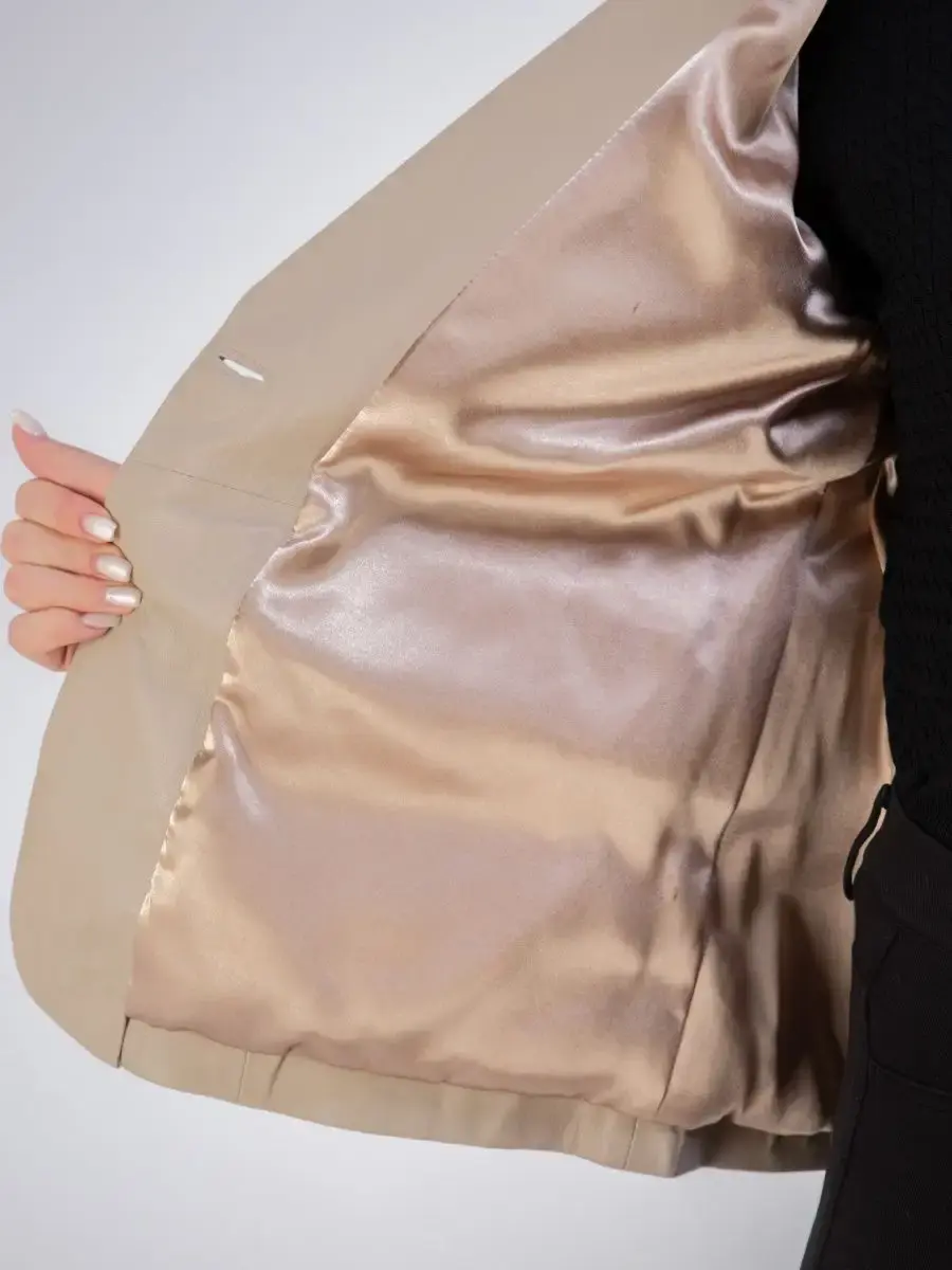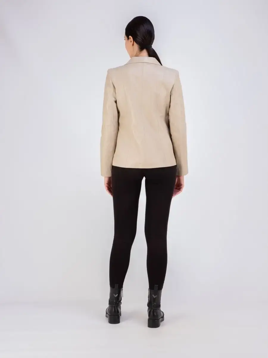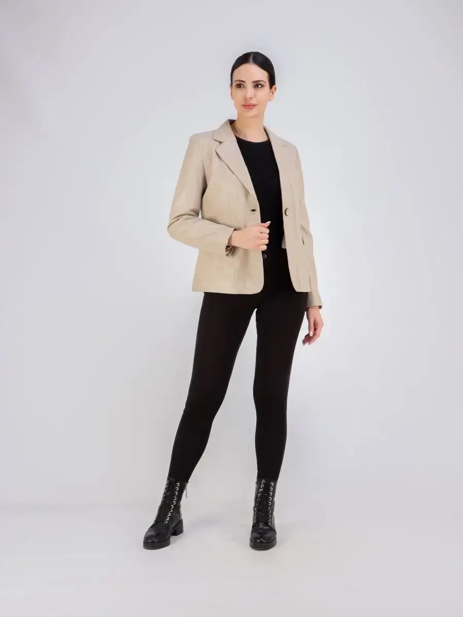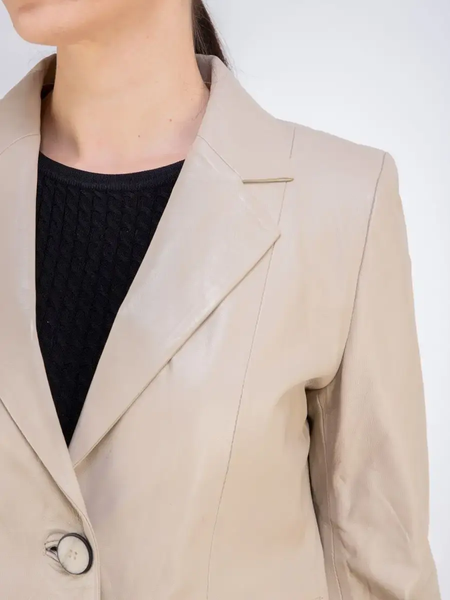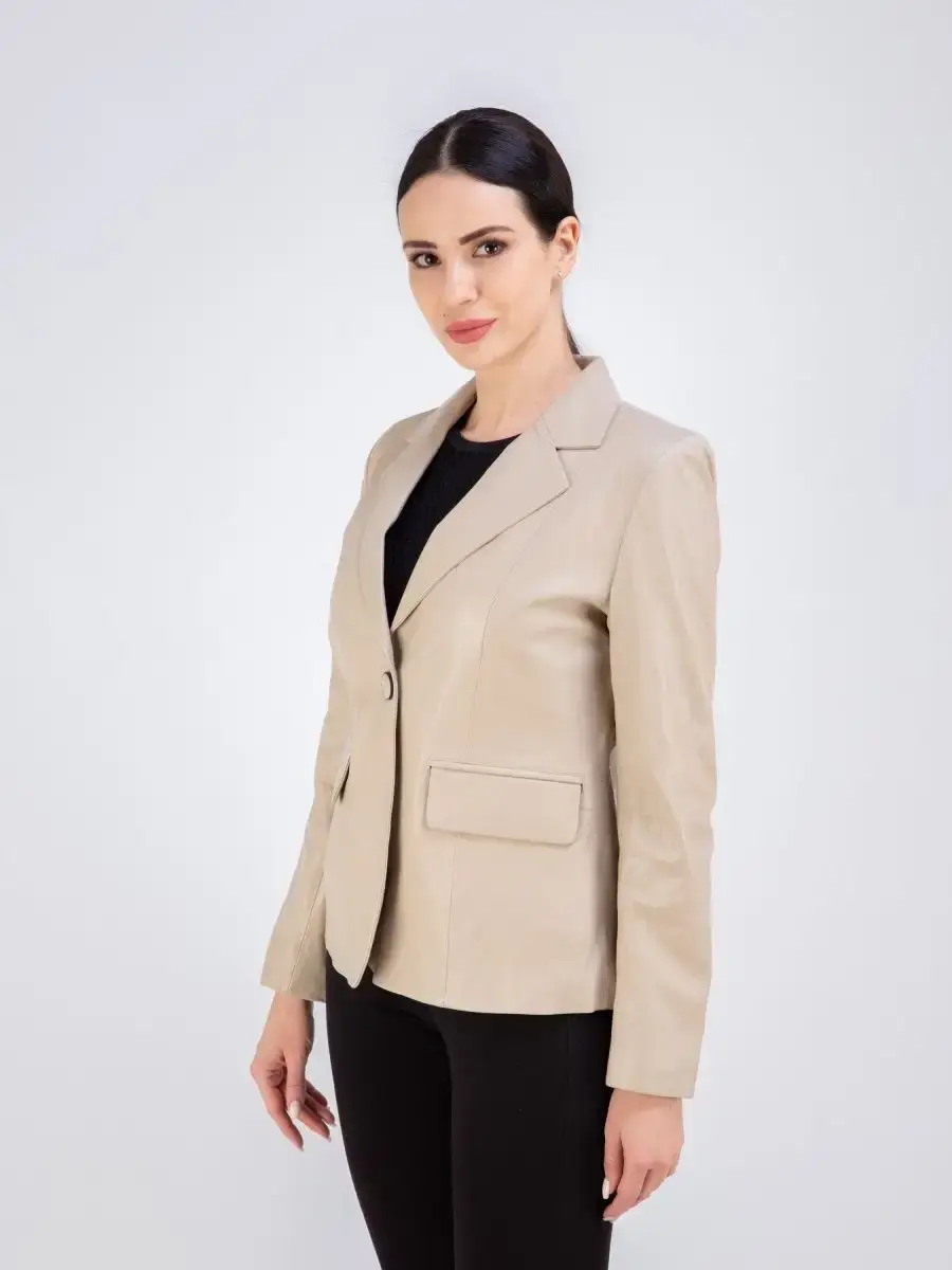 Кожаная куртка женская, кожаный пиджак женский из мягкой качественной натуральной кожи станет вашей любимой покупкой в новом сезоне. Стильный жакет прямого кроя с одной пуговицей в качестве застежки. Пиджак прямого кроя - большие размеры с классическими лацканами имеет удобный английский воротник и два передних кармана с клапанами. Женский блейзер, куртка женская из натуральной кожи застёгивается спереди на одну пуговицу. Прямой - свободный крой блейзера позволяет носить данную куртку девушкам и женщинам с любым типом фигуры, идеально подойдет для полных дам - оверсайз. Пиджак женский, женскую куртку можно носить весной, летом и осенью, идеальное решение для создания универсального гардероба. Куртка пиджак женская прекрасно впишется практически в любой стиль - повседневный, городской, офисный и вечерний. Такую модель можно носить с брюками в деловом стиле, джинсами и зауженной юбкой карандаш. Вы можете купить куртки женские, куртка женская демисезонная, пиджаки кожаные, куртка демисезонная женская куртка кожаная женская, куртка женская весна, короткие куртки в подарок для высоких, для невысоких, для женщин, для девочки со скидкой на странице бренда MONDIAL! Длина по спинке 75см. Производство Турция