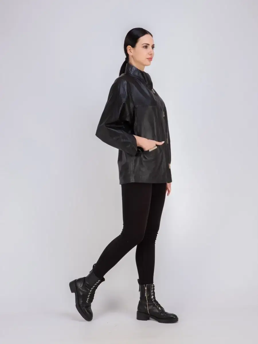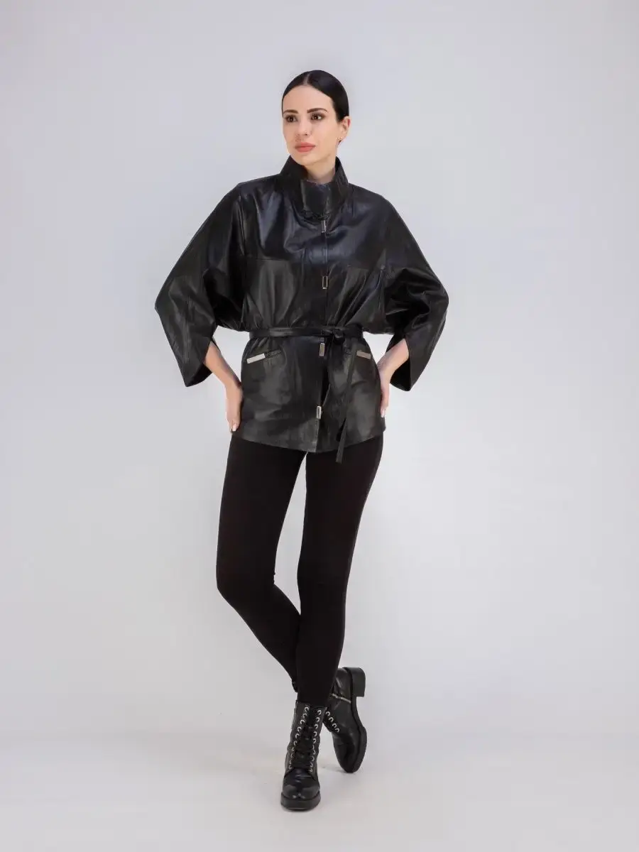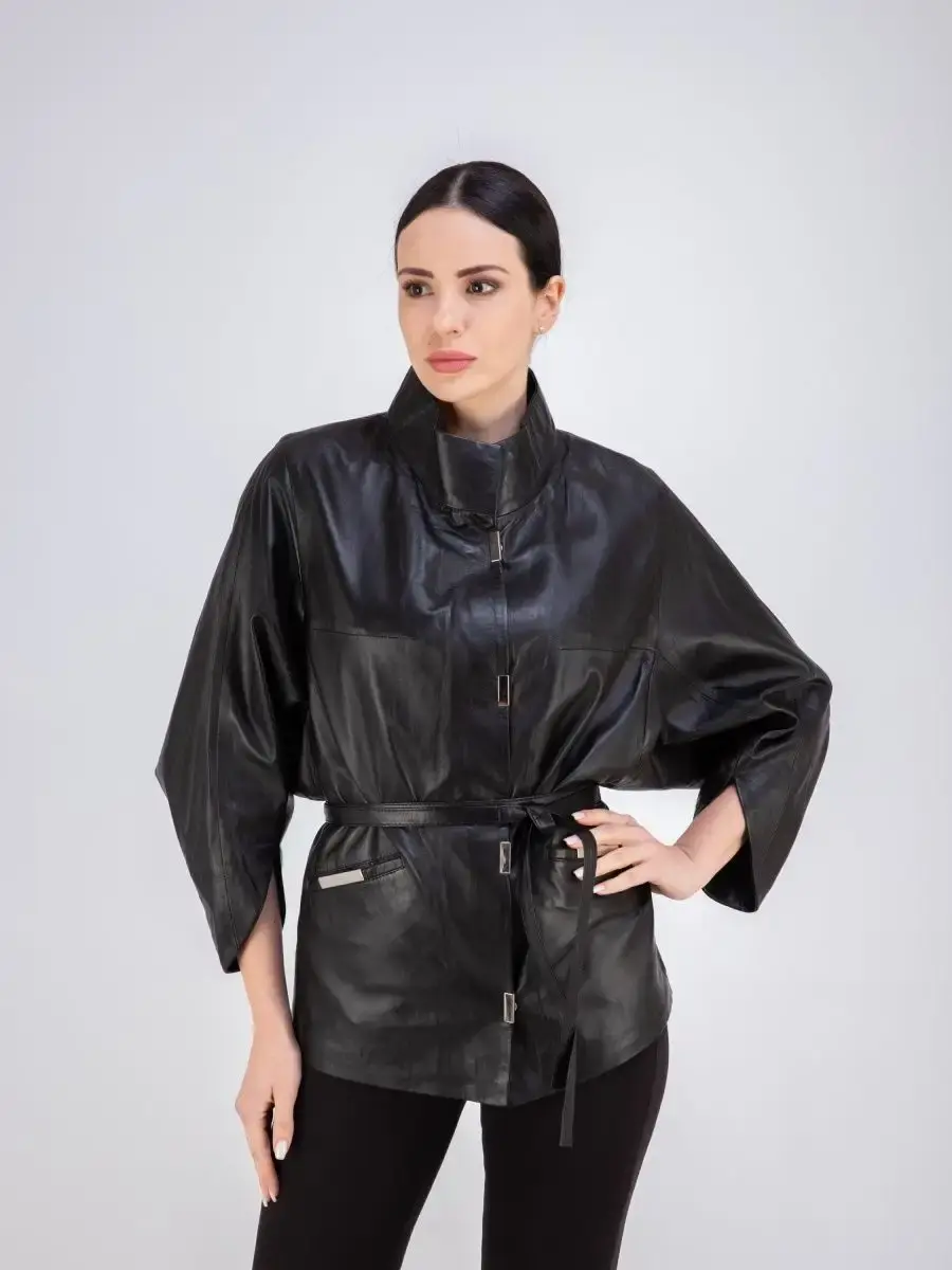 Модная куртка женская кожаная из натуральной кожи прекрасно подходить для холодных дней весной, осенью и летом. Стильная куртка женская из натуральной кожи, куртка демисезонная женская больших размеров выполнена из прочной и в то же время из мягкой и гладкой натуральной кожи ягненка. Куртка кожаная женская, куртка женская весна с застежкой на кнопках замечательный выбор, если вы намерены не только чувствовать себя комфортно, но и хотите выглядеть стильно и модно. Женская куртка с воротником стойка и с прорезными карманами отличный вариант на каждый день и сочетается с различными вещами. Кожаная куртка женская больших размеров с тонким поясом отлично защитит от ветра и дождя. Куртка женская кожаная оверсайз больших размеров свободного кроя. Вы можете купить куртки женские, косухи, куртки автоледи, короткие куртки и т.д. в подарок со скидкой на странице бренда MONDIAL! Коллекция обновляется каждый сезон. Длина по спинке 70см. Производство Турция