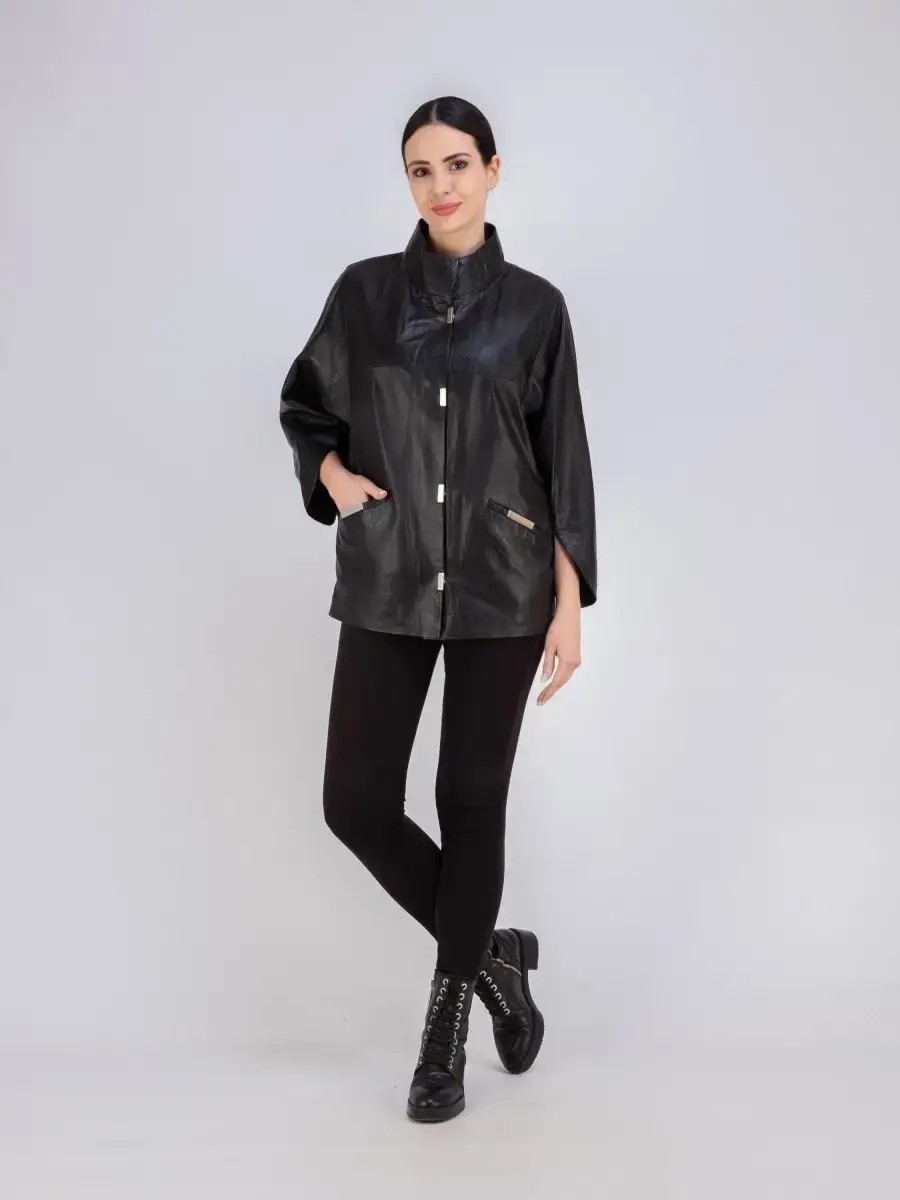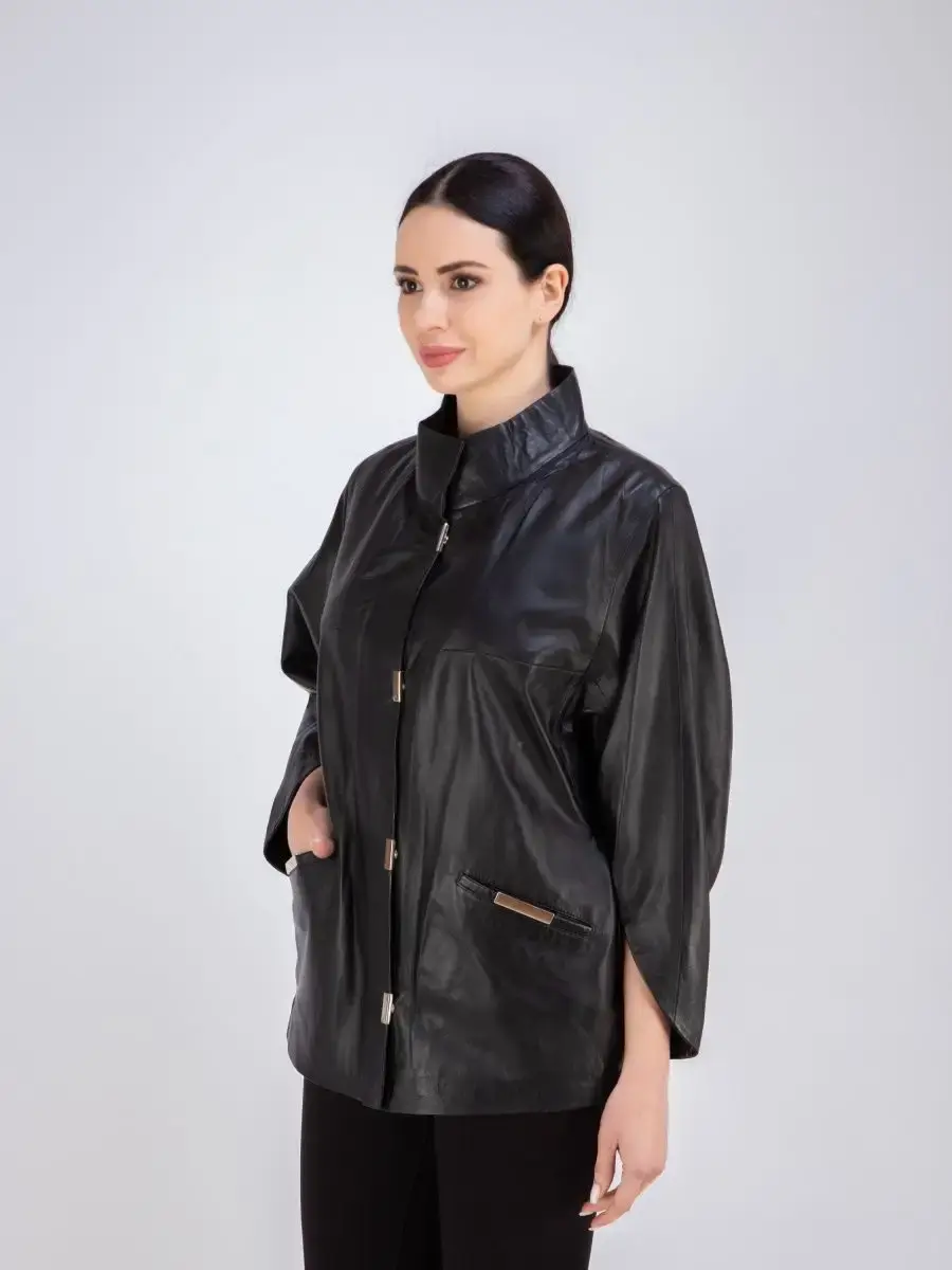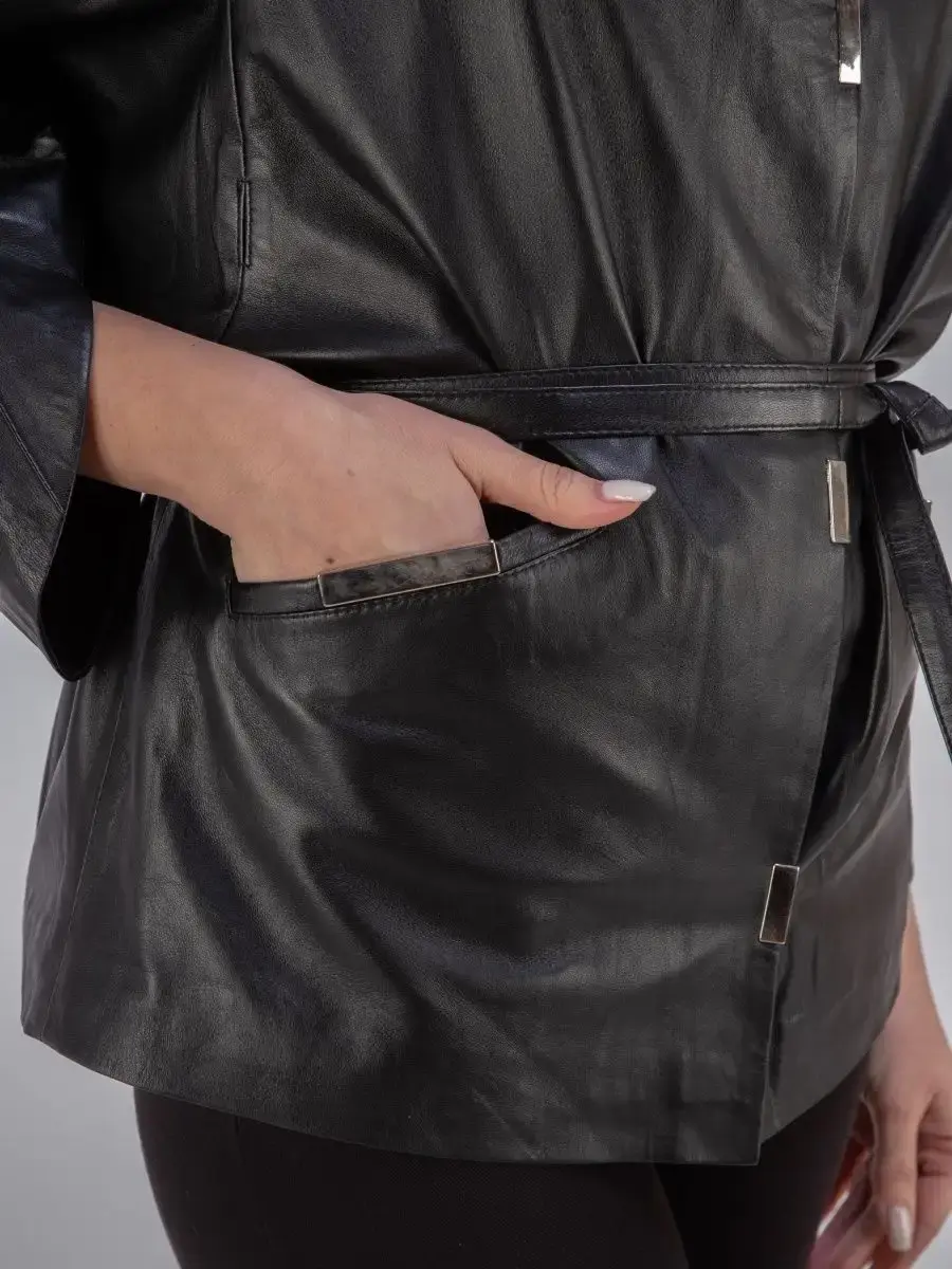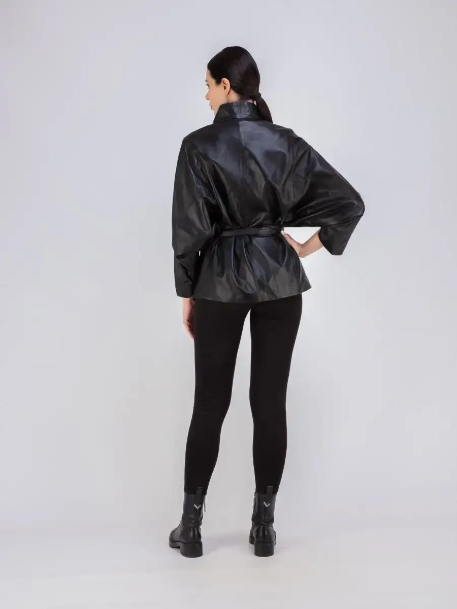 Модная куртка женская кожаная из натуральной кожи прекрасно подходить для холодных дней весной, осенью и летом. Стильная куртка женская из натуральной кожи, куртка демисезонная женская больших размеров выполнена из прочной и в то же время из мягкой и гладкой натуральной кожи ягненка. Куртка кожаная женская, куртка женская весна с застежкой на кнопках замечательный выбор, если вы намерены не только чувствовать себя комфортно, но и хотите выглядеть стильно и модно. Женская куртка с воротником стойка и с прорезными карманами отличный вариант на каждый день и сочетается с различными вещами. Кожаная куртка женская больших размеров с тонким поясом отлично защитит от ветра и дождя. Куртка женская кожаная оверсайз больших размеров свободного кроя. Вы можете купить куртки женские, косухи, куртки автоледи, короткие куртки и т.д. в подарок со скидкой на странице бренда MONDIAL! Коллекция обновляется каждый сезон. Длина по спинке 70см. Производство Турция