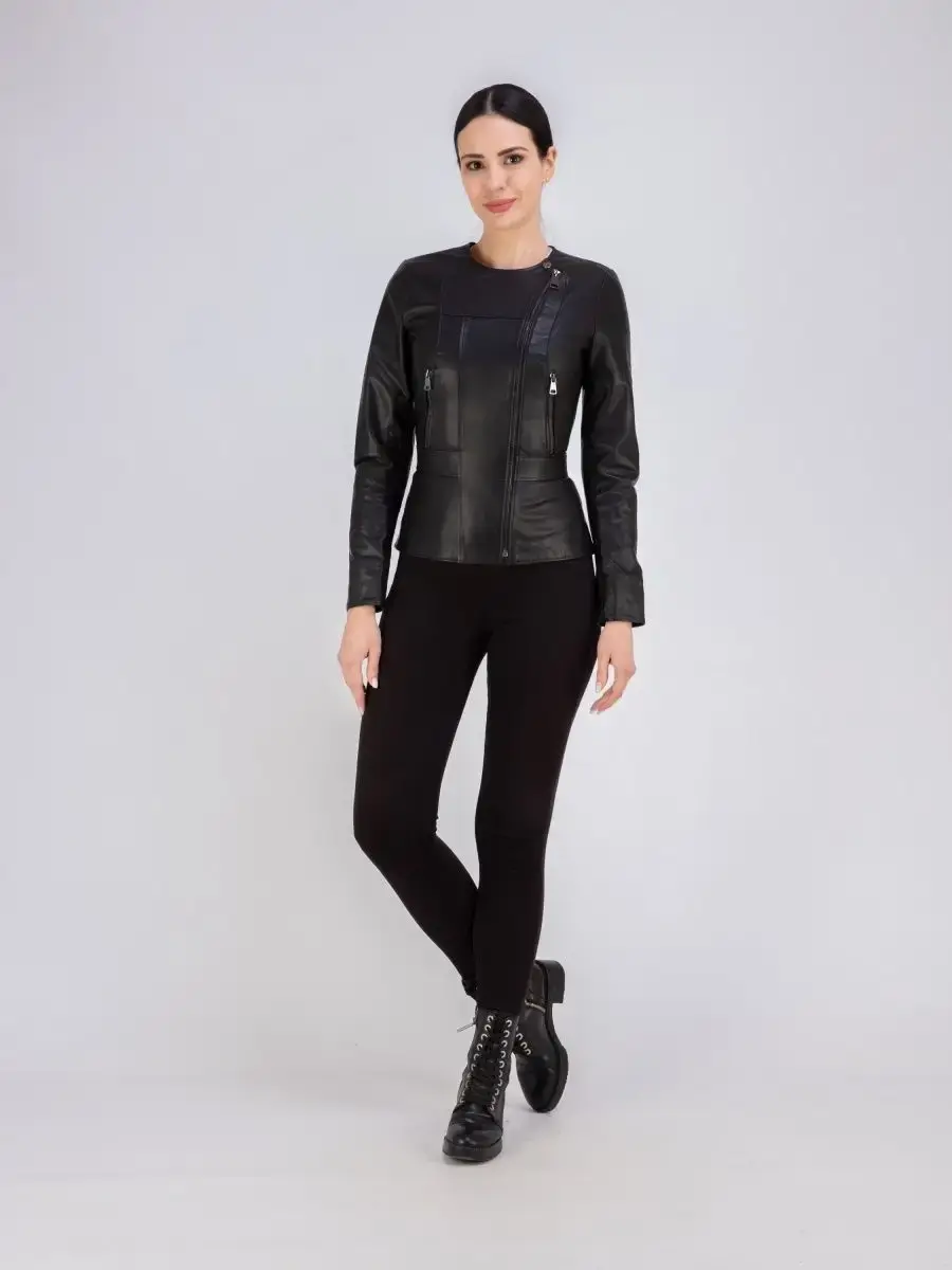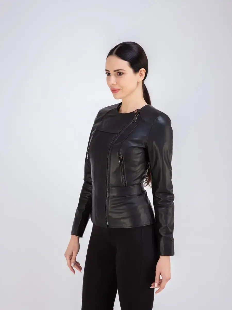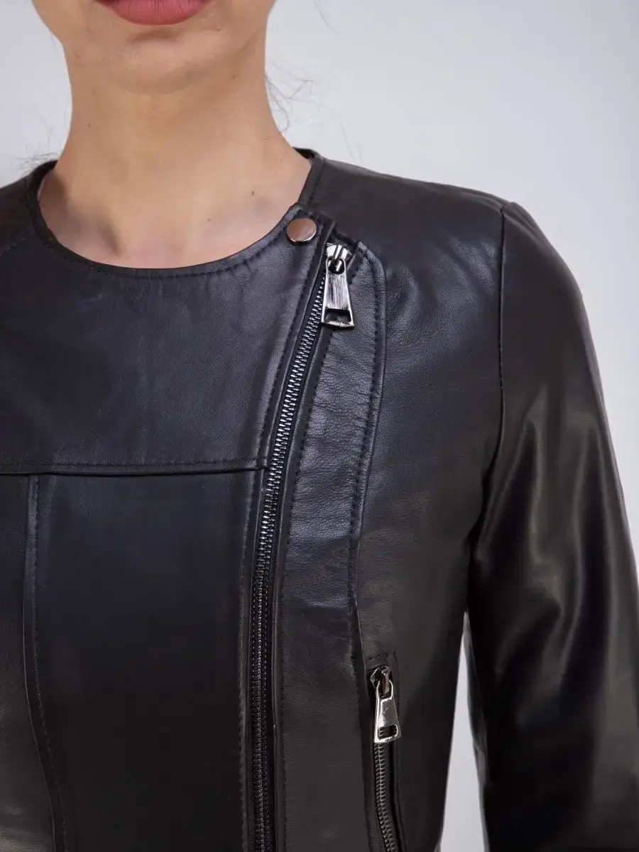 Куртка женская из натуральной кожи. Женская кожаная куртка выполнена из гладкой и мягкой кожи. Куртка кожаная женская - воротник шанель, застежка на молнии, прорезные карманы на молнии. Кожаная куртка женская натуральная универсальная, классическая модель с ассиметричной застежкой идеально впишется в Ваш гардероб. Сочетание дизайна с долговечностью, драгоценностью и мягкостью натуральной кожи делает женские кожаные куртки идеальным предметом женской одежды. Куртка демисезонная женская, куртка женская весна приталенного кроя подчеркнет Вашу индивидуальность, куртка женская короткая станет изюминкой вашего гардероба. Такую модель куртки - косуха женская можно носить с брюками в деловом стиле, джинсами и юбками. Вы можете купить куртки женские, куртки автоледи, короткие куртки, куртка женская демисезонная в подарок со скидкой на странице бренда MONDIAL! Коллекция обновляется каждый сезон. Длина по спинке 55см. Производство Турция
