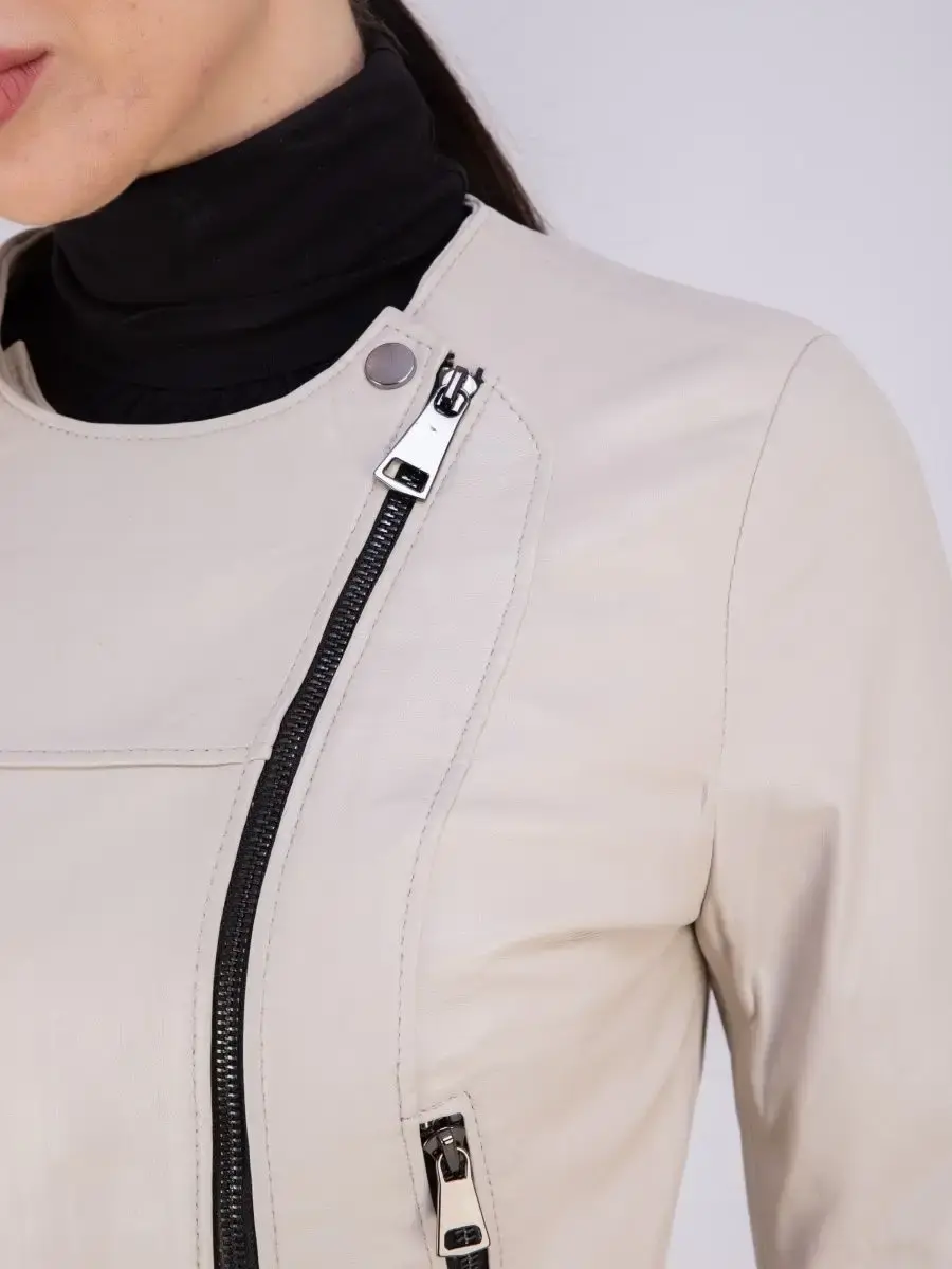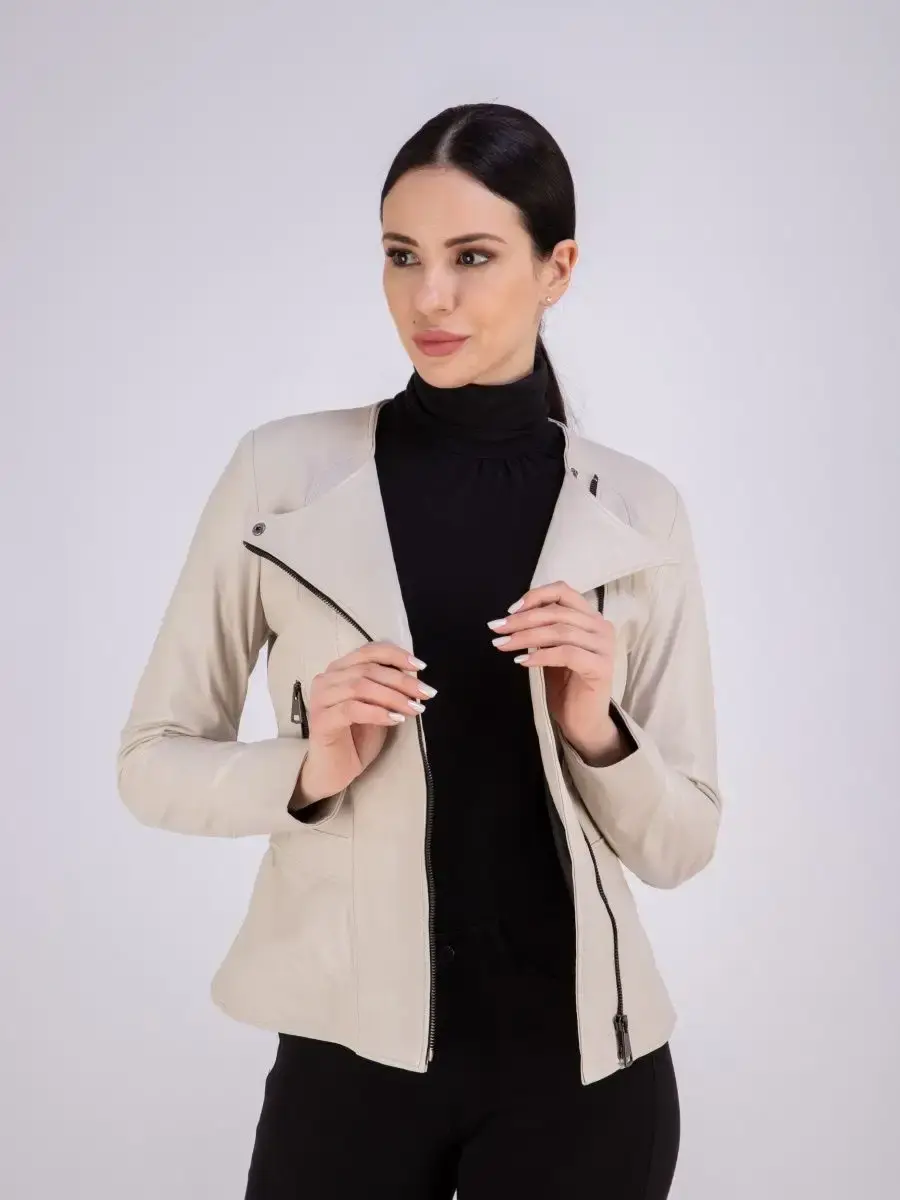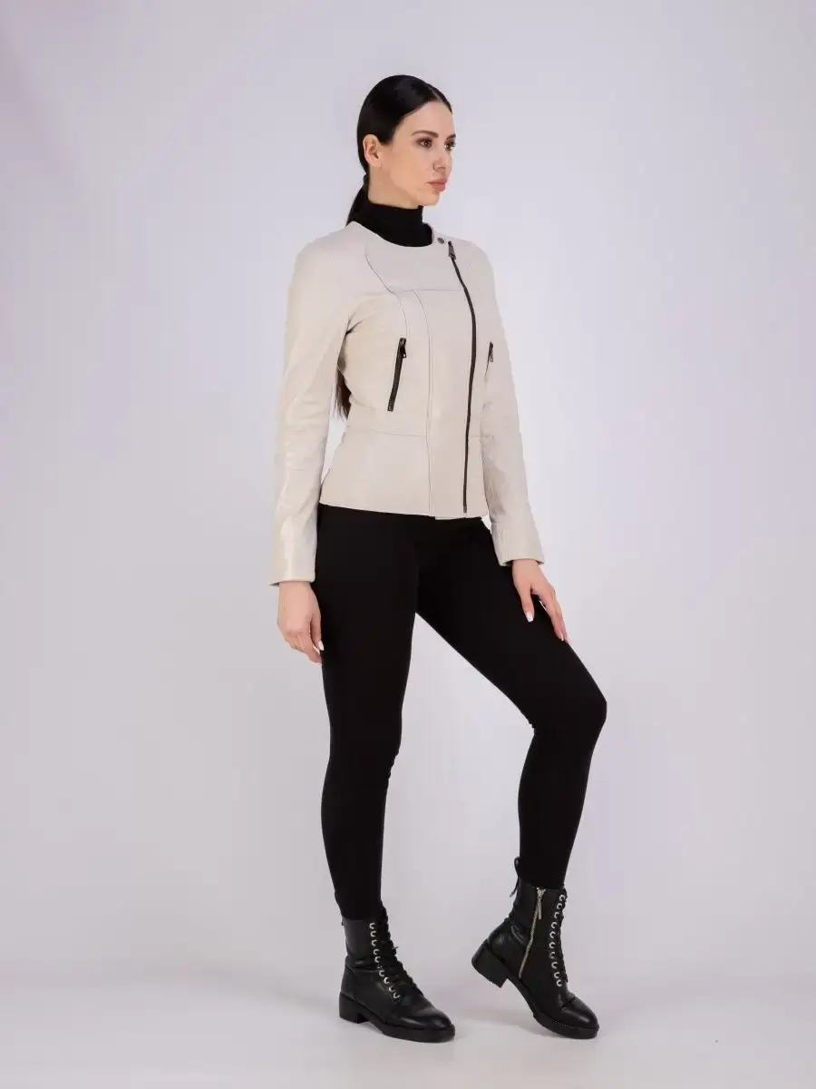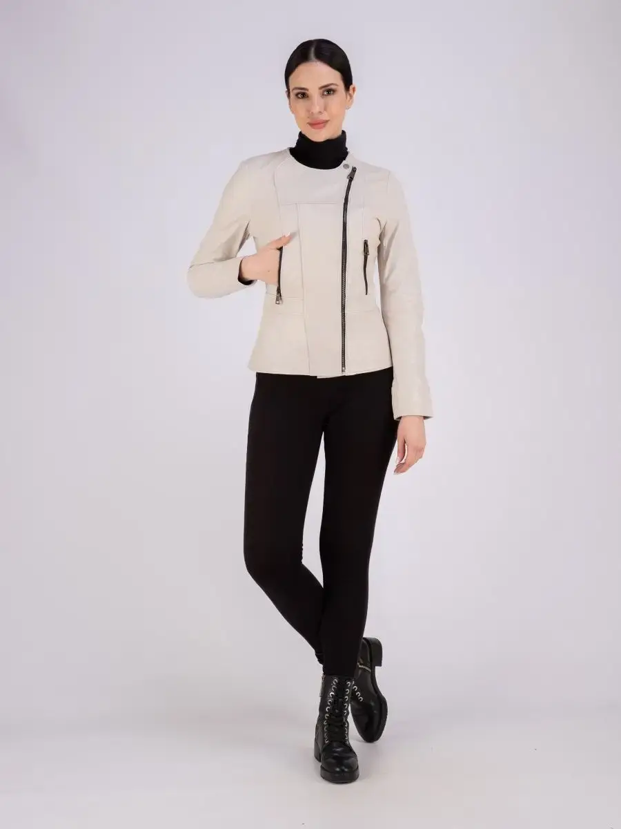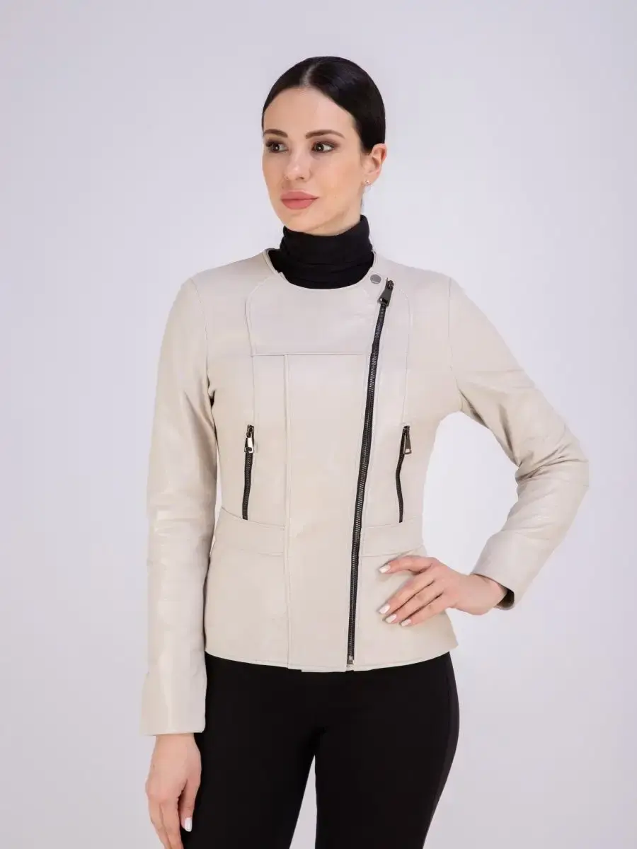 Куртка женская из натуральной кожи. Женская кожаная куртка выполнена из гладкой и мягкой кожи. Куртка кожаная женская - воротник шанель, застежка на молнии, прорезные карманы на молнии. Кожаная куртка женская натуральная универсальная, классическая модель с ассиметричной застежкой идеально впишется в Ваш гардероб. Сочетание дизайна с долговечностью, драгоценностью и мягкостью натуральной кожи делает женские кожаные куртки идеальным предметом женской одежды. Куртка демисезонная женская, куртка женская весна приталенного кроя подчеркнет Вашу индивидуальность, куртка женская короткая станет изюминкой вашего гардероба. Такую модель куртки - косуха женская можно носить с брюками в деловом стиле, джинсами и юбками. Вы можете купить куртки женские, куртки автоледи, короткие куртки, куртка женская демисезонная в подарок со скидкой на странице бренда MONDIAL! Коллекция обновляется каждый сезон. Длина по спинке 55см. Производство Турция