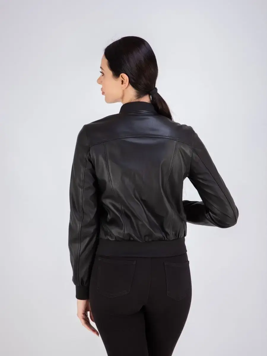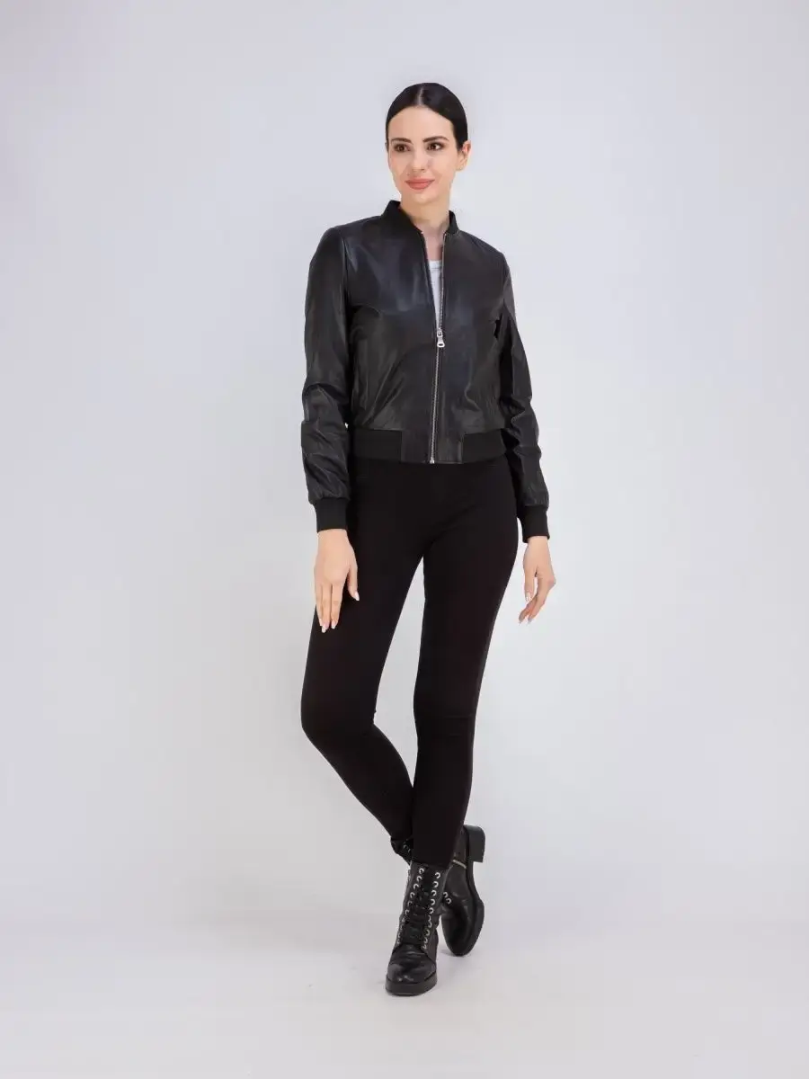 Куртка женская, бомбер женский из натуральной кожи. Женская кожаная куртка, бомбер для девочки выполнена из гладкой и мягкой кожи. Куртка кожаная женская - трикотажный воротник, застежка на молнии, прорезные карманы. Кожаная куртка женская натуральная универсальная, классическая модель идеально впишется в Ваш гардероб. Сочетание дизайна с долговечностью, драгоценностью и мягкостью натуральной кожи делает женские кожаные куртки идеальным предметом женской одежды. Куртка демисезонная женская, куртка женская весна приталенного кроя подчеркнет Вашу индивидуальность, куртка женская короткая станет изюминкой вашего гардероба. Такую модель можно носить с брюками в деловом стиле, джинсами и юбками, прекрасно впишется практически в любой стиль - повседневный, городской, офисный и вечерний. Вы можете купить куртки женские, куртки автоледи, короткие куртки, куртка женская демисезонная в подарок со скидкой на странице бренда MONDIAL! Новая коллекция каждый сезон. Куртка женская весна - осень, манжеты и воротник выполнены из трикотажа. Длина по спинке 50см. Производство Турция