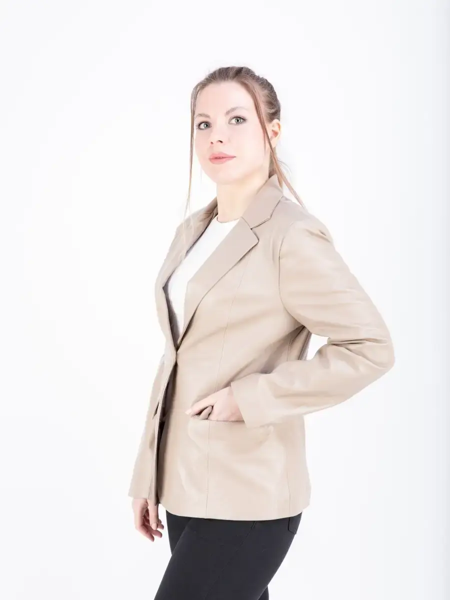 Куртка женская блейзер, пиджак из натуральной кожи ягненка. Классическая женская куртка, блейзер женский пиджак прямого кроя, английский воротник, в качестве застежки пуговица. Куртка выполнена из гладкой и мягкой кожи, идеально подойдет для полных дам, оверсайз - большие размеры. Блейзер кожаный станет изюминкой вашего гардероба, подчеркнет Вашу индивидуальность, как и в повседневном гардеробе так и в вечернем! Такую модель можно носить с брюками в деловом стиле, джинсами и зауженной юбкой карандаш. Куртка женская из натуральной кожи отличный подарок на 14 февраля, день святого валентина, день влюбленных, подарок на день рождения подруге, подарок на годовщину свадьбы, подарок женщине, подарок девушке, 8 марта, подарок подруге, подарок маме. MONDIAL Производство Турция.