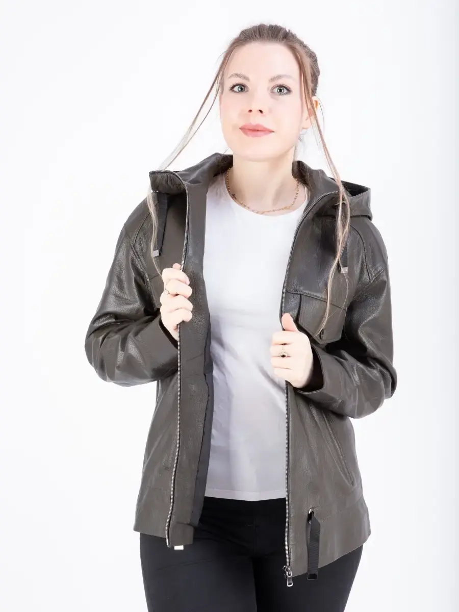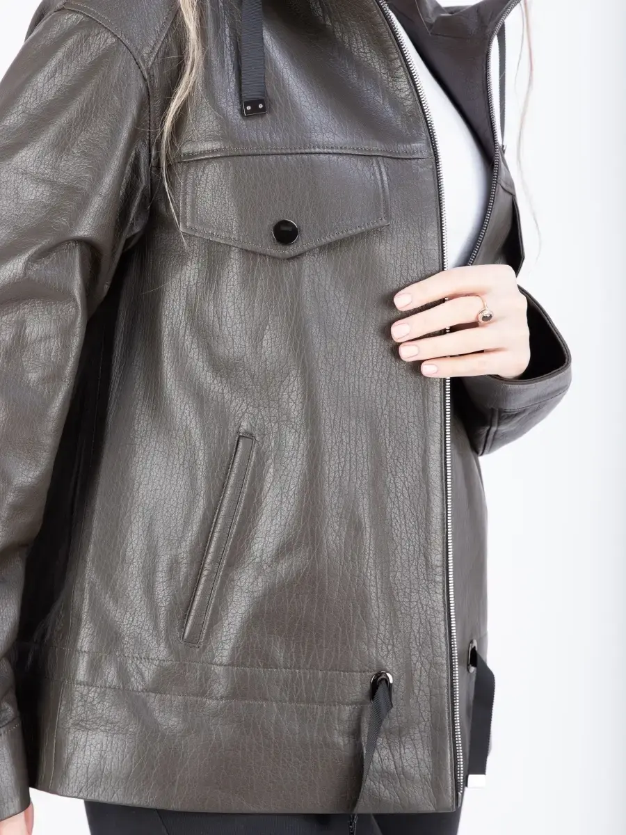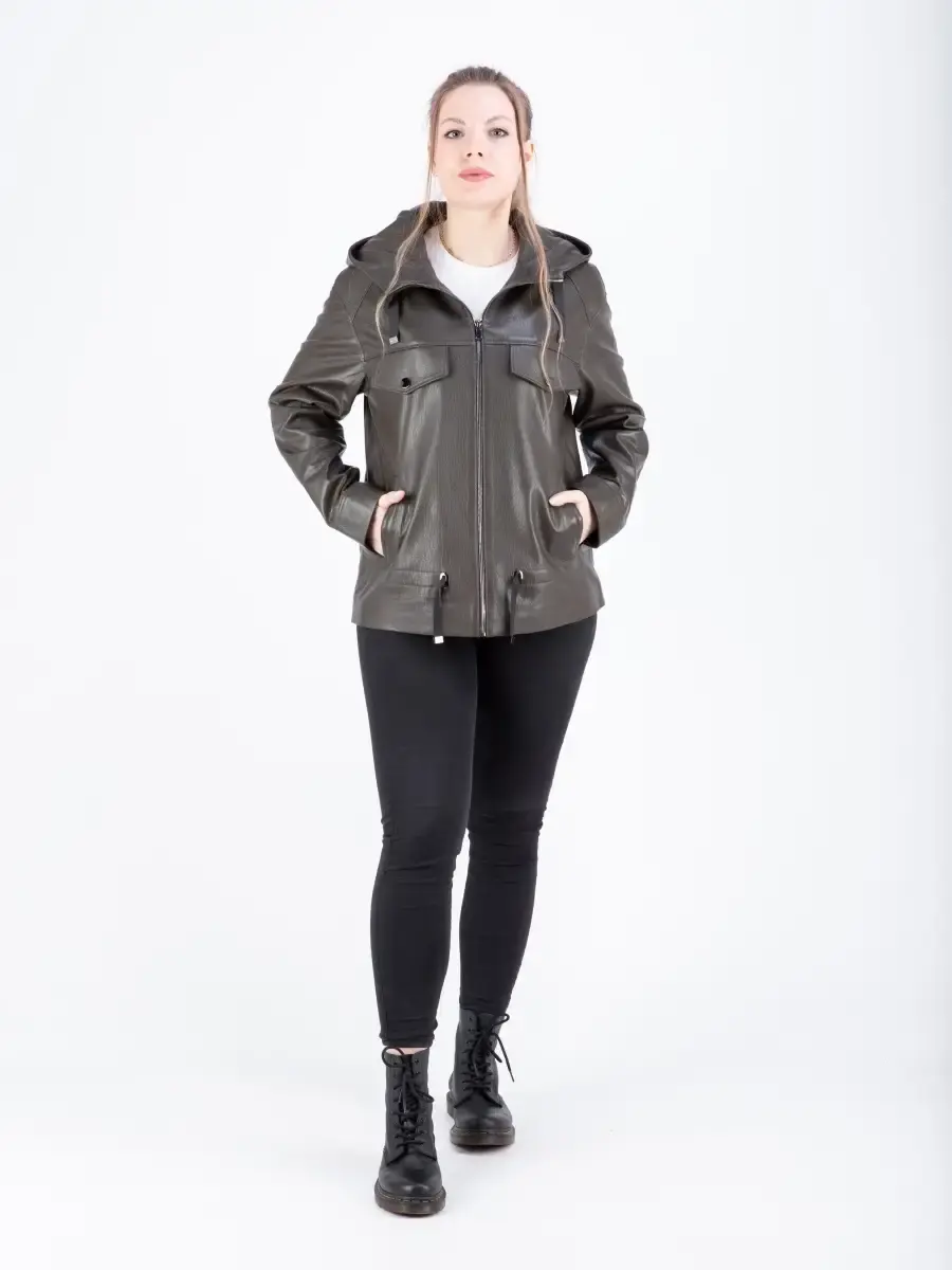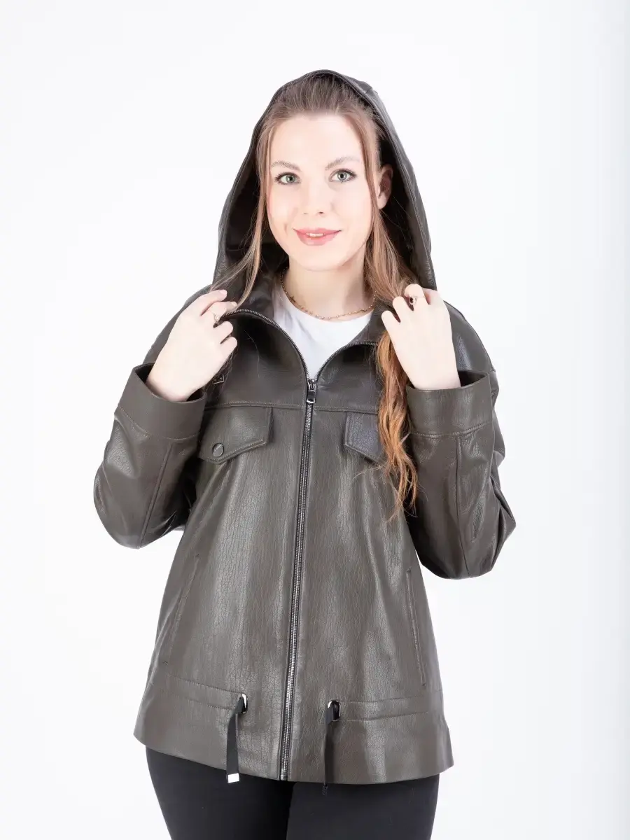 Куртка кожаная женская из натуральной кожи ягненка. Женская куртка кожаная выполнена из прочной и в то же время из мягкой натуральной кожи. Выделка кожи фактурная - джумбо, смотрится роскошно и богато. Куртка кожаная натуральная женская оверсайз большие размеры. Куртка женская свободного кроя не сковывает движения, в качестве застежки молния, с глубоким капюшоном. Особенно удобно при вождении автомобиля. Рукав имеет спущенную линию плеча - реглан. Карманы прорезные. Современная женская куртка располагает удобным и декоративными элементами в виде карманов на груди и кулиски на капюшоне и внизу. Куртка женская демисезонная, короткая куртка женская, женская куртка на весну и на осень, куртка женская кожаная демисезон, куртка женская натуральная кожа, женские куртки из натуральной кожи, весенняя куртка женская, куртка женская осенняя, куртка весна, куртка кожаная женская весна - запросы для поиска куртки MONDIAL Производство Турция!