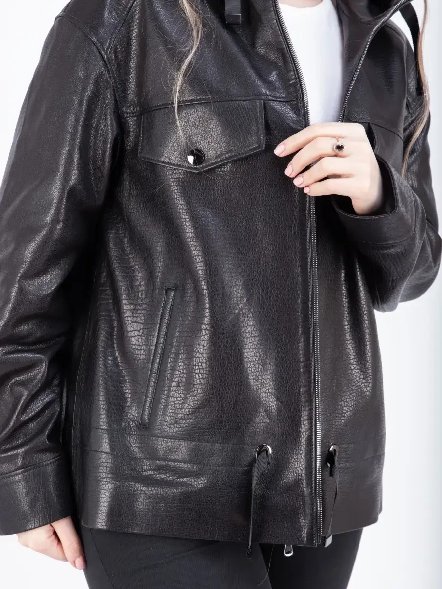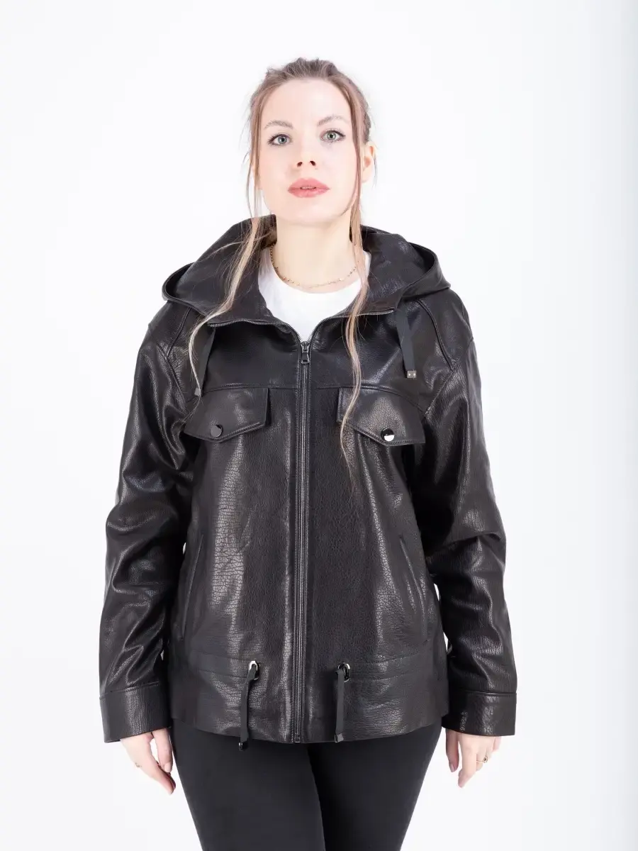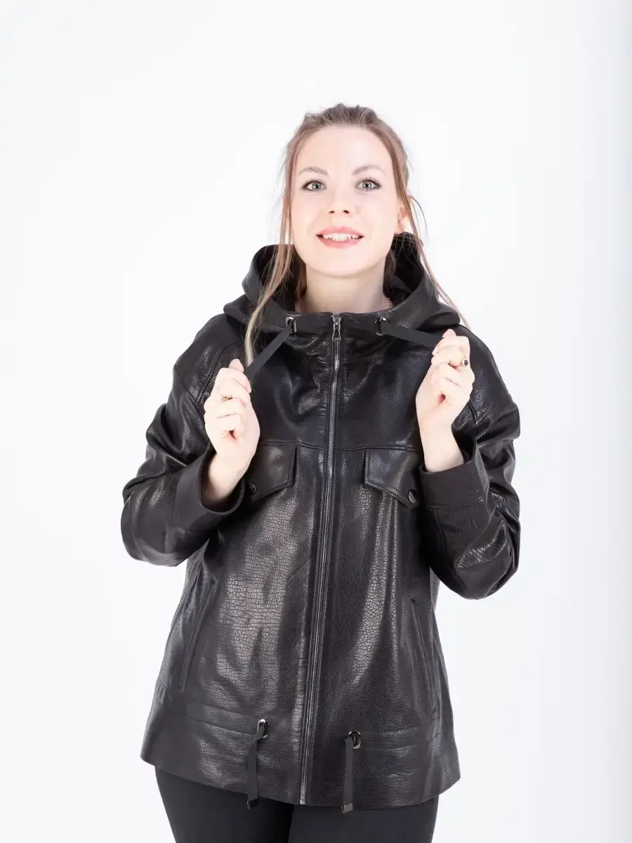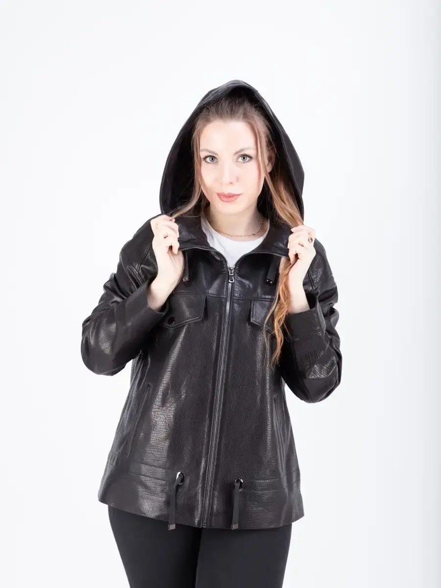 Куртка кожаная женская из натуральной кожи ягненка. Женская куртка кожаная выполнена из прочной и в то же время из мягкой натуральной кожи. Выделка кожи фактурная - джумбо, смотрится роскошно и богато. Куртка кожаная натуральная женская оверсайз большие размеры. Куртка женская свободного кроя не сковывает движения, в качестве застежки молния, с глубоким капюшоном. Особенно удобно при вождении автомобиля. Рукав имеет спущенную линию плеча - реглан. Карманы прорезные. Современная женская куртка располагает удобным и декоративными элементами в виде карманов на груди и кулиски на капюшоне и внизу. Куртка женская демисезонная, короткая куртка женская, женская куртка на весну и на осень, куртка женская кожаная демисезон, куртка женская натуральная кожа, женские куртки из натуральной кожи, весенняя куртка женская, куртка женская осенняя, куртка весна, куртка кожаная женская весна - запросы для поиска куртки MONDIAL Производство Турция!
