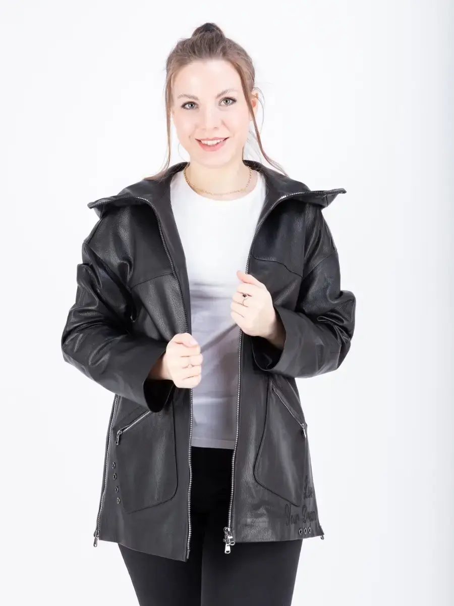 Куртка кожаная женская из натуральной кожи ягненка. Женская куртка кожаная выполнена из прочной и в то же время из мягкой натуральной кожи. Выделка кожи фактурная - джумбо, смотрится роскошно и богато. Куртка кожаная натуральная женская для полных дам, оверсайз - большие размеры. Куртка женская свободного кроя не сковывает движения, в качестве застежки молния с глубоким капюшоном. Рукав имеет спущенную линию плеча - реглан. Карманы накладные на молнии. Современная женская куртка располагает удобным и декоративными элементами в виде функциональных молний, по бокам изделия. Особенно удобно при вождении автомобиля. Куртка женская демисезонная, короткая куртка женская, женская куртка на весну и на осень, куртка женская кожаная демисезон, куртка женская натуральная кожа, женские куртки из натуральной кожи, весенняя куртка женская, куртка женская осенняя, куртка весна, куртка кожаная женская весна - запросы для поиска куртки MONDIAL Производство Турция!