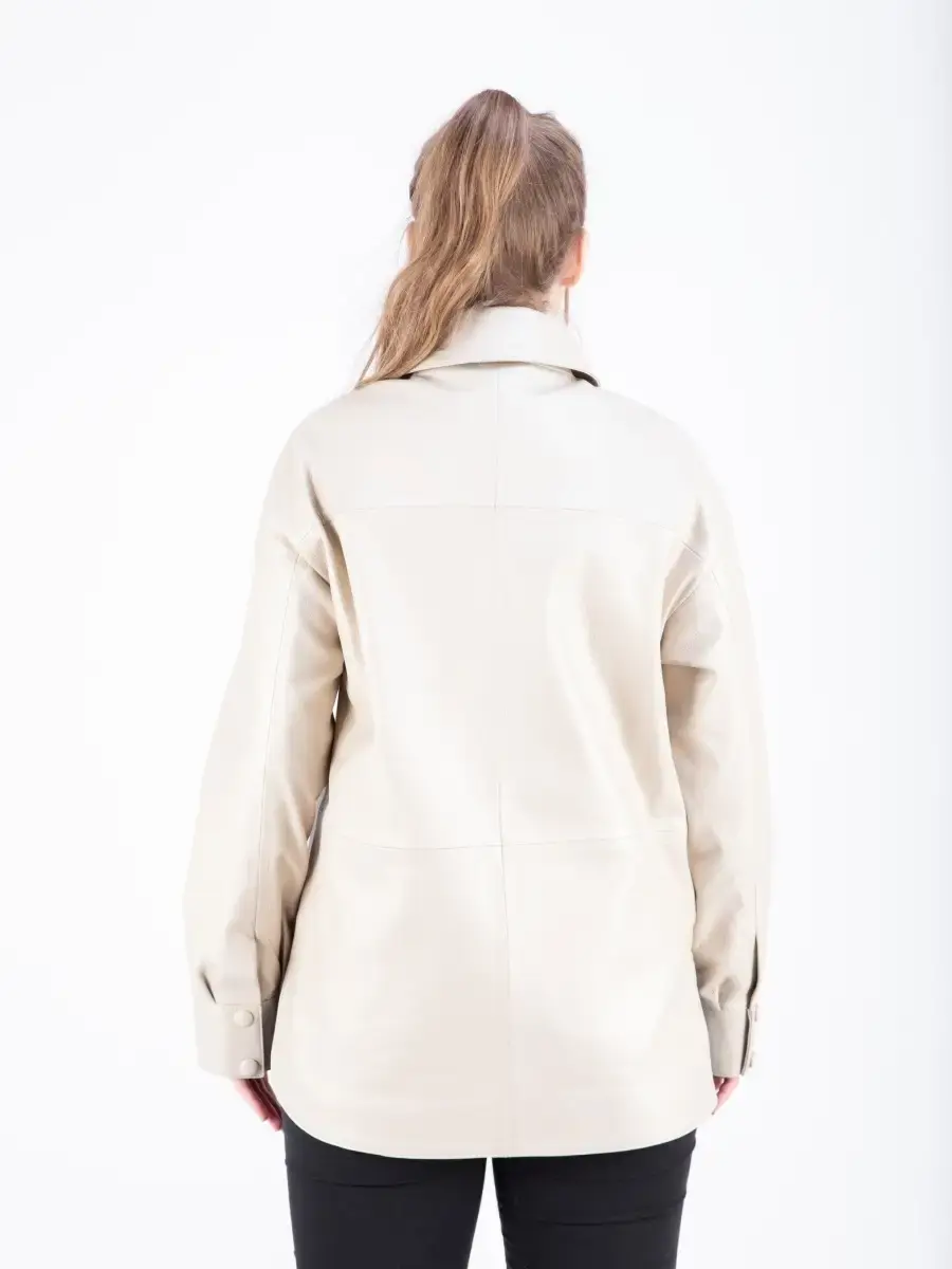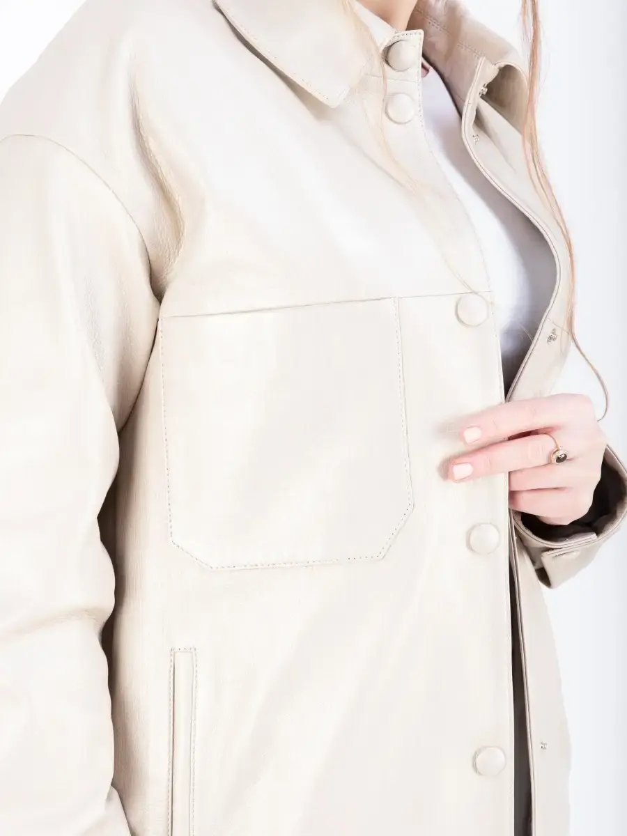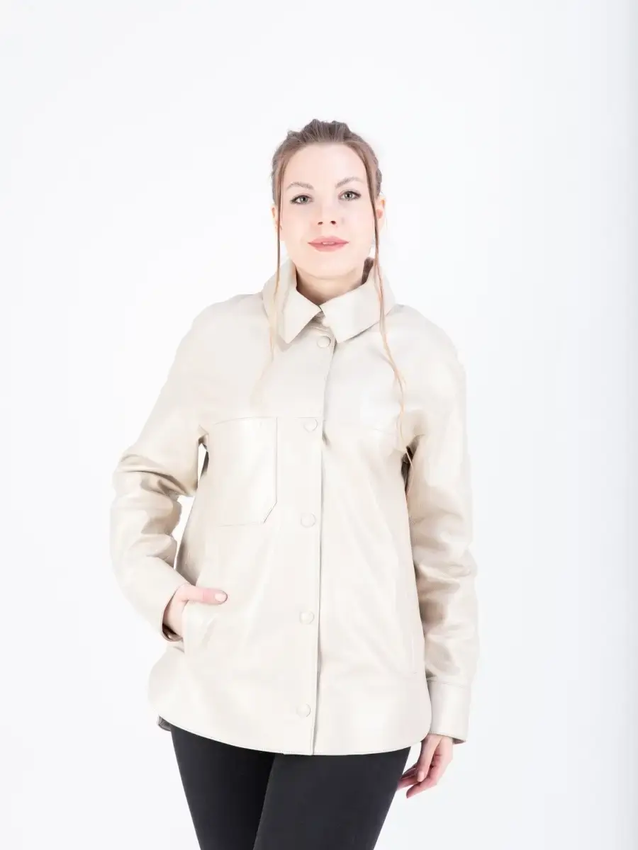 Куртка - рубашка женская из натуральной кожи ягненка. Женская куртка кожаная выполнена из прочной и в то же время из мягкой натуральной кожи. Выделка кожи фактурная - джумбо. Воротник рубашечный со стойкой. Стильная женская куртка - рубашка располагает удобным и декоративными элементами в виде разрезов по бокам и карманом на груди. Куртка женская свободного кроя не сковывает, особенно удобно при вождении автомобиля. В качестве застежки кнопки, карманы прорезные. Рукав имеет спущенную линию плеча - реглан с манжетом на кнопках. Такая стильная куртка будет радовать Вас своей универсальностью: осенью и весной ее можно носить как верхнюю одежду, а зимой под пуховик или шубу-чебурашку, что сделает Ваш образ многослойным, а значит интересным. Свободный крой рубашки позволит носить ее на теплый свитер без стеснения движений в качестве полноценной верхней одежды. Куртка женская демисезонная, короткая куртка женская, женская куртка на весну и на осень