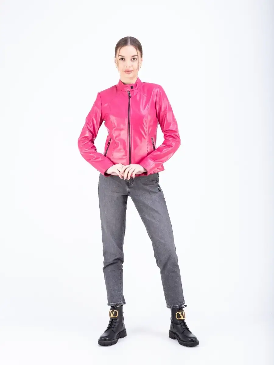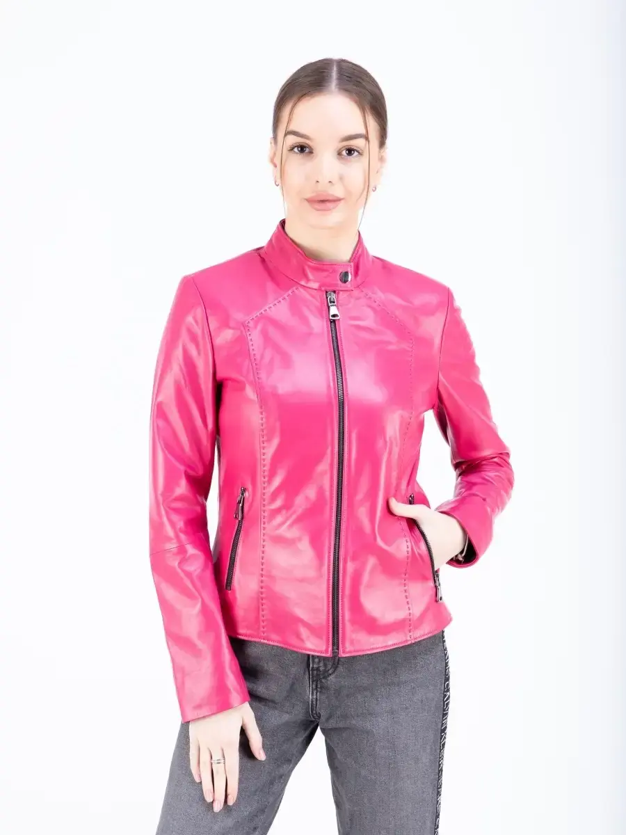 Куртка кожаная женская из натуральной кожи ягненка. Женская кожаная куртка выполнена из гладкой и мягкой кожи. Воротник стойка, застежки на молнии. Куртка кожаная натуральная классическая с декоративной строчкой идеально впишется в Ваш гардероб. Куртка женская из натуральной кожи отличный подарок на 14 февраля, день святого валентина, день влюбленных, подарок на день рождения подруге, подарок на годовщину свадьбы, подарок женщине, подарок девушке, 8 марта, подарок подруге, подарок маме. MONDIAL Производство Турция
