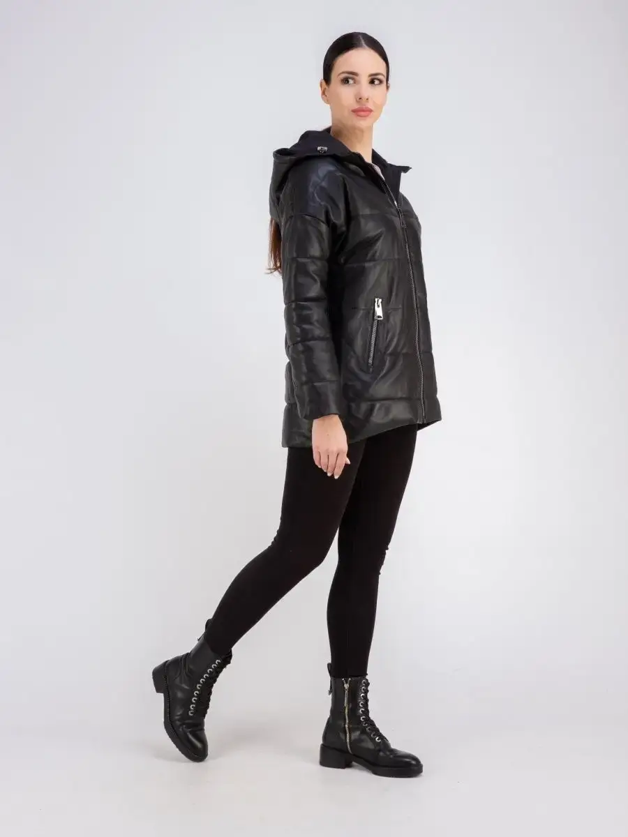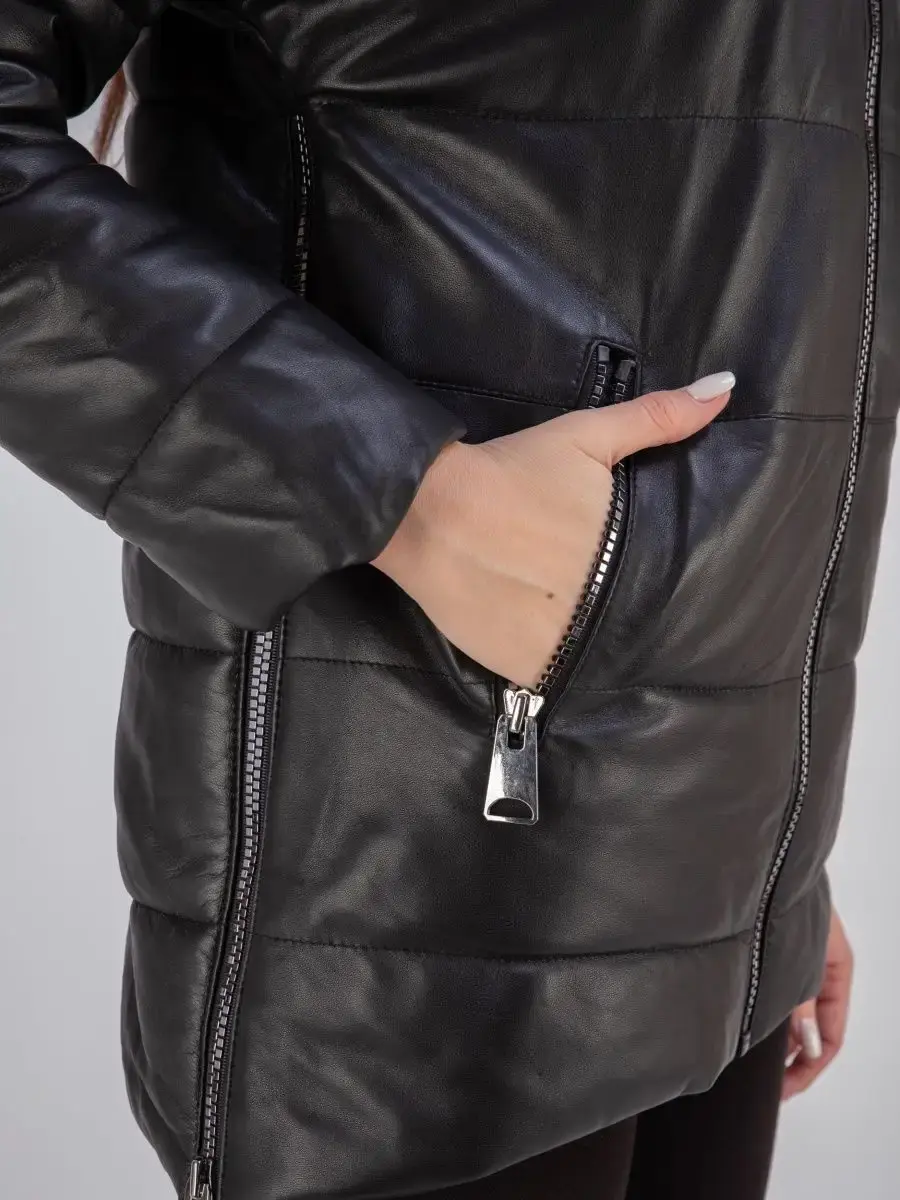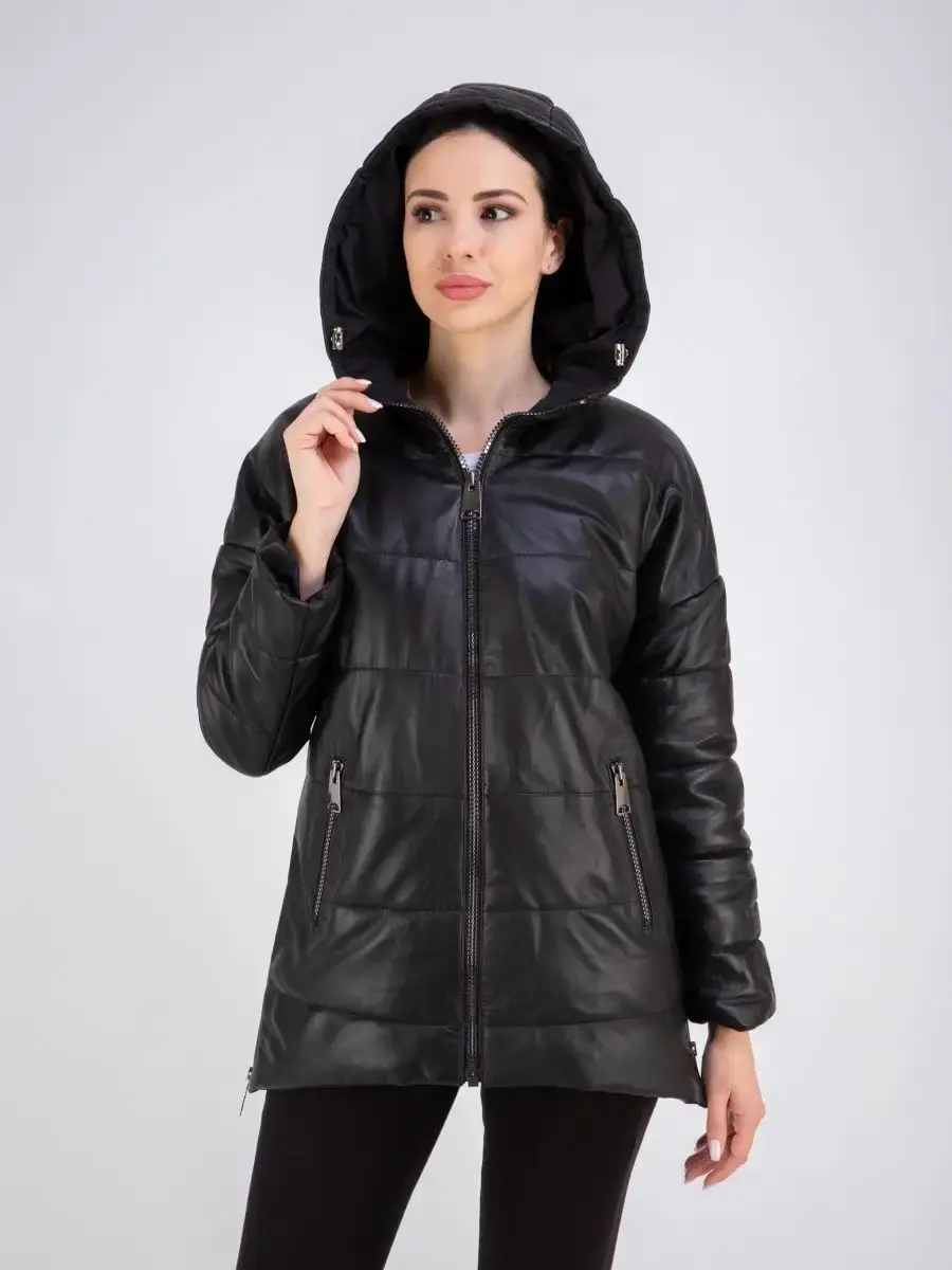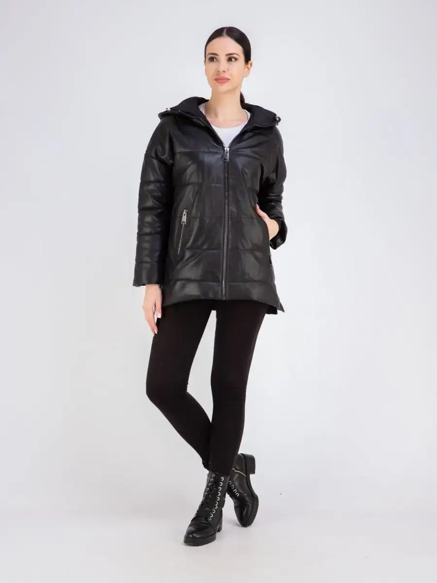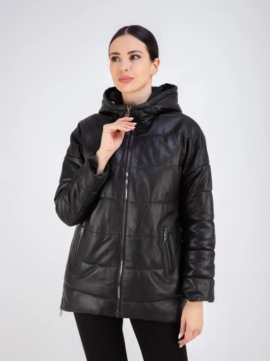 Куртка женская из натуральной кожи утепленная синтепоном, короткая идеальное решение для создания модного гардероба. Стильная кожаная куртка для теплой зимы и холодной весны, осени. Куртка женская весна - осень выполнена из прочной и в тоже время из мягкой, гладкой натуральной кожи. Куртка весенняя женская , куртка демисезонная женская прямого кроя с прорезными карманами на молнии и с капюшоном подойдет под любой образ, отлично смотреться как на невысоких, так и на девушках с высоким ростом. Кожаная куртка женская, куртка кожаная женская станет изюминкой вашего гардероба, подчеркнет Вашу индивидуальность, как и в повседневном гардеробе так и в вечернем! Такую модель можно носить с брюками в деловом стиле, джинсами и юбками, шикарно смотрится и с повседневными нарядами, и с вечерними платьями. Женская куртка стеганая с кулисками на капюшоне и с молнией по бокам удобно носить в машине, куртка женская кожаная прекрасно впишется практически в любой стиль - повседневный, городской, офисный и вечерний. Вы можете купить куртки женские, косуха женская кожаная, куртка женская демисезонная косуха женская укороченная, кожаная куртка женская, косуха для девочки, куртка кожаная женская в подарок со скидкой на странице бренда MONDIAL! Длина по спинке 70см. Производство Турция