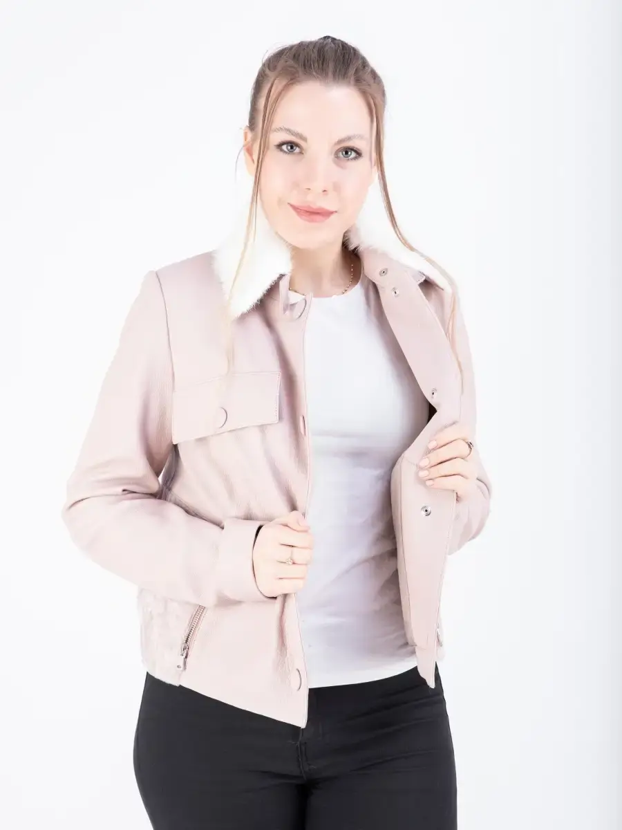Куртка кожаная женская из натуральной кожи ягненка с отделкой из меха овчины с обратной стороны. Воротник съемный из меха норки. Стильная комбинированная куртка из натуральной кожи и меха смотрится очень роскошно и богато, подчеркнет Ваш уникальный стиль, идеально будет сочетаться с любым стилем одежды. Женская куртка кожаная выполнена из прочной и в то же время из мягкой натуральной кожи. Выделка кожи фактурная - зернистая. Карманы прорезные на молнии, на груди декоративные вставки - клапаны на кнопках. Куртка женская прямого кроя не сковывает движения - оверсайз (overize) , в качестве застежки кнопки. Куртка женская демисезонная, короткая куртка женская, женская куртка на весну и на осень, куртка женская кожаная демисезон, куртка женская натуральная кожа, женские куртки из натуральной кожи, весенняя куртка женская, куртка женская осенняя, куртка весна, куртка кожаная женская весна - запросы для поиска куртки MONDIAL Производство Турция
