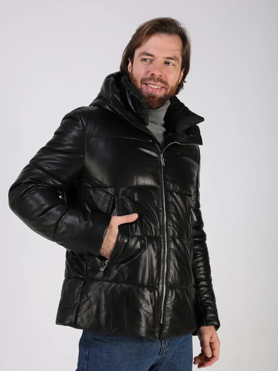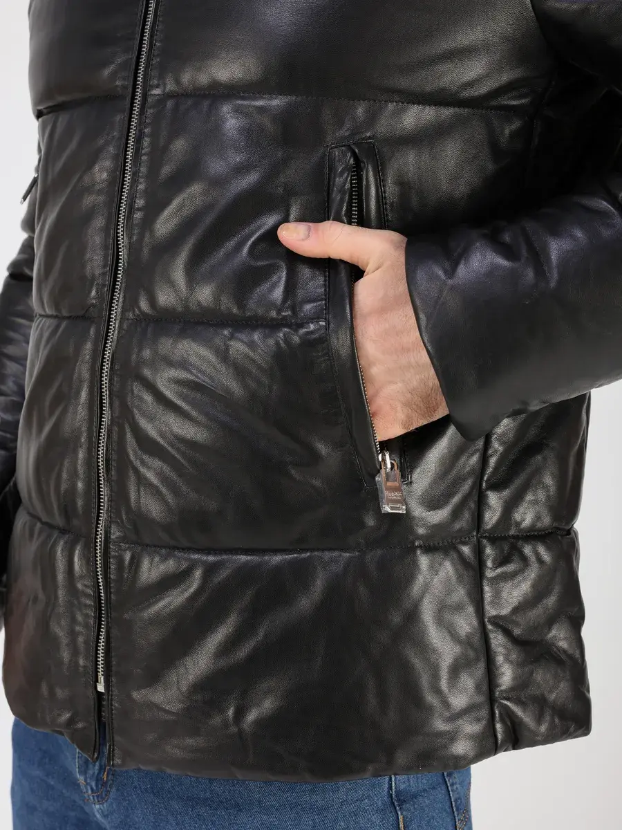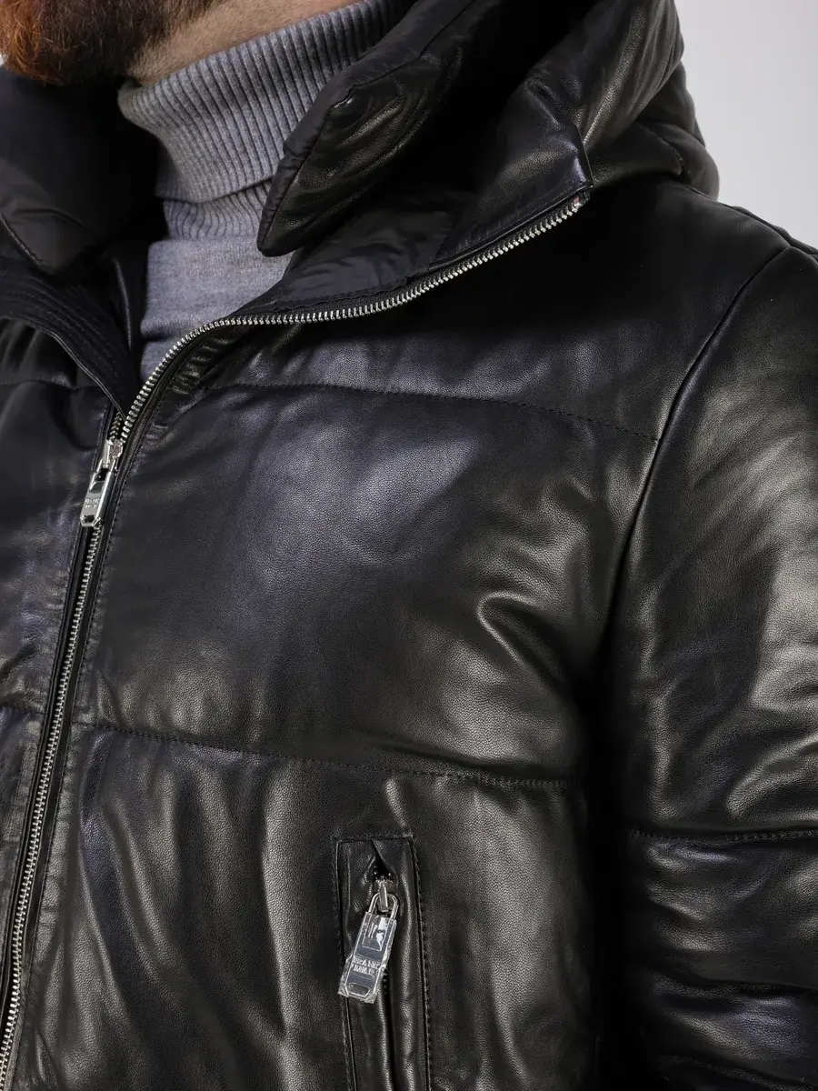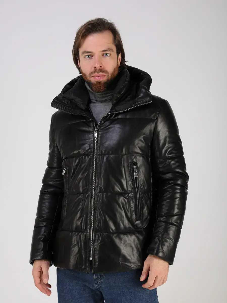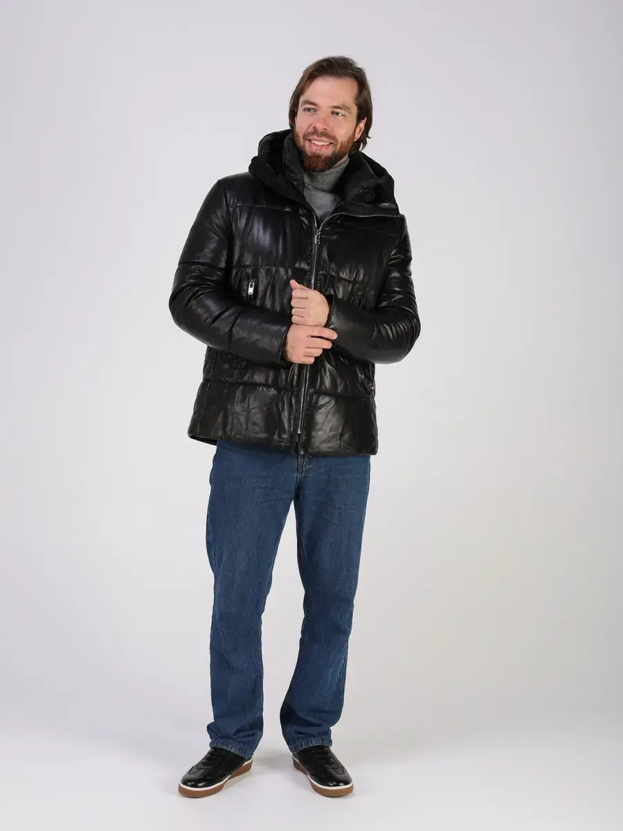 Стильная кожаная куртка зимняя из натуральной кожи с капюшоном от бренда MONDIAL - это отличный выбор верхней одежды на зиму и холодный период межсезонья весны и осени. Куртка зимняя мужская, дутик выполнено из натуральной кожи премиум - качества и имеет утеплитель на синтепоне, что обеспечивает непревзойденную прочность и долговечность изделия.