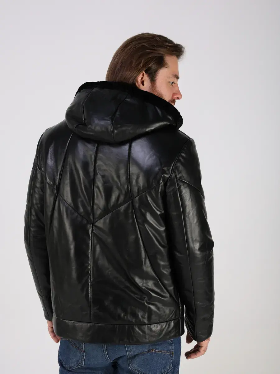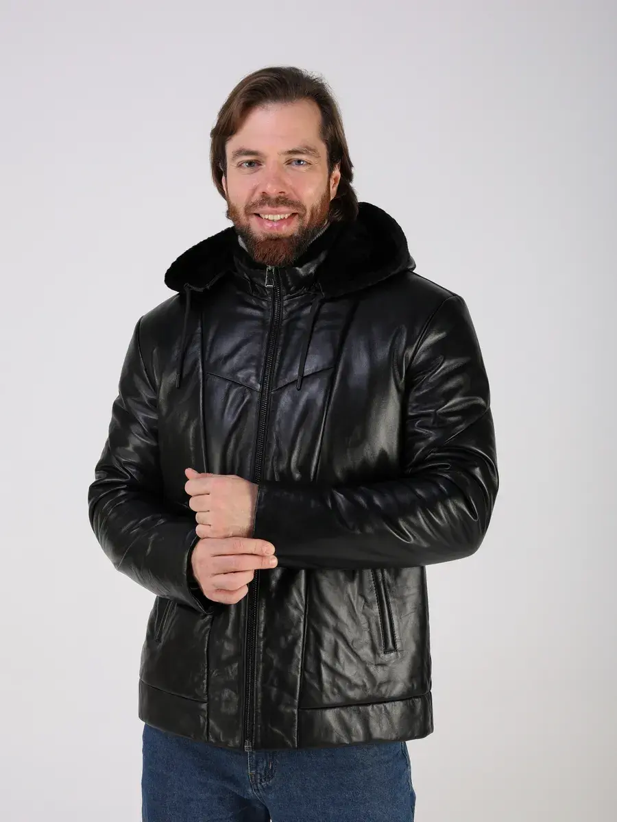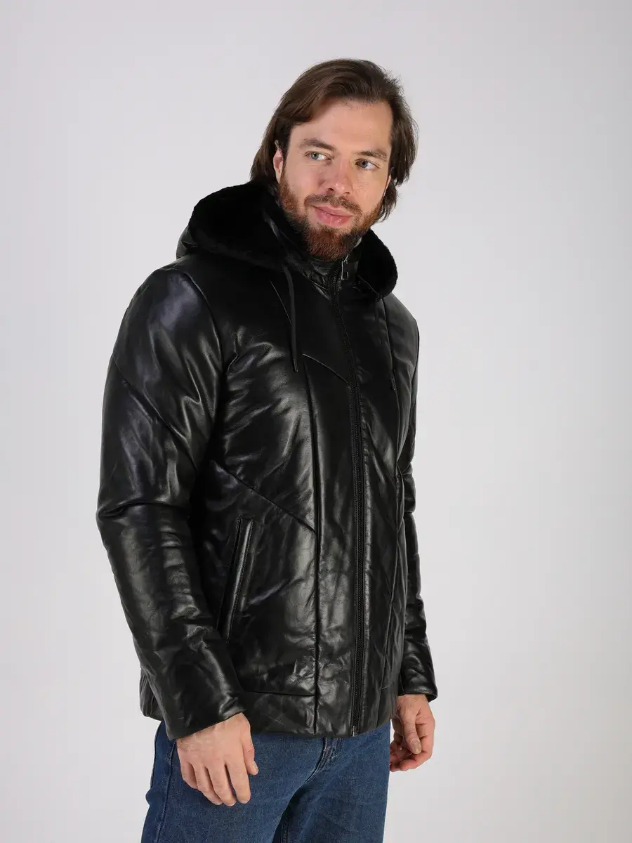 стеганная куртка зимняя мужская из натуральной кожи,