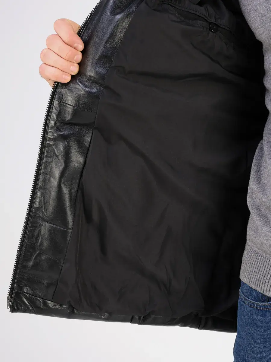 стеганная куртка зимняя мужская из натуральной кожи,