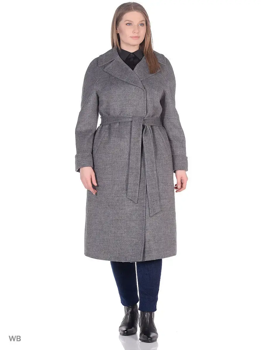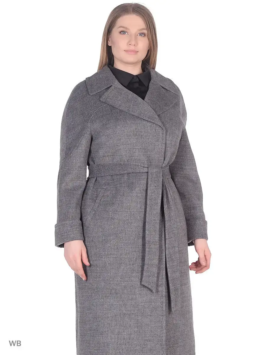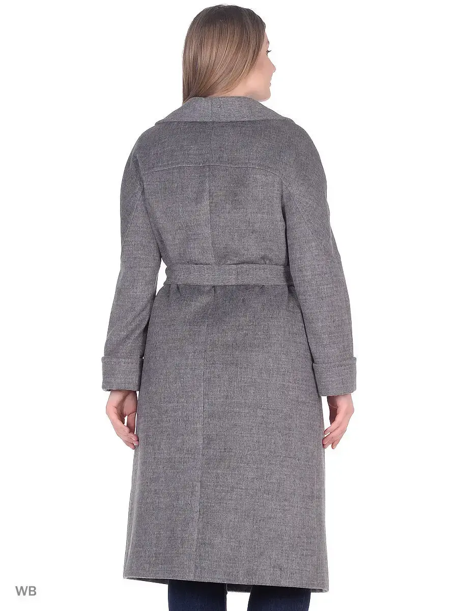 Двубортное пальто А-силуэта длиной до середины икры. Рукав реглан с отворотом, английский воротник, карманы листочки. Застежка на скрытые кнопки. Декорировано горизонтальным волнистым отрезом, проходящим через рукава и полочки.