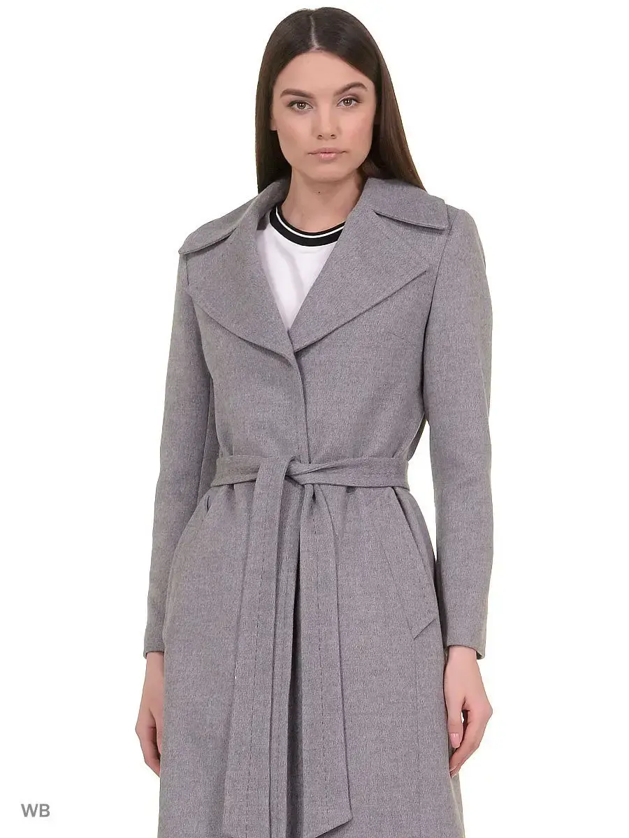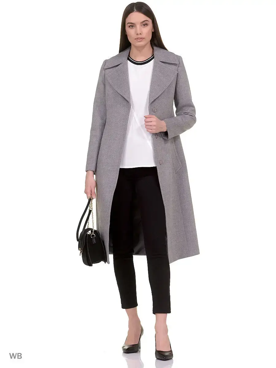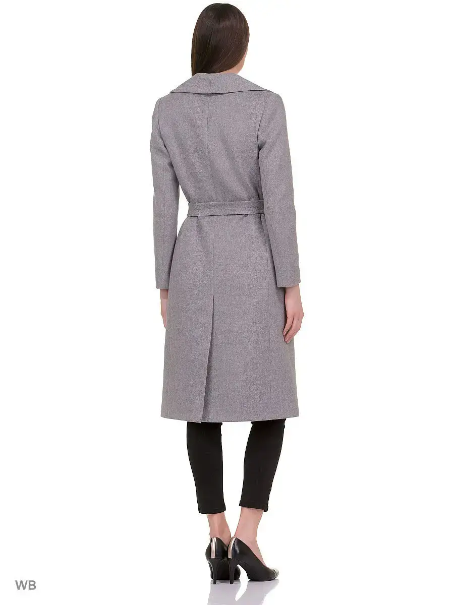 Однобортное классическое пальто французской длины из ворсовой меланжевой ткани. Втачной рукав, широкий английский воротник, карманы листочки, застежка на скрытые кнопки, пояс из основной ткани, шлица в среднем шве спинки.