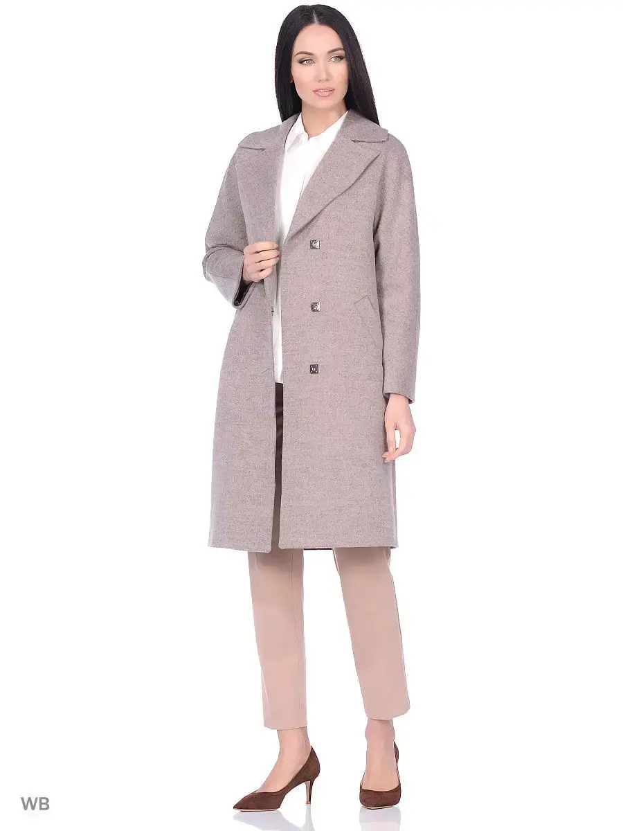 Однобортное пальто прямого силуэта длиной до колена из пальтовой ткани. Цельнокроенный рукав длиной 7/8, широкий английский воротник, карманы листочки, застежка на скрытые кнопки.