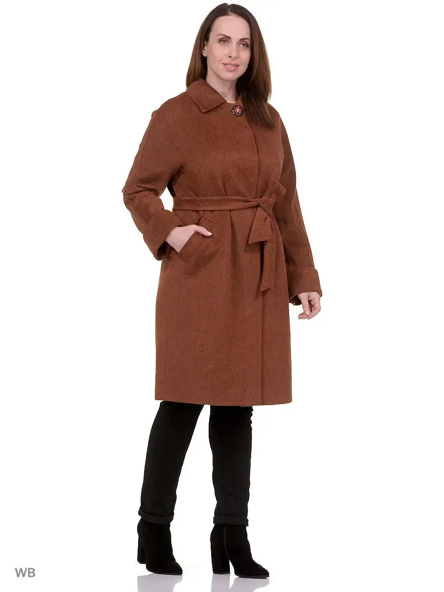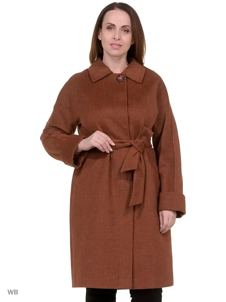 Однобортное пальто прямого силуэта длиной чуть ниже колена. Цельнокроенный рукав с отворотом, отложной воротник, карманы-листочки. Застежка на скрытые кнопки. Декорировано тамбурной строчкой.