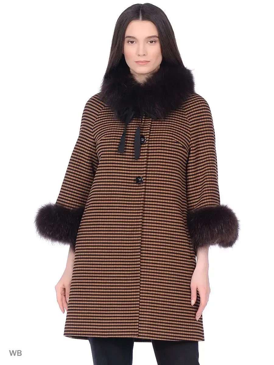 крупные пуговицы. Воротник и рукава отделаны натуральным
