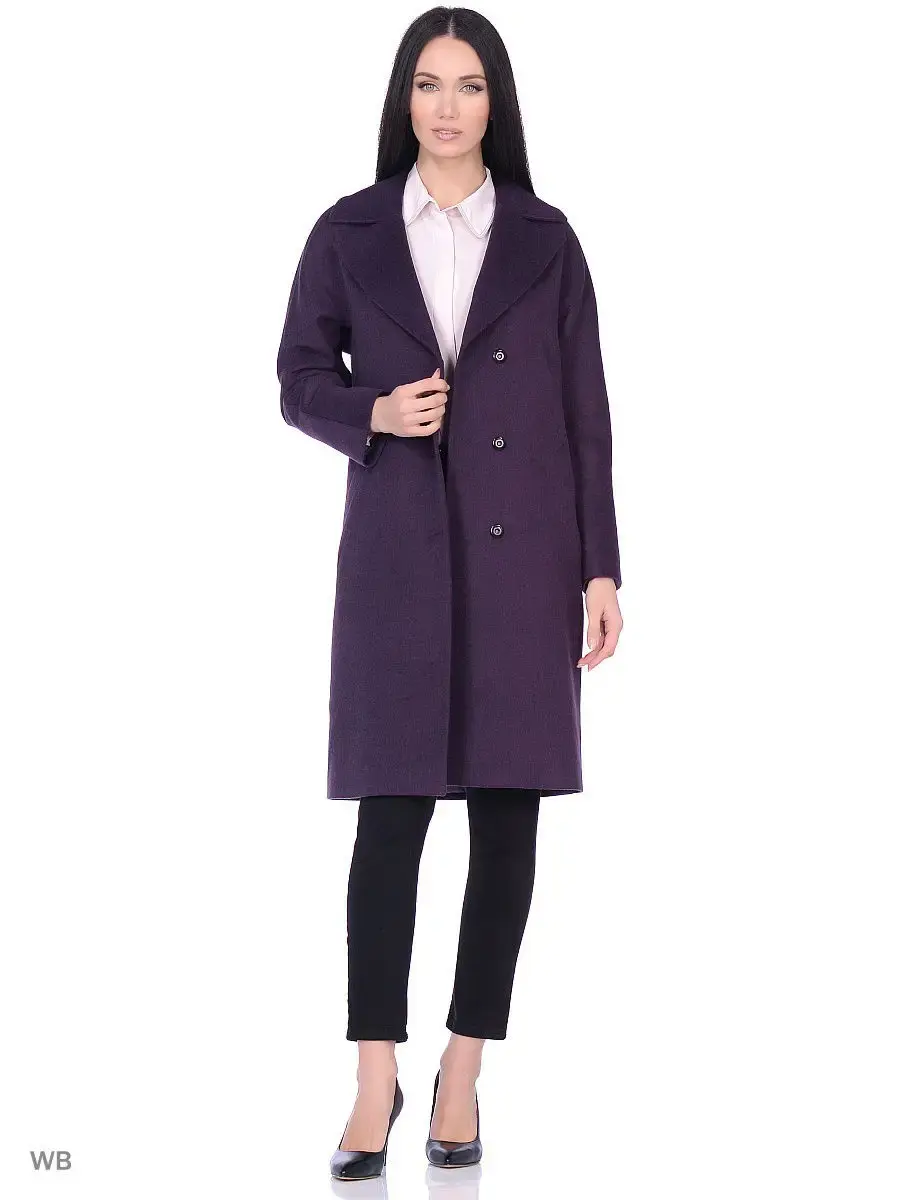 Однобортное пальто прямого силуэта длиной до колена из ворсовой меланжевой ткани. Цельнокроенный рукав длиной 7/8, широкий английский воротник, карманы листочки, застежка на скрытые кнопки.