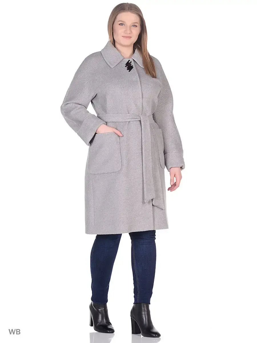Однобортное пальто прямого силуэта длиной до колена из текстурированной ткани в диагональную полоску. Цельнокроенный рукав с отворотом, отложной воротник, накладные карманы, застежка на скрытые кнопки, пояс из основной ткани. Декорировано брошью.