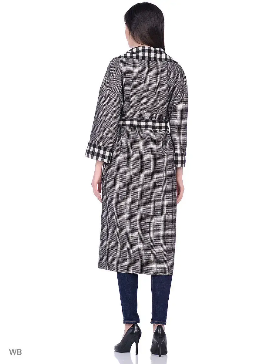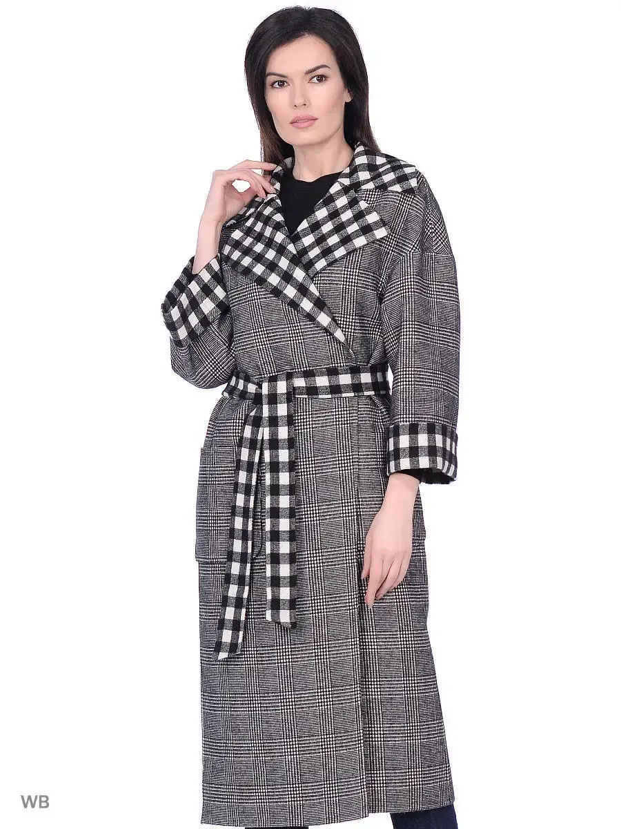 Пальто без подклада оверсайз длиной до середины икры из двусторонней шерстяной ткани. Втачной спущенный рукав с отворотом, английский воротник, накладные карманы, пояс из основной ткани.