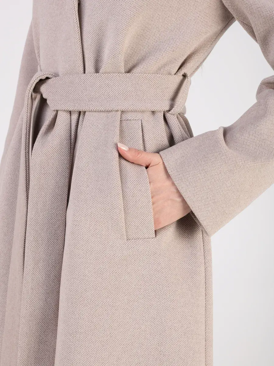 Оригинальный свободный - прямой фасон с английским воротником, втачной рукав и пояс позволяет подчеркнуть женственность фигуры. Такое пальто демисезонное женское идеально подойдёт как для делового гардероба, так и для прогулок по городу, а благодаря длине 130 см остается актуальным для любой погоды, включая дождливую осень.