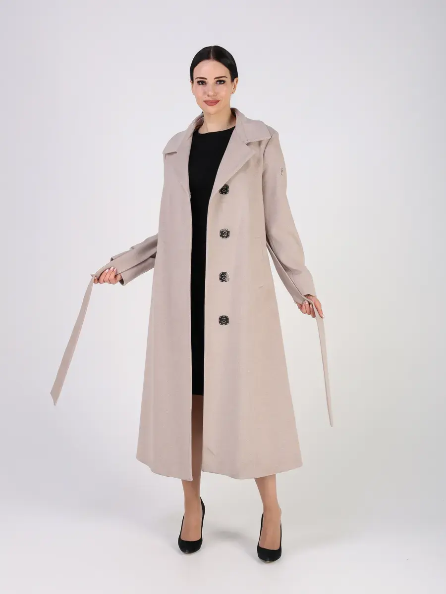 Пальто женское весна-осень длинное дополнено прорезными карманами и застегивается на кнопки. Благодаря дышащему материалу и ветрозащитным свойствам, вы будете чувствовать себя комфортно в любой ситуации, будь то прогулка или рабочий день в офисе.
