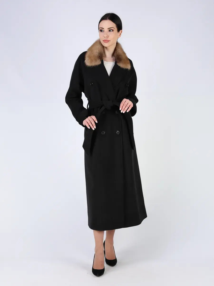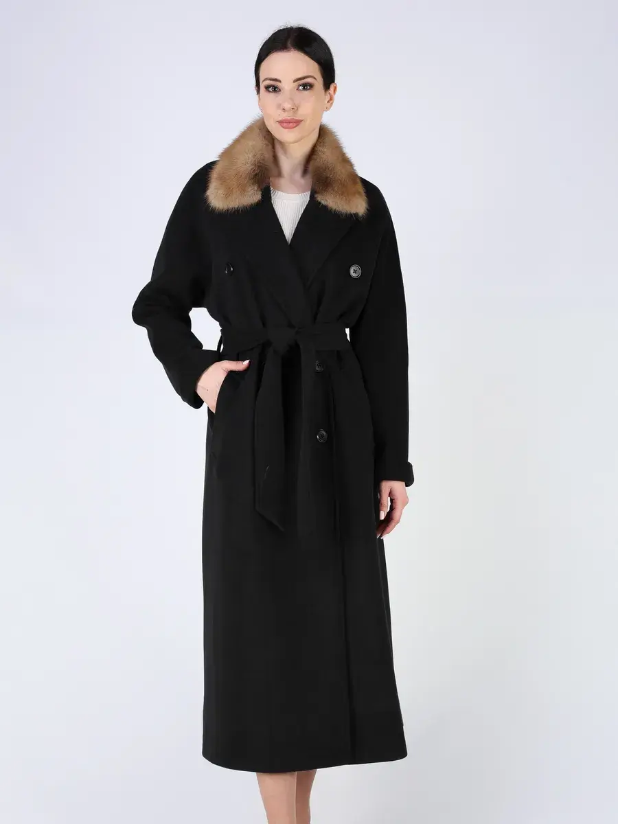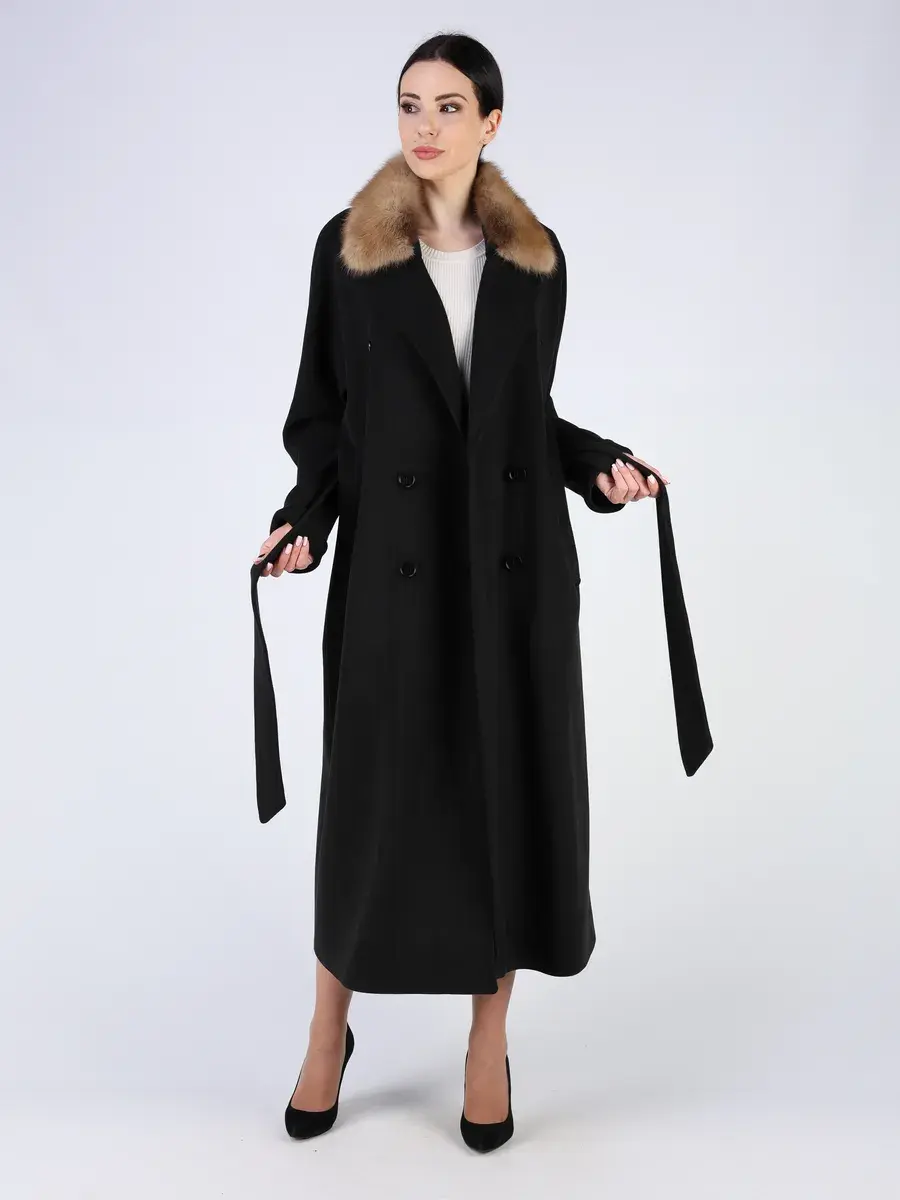 Оригинальный двубортный фасон с английским воротником, шлица, рукав - реглан и пояс позволяет подчеркнуть женственность фигуры, а съемный воротник из меха куницы и фактура добавляют акценты стиля, делают это пальто эксклюзивным элементом гардероба. Такое пальто демисезонное женское идеально подойдёт как для делового гардероба, так и для прогулок по городу, а благодаря длине 130 см остается актуальным для любой погоды, включая дождливую осень.