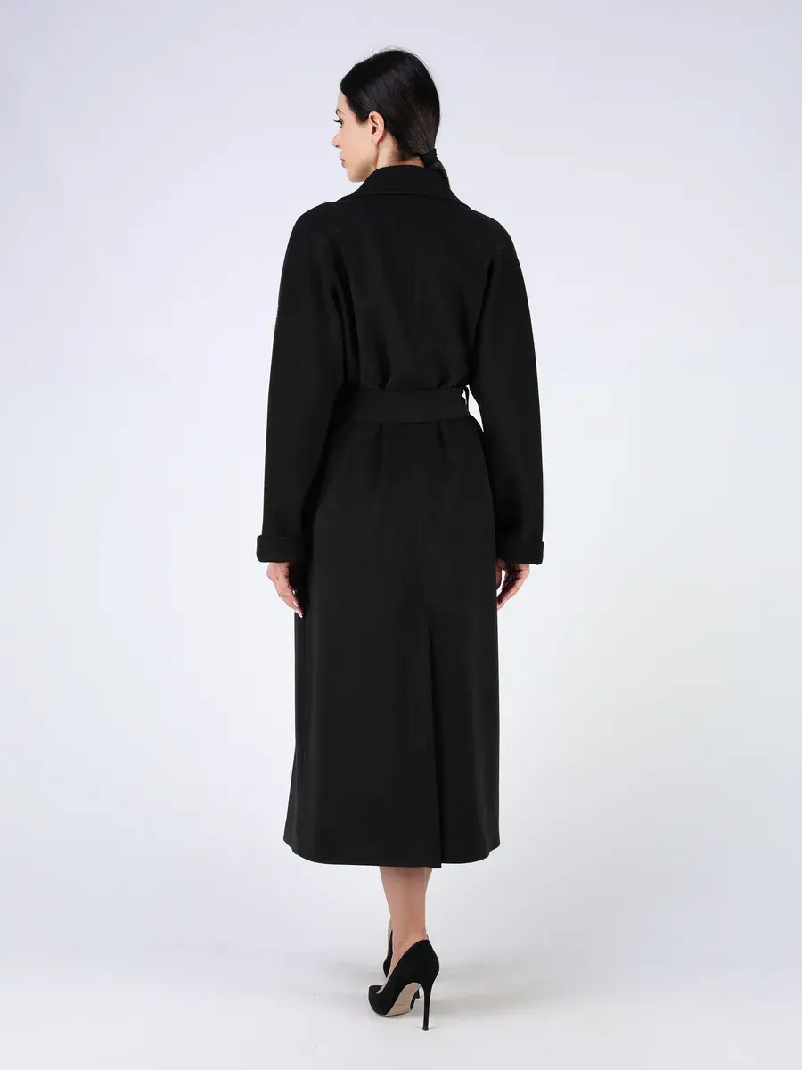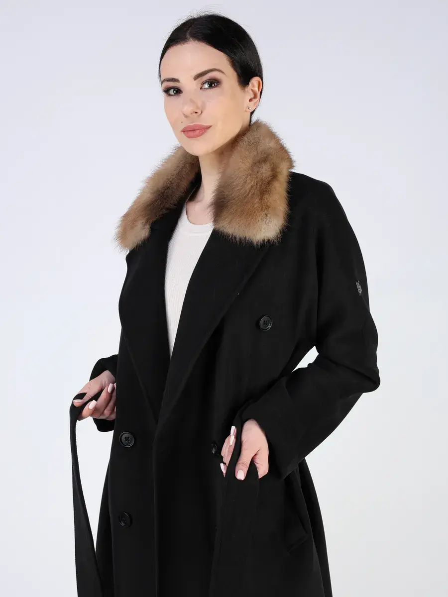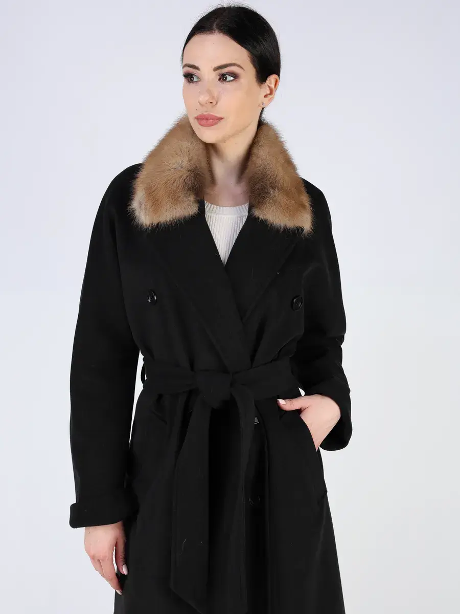 Оригинальный двубортный фасон с английским воротником, шлица, рукав - реглан и пояс позволяет подчеркнуть женственность фигуры, а съемный воротник из меха куницы и фактура добавляют акценты стиля, делают это пальто эксклюзивным элементом гардероба. Такое пальто демисезонное женское идеально подойдёт как для делового гардероба, так и для прогулок по городу, а благодаря длине 130 см остается актуальным для любой погоды, включая дождливую осень.