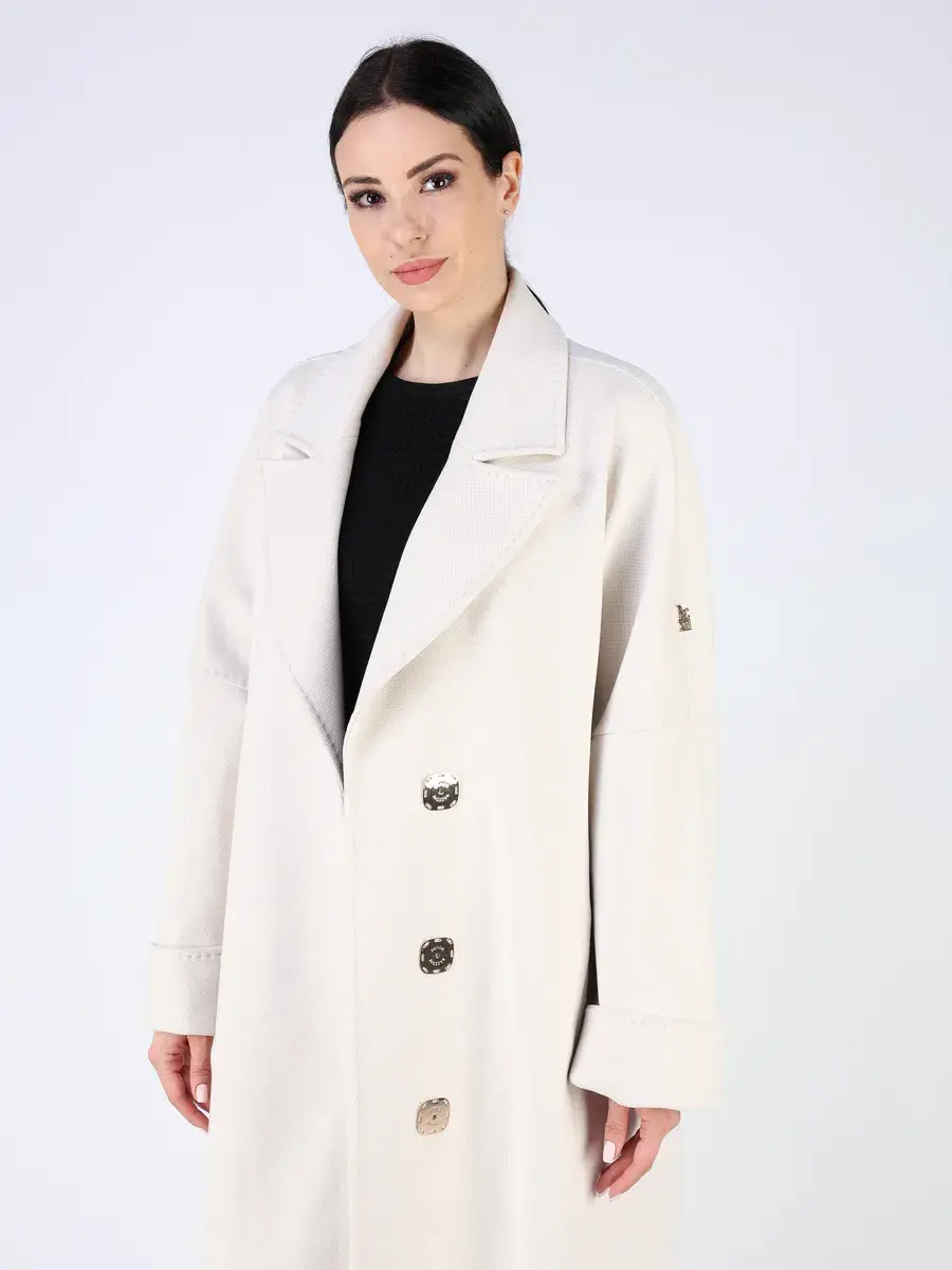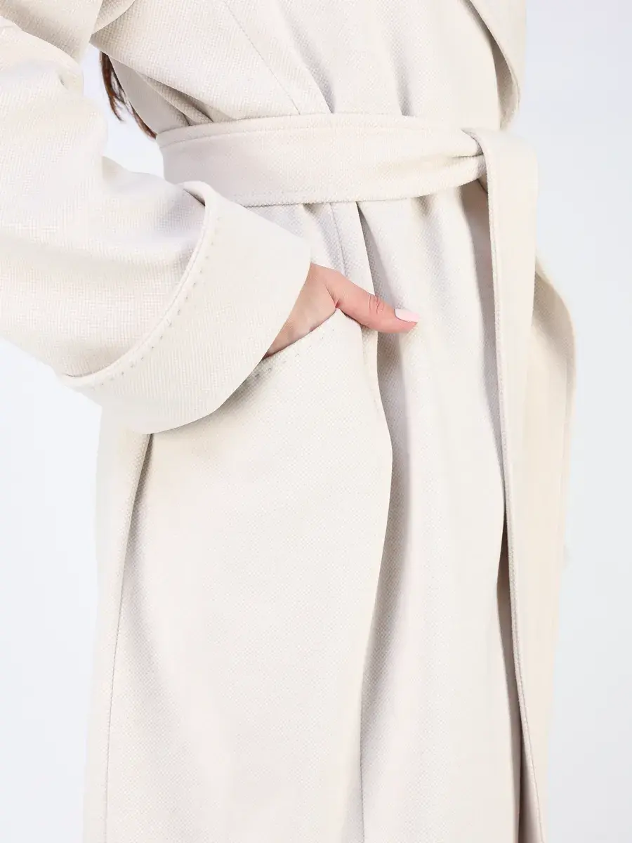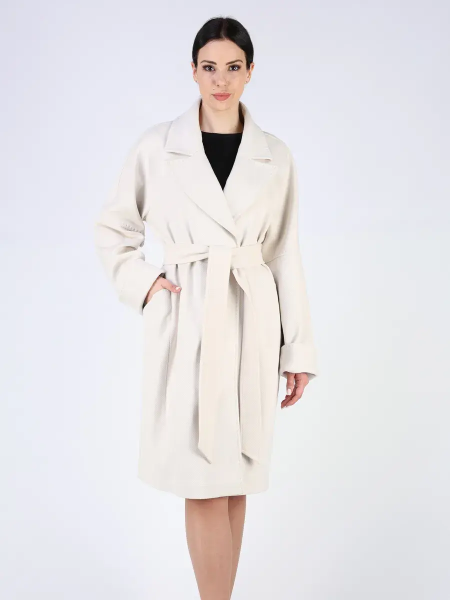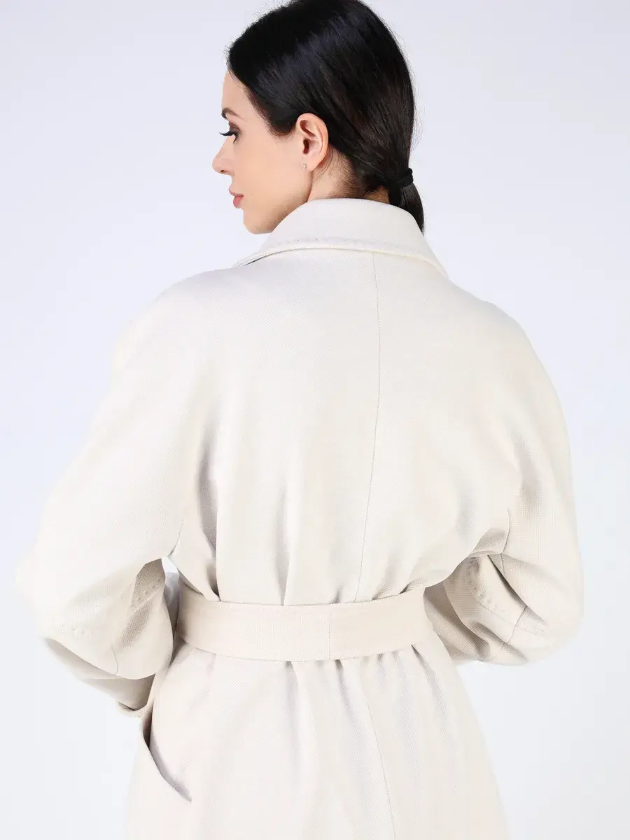 Оригинальный свободный - прямой фасон с английским воротником, рукав - реглан и пояс позволяет подчеркнуть женственность фигуры, а модные кнопки и фактура добавляют акценты стиля, делают это пальто эксклюзивным элементом гардероба. Такое пальто демисезонное женское идеально подойдёт как для делового гардероба, так и для прогулок по городу, а благодаря длине 105 см остается актуальным для любой погоды, включая дождливую осень.