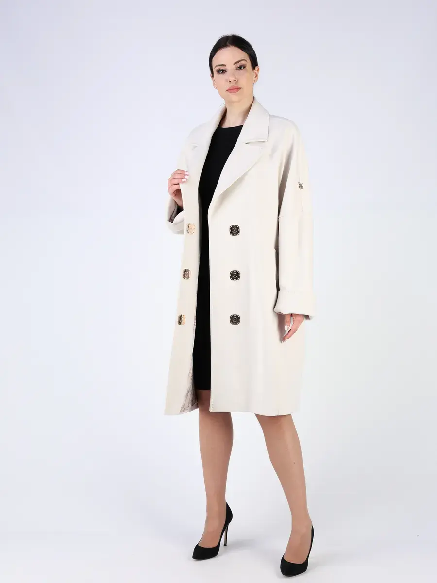 Пальто женское весна-осень длинное дополнено накладными карманами и застегивается на кнопки. Благодаря дышащему материалу и ветрозащитным свойствам, вы будете чувствовать себя комфортно в любой ситуации, будь то прогулка или рабочий день в офисе.