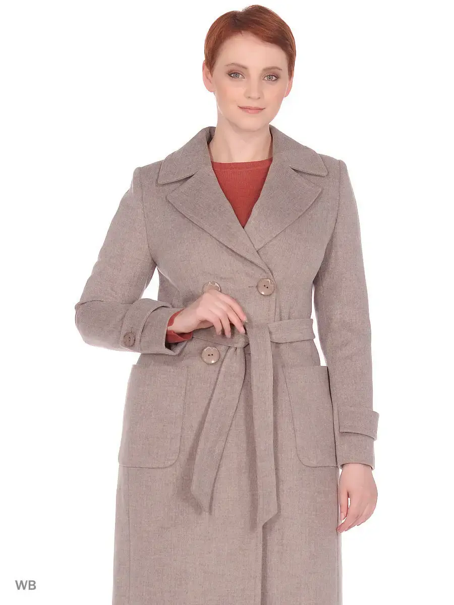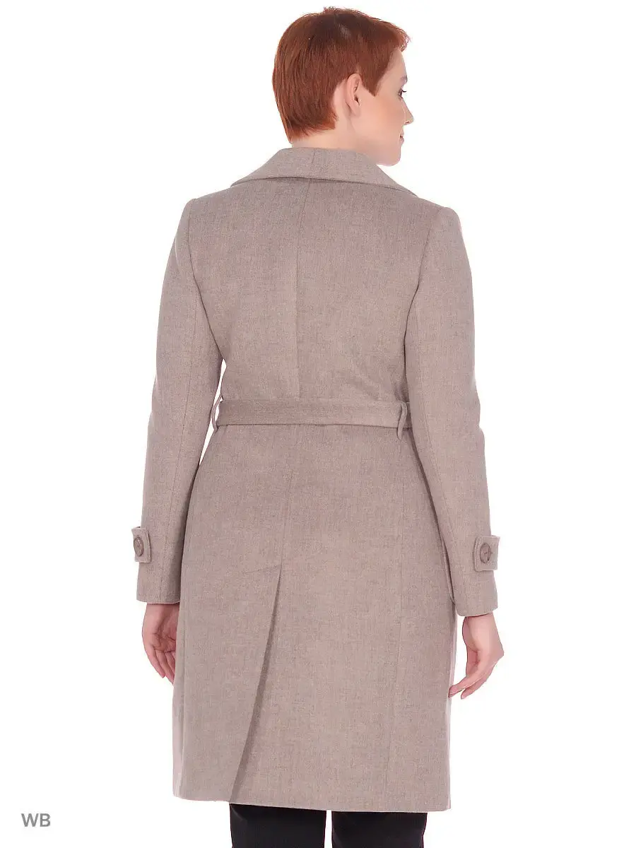 Двубортное классическое пальто длиной чуть выше колена из ворсовой меланжевой ткани. Втачной рукав с патами и пуговицей по низу, английский воротник, накладные карманы, застежка на крупные пуговицы, пояс из основной ткани, шлица в среднем шве спинки. Декорировано тамбурной строчкой.
