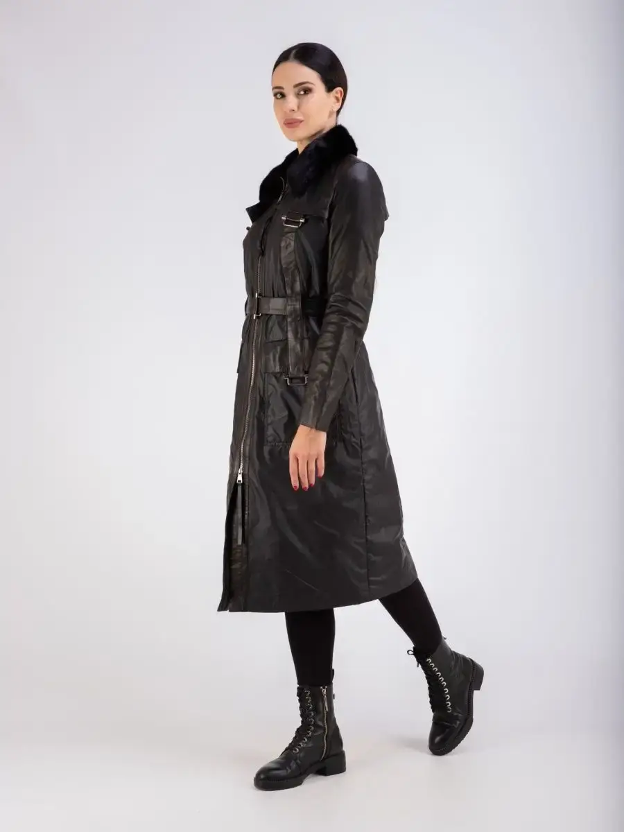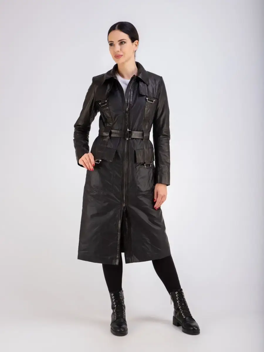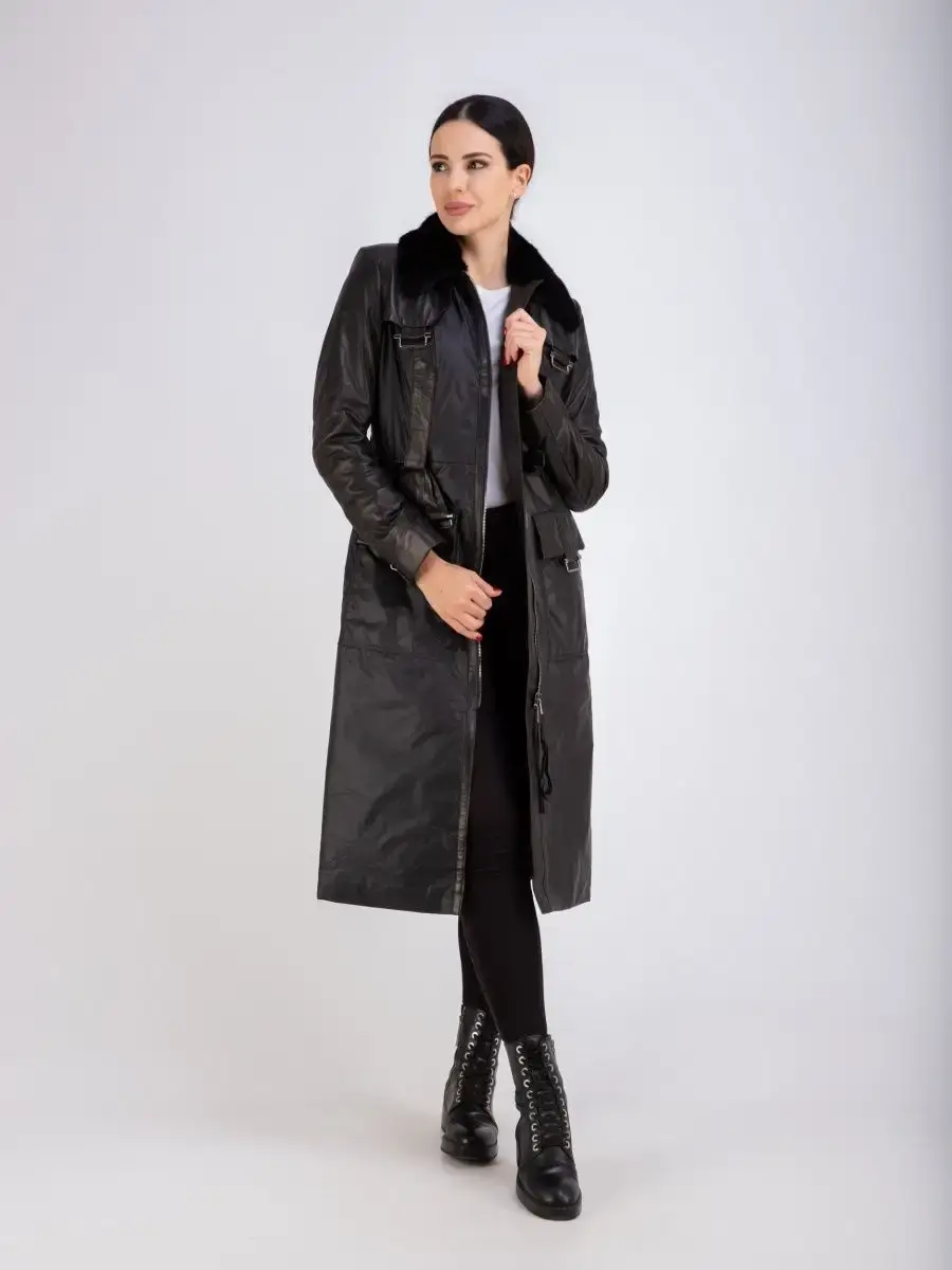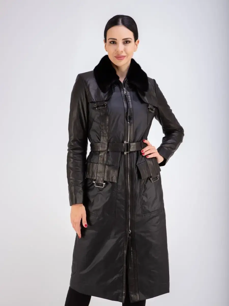 Элегантный силуэт, большие накладные карманы, классическая фурнитура с декоративными вставками из кожи, норковый съемный воротник - женский кожаный плащ длинный, кожаное пальто в таком исполнении эффектная и самодостаточная основа вашего образа. Он отлично смотрится как с любимыми джинсами, так и с легкими платьями. Плащ женский кожаный весенний осенний изделие универсальное, с его помощью можно создавать самые разные образы. Такая вещь подойдет для женщин любого возраста, и для повседневной носки в демисезон, и для созданий утонченного романтичного ансамбля, прекрасно впишется практически в любой стиль - повседневный, городской, офисный и вечерний.