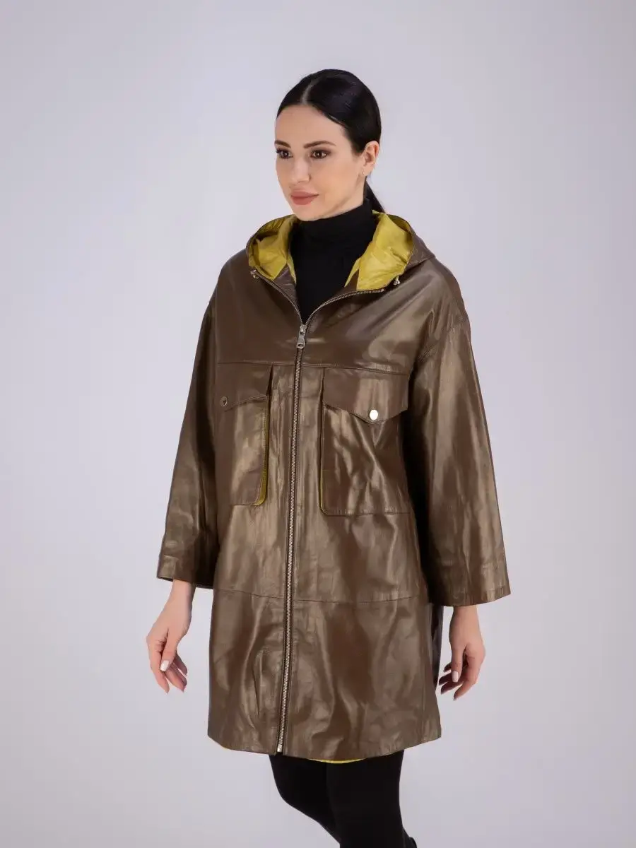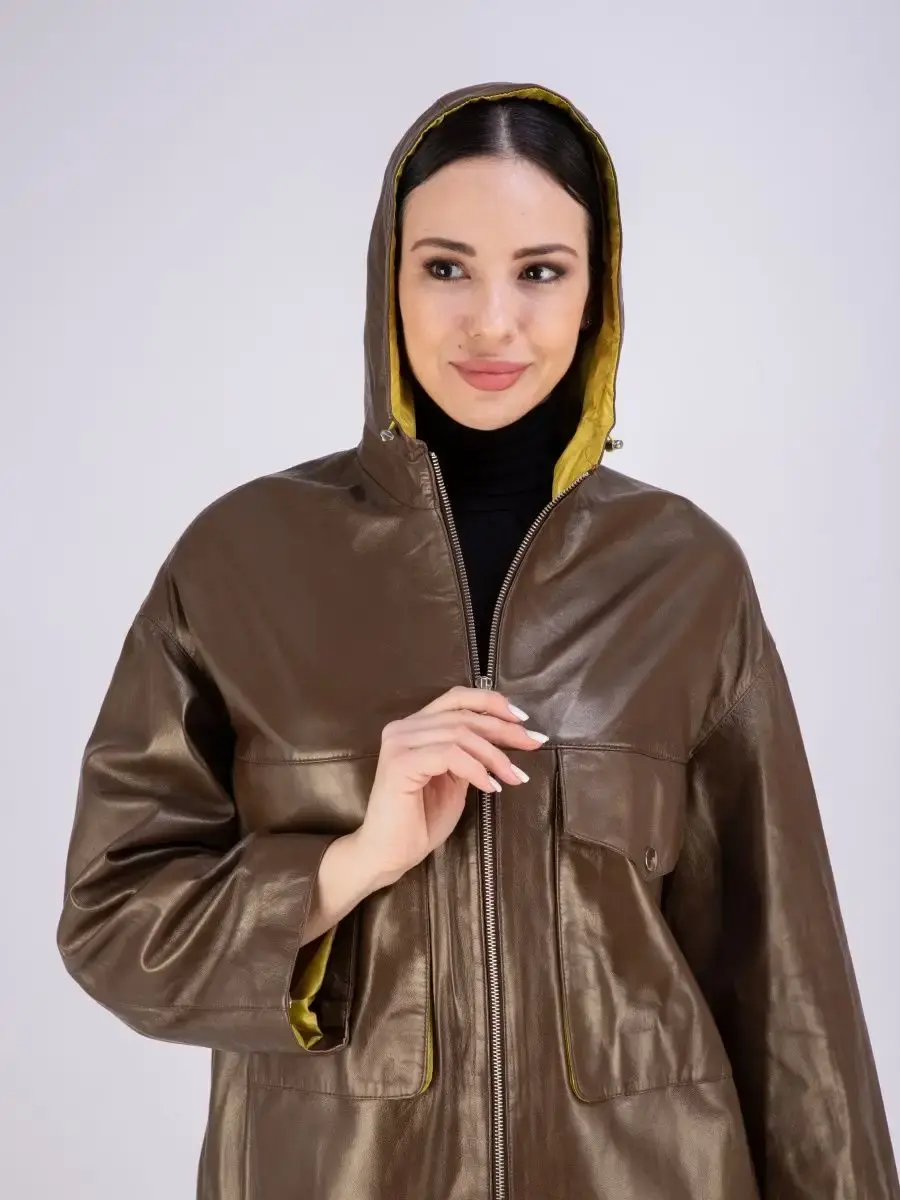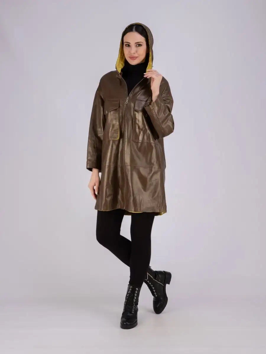 Женское пальто из натуральной кожи ягненка оверсайз, большие размеры. Удлиненная женская куртка - пальто женское кожаное из натуральной кожи ягненка с застежкой на молнии замечательный выбор, если вы намерены не только чувствовать себя комфортно, но и хотите выглядеть стильно и модно. Пальто свободного - прямого кроя, не сковывает движения. Пальто, плащ из натуральной кожи премиум качества со спущенной линией плеча, с накладными карманами на груди и с прорезными по бокам. Сочетание дизайна с долговечностью, драгоценностью и мягкостью натуральной кожи делает пальто женское, плащ женский, куртки кожаные идеальным предметом женской одежды. Пальто женское весна - осень больших размеров с кулисками прекрасно подходить для холодных дней весной, осенью и летом. Кожаное пальто, плащ кожаный женский прекрасно впишется практически в любой стиль - повседневный, городской, офисный и вечерний. Свободный крой пальто оверсайз, утягивающие кулиски на рукавах и на капюшоне, спущенная линия плеч и укороченный рукав позволяет носить девушкам и женщинам с любым типом фигуры.