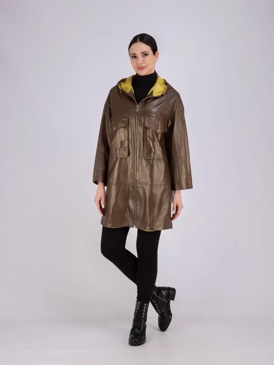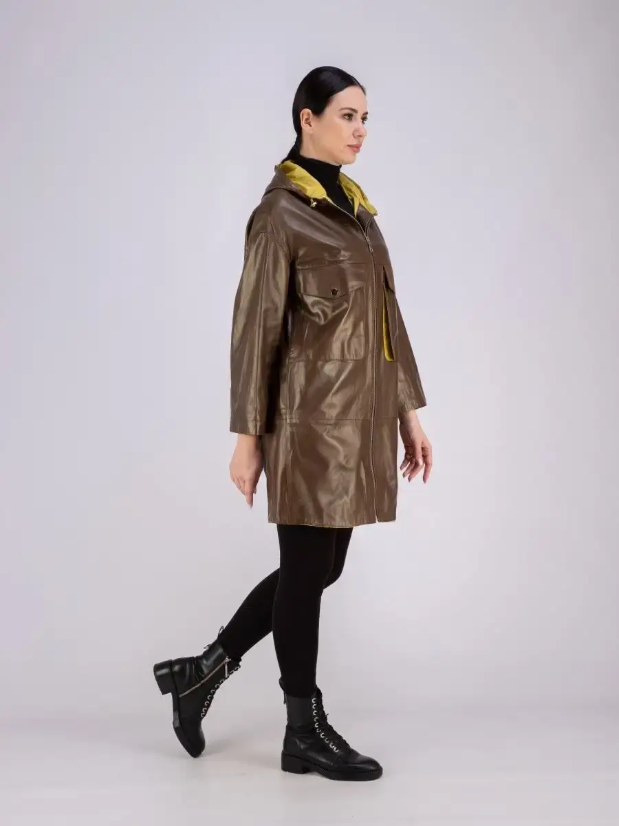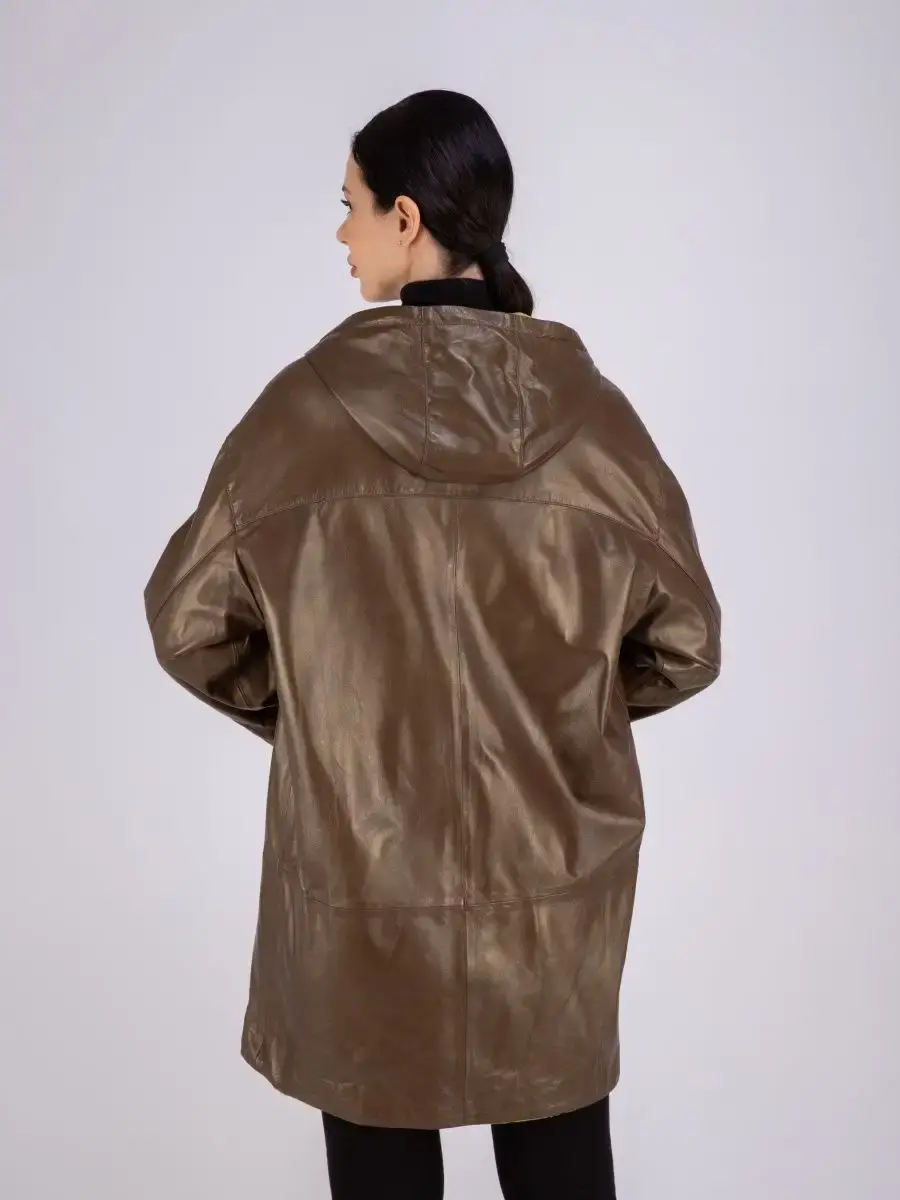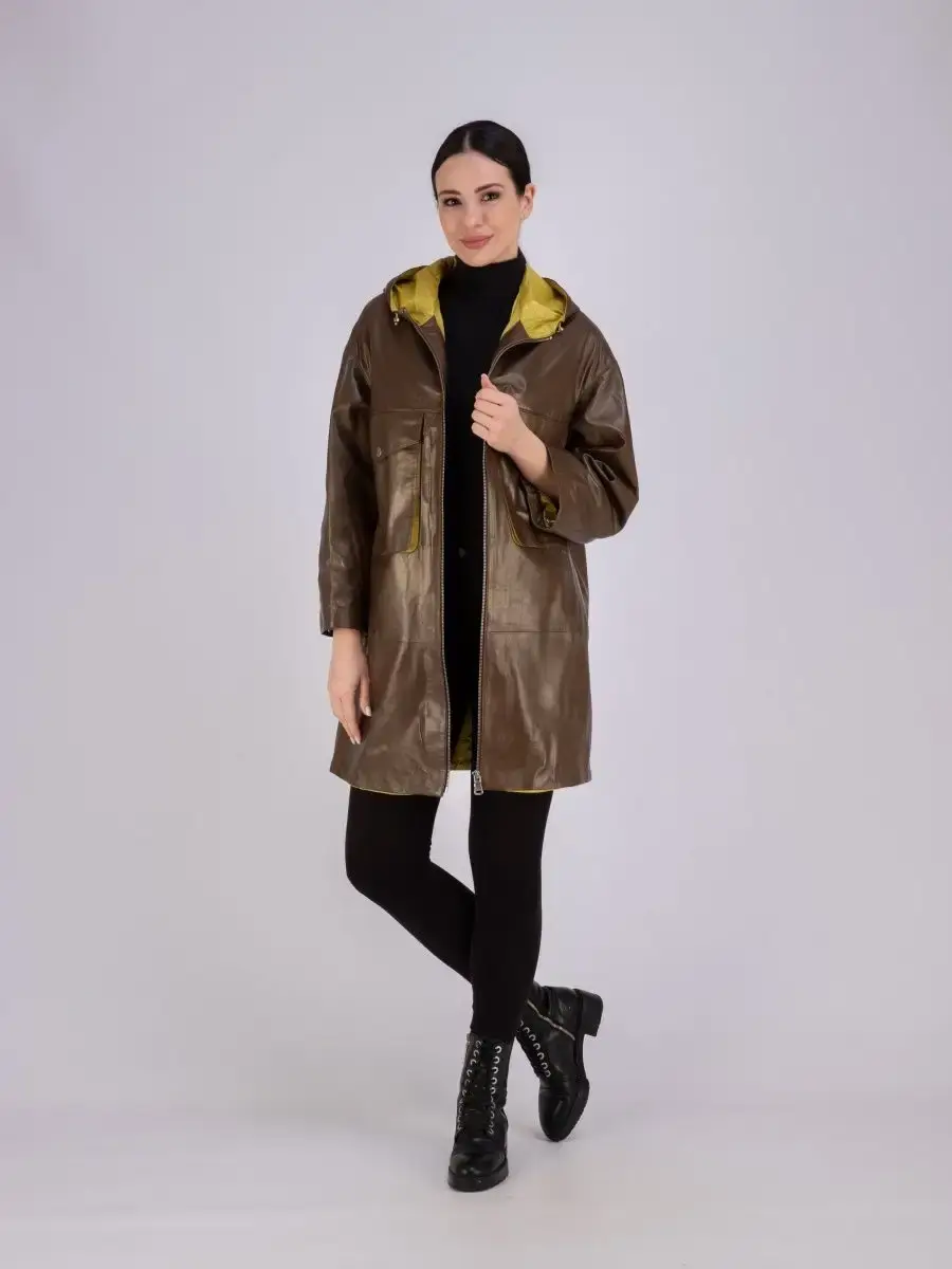 Женское пальто из натуральной кожи ягненка оверсайз, большие размеры. Удлиненная женская куртка - пальто женское кожаное из натуральной кожи ягненка с застежкой на молнии замечательный выбор, если вы намерены не только чувствовать себя комфортно, но и хотите выглядеть стильно и модно. Пальто свободного - прямого кроя, не сковывает движения. Пальто, плащ из натуральной кожи премиум качества со спущенной линией плеча, с накладными карманами на груди и с прорезными по бокам. Сочетание дизайна с долговечностью, драгоценностью и мягкостью натуральной кожи делает пальто женское, плащ женский, куртки кожаные идеальным предметом женской одежды. Пальто женское весна - осень больших размеров с кулисками прекрасно подходить для холодных дней весной, осенью и летом. Кожаное пальто, плащ кожаный женский прекрасно впишется практически в любой стиль - повседневный, городской, офисный и вечерний. Свободный крой пальто оверсайз, утягивающие кулиски на рукавах и на капюшоне, спущенная линия плеч и укороченный рукав позволяет носить девушкам и женщинам с любым типом фигуры.