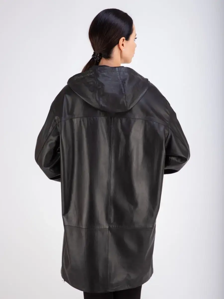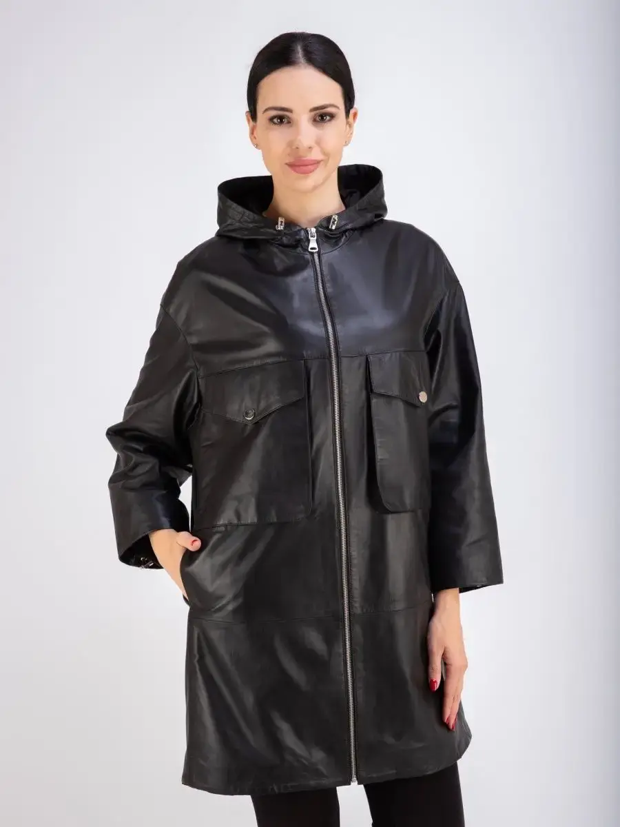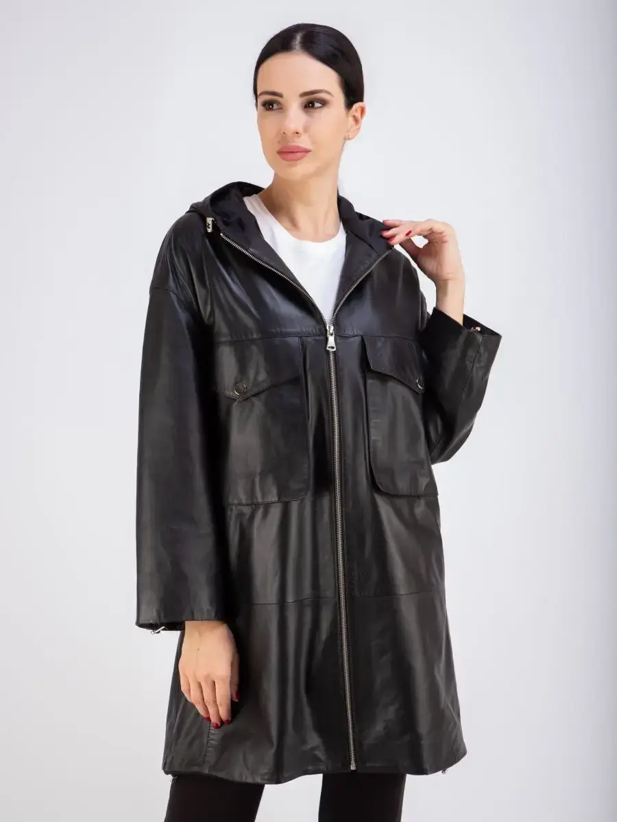 Женское пальто из натуральной кожи ягненка оверсайз, большие размеры. Удлиненная женская куртка - пальто женское кожаное из натуральной кожи ягненка с застежкой на молнии замечательный выбор, если вы намерены не только чувствовать себя комфортно, но и хотите выглядеть стильно и модно. Пальто свободного - прямого кроя, не сковывает движения. Пальто, плащ из натуральной кожи премиум качества со спущенной линией плеча, с накладными карманами на груди и с прорезными по бокам. Сочетание дизайна с долговечностью, драгоценностью и мягкостью натуральной кожи делает пальто женское, плащ женский, куртки кожаные идеальным предметом женской одежды. Пальто женское весна - осень больших размеров с кулисками прекрасно подходить для холодных дней весной, осенью и летом. Кожаное пальто, плащ кожаный женский прекрасно впишется практически в любой стиль - повседневный, городской, офисный и вечерний. Свободный крой пальто оверсайз, утягивающие кулиски на рукавах и на капюшоне, спущенная линия плеч и укороченный рукав позволяет носить девушкам и женщинам с любым типом фигуры.