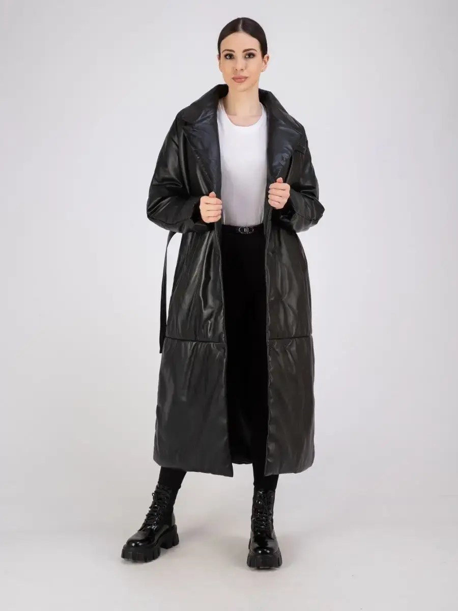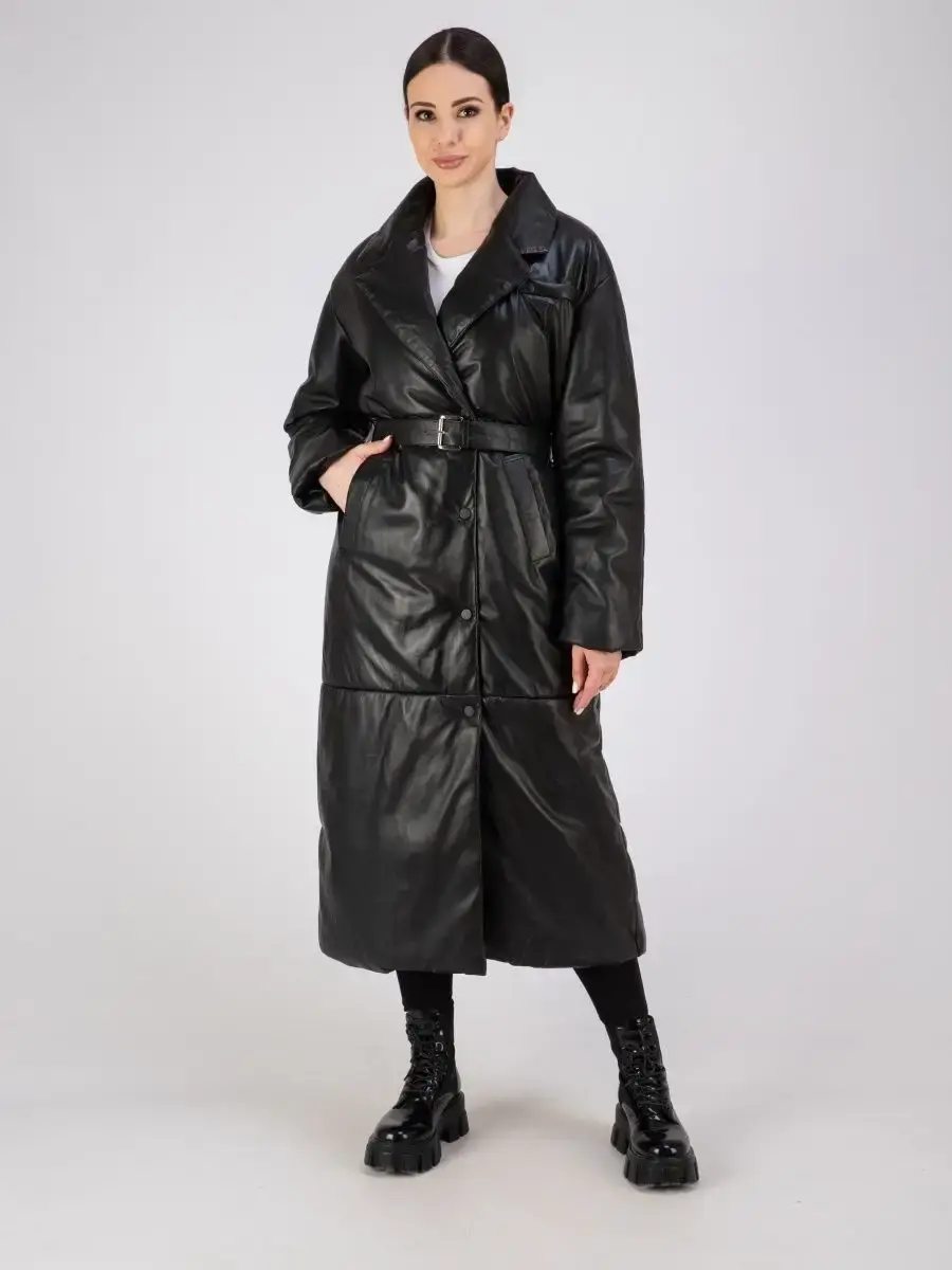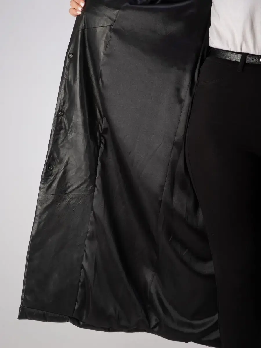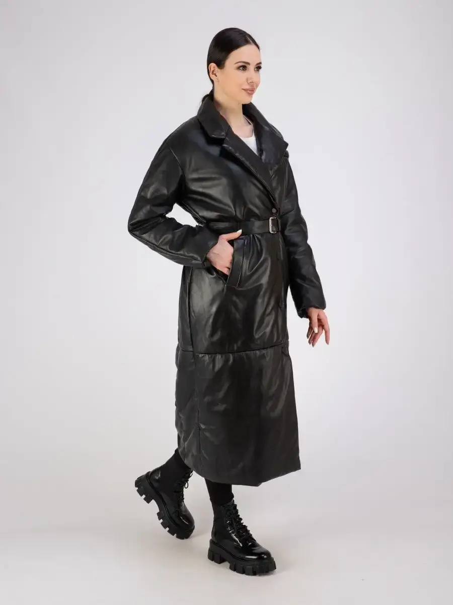 Пальто женское из натуральной кожи утепленная синтепоном, длинная. Пальто женское весна - осень, стильное пальто женское длинное для теплой зимы и холодной весны, осени и лета, демисезонное с двубортной застежкой на кнопках. Гладкая кожа, прямой крой, прорезные карманы, английский воротник, комфортная длина ниже колен - прекрасный выбор для современной модницы любого возраста. Кожаное пальто вещь незаменимая и никогда не выходящая из моды. Пальто весеннее женское практична, идеально подходит для повседневной носки или на выход. Пальто женское демисезонное шикарно смотрится и с повседневными нарядами, и с вечерними платьями. Сочетание дизайна с долговечностью, драгоценностью и мягкостью натуральной кожи делает женское кожаное пальто, пальто кожаное идеальным предметом женской одежды и долгосрочная инвестиция в женский демисезонный гардероб. Пальто демисезонное женское, пальто женское зимнее замечательный выбор, если вы намерены не только чувствовать себя комфортно, но и хотите выглядеть стильно и модно.