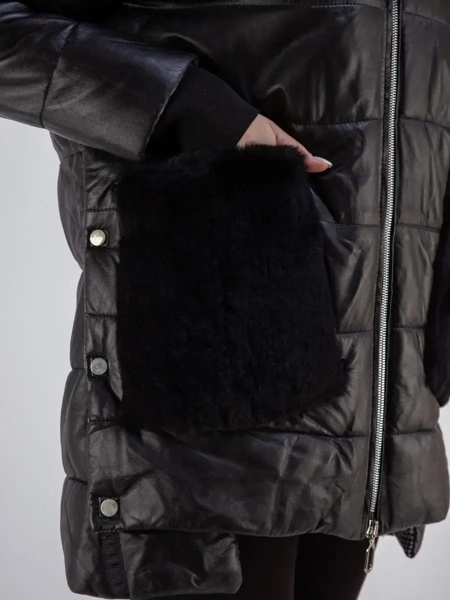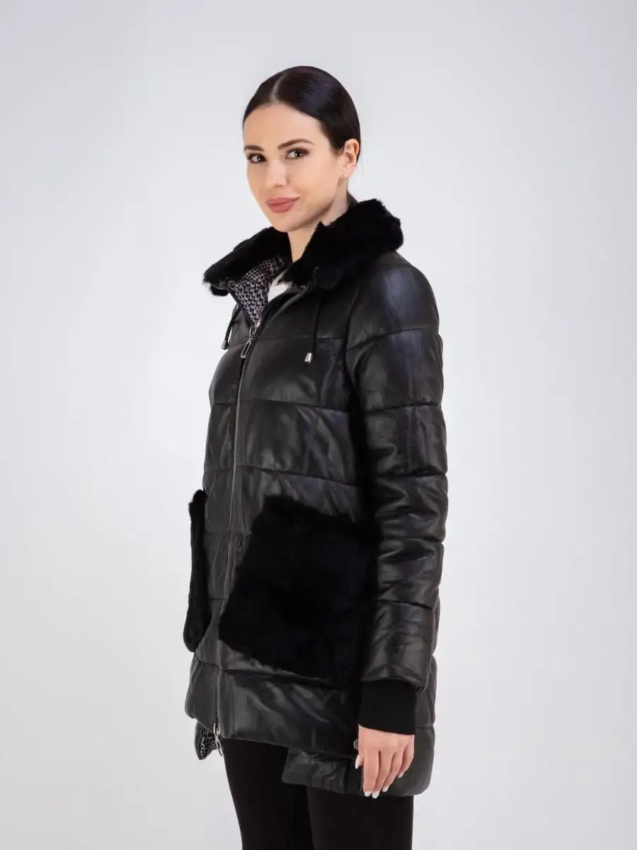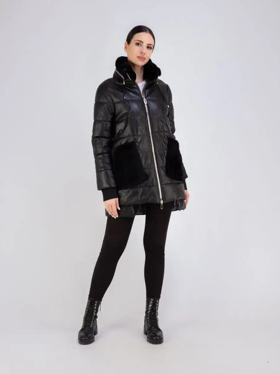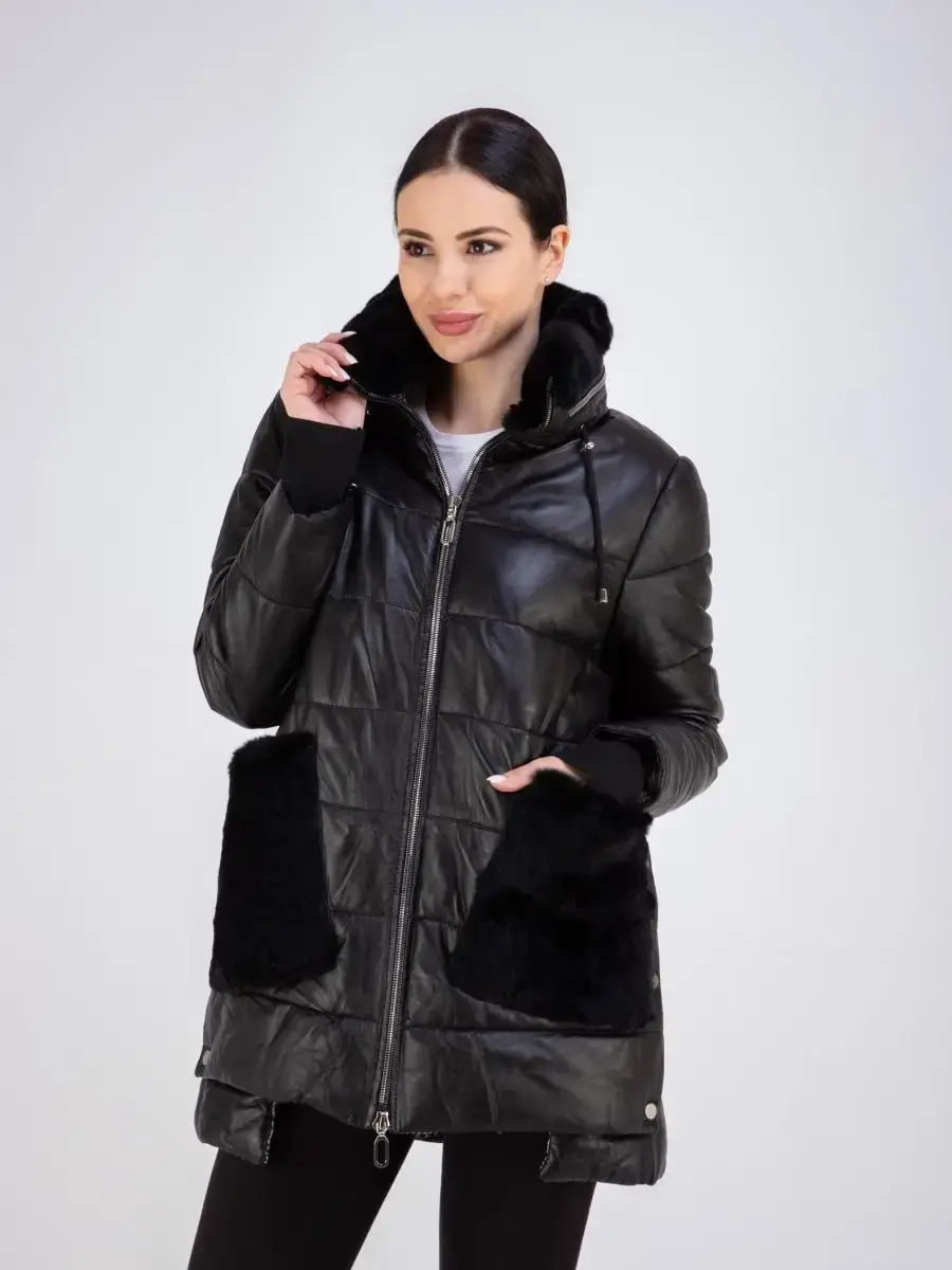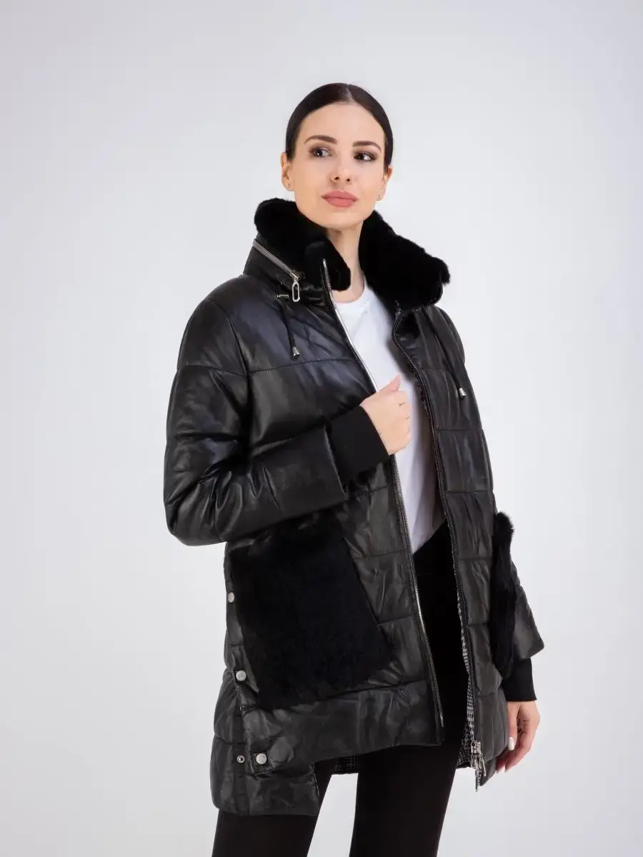 Женское пальто из гладкой натуральной кожи, куртка женская стеганая удлиненная. Кожаная куртка длинная с застежкой на молнии, с накладными карманами и с разрезом по бокам на кнопках. Пальто утепленное на синтепоне. Утепленная куртка женская, пальто стеганое отлично защитит от ветра и дождя, хороший вариант на каждый день и сезон, сочетается с различными вещами, прекрасно впишется практически в любой стиль - повседневный, городской, офисный и вечерний. Мех кролика на воротнике и на карманах, меховой воротник съемный, капюшон скрытый. Длина по спинке 80 см. Производства Турция.